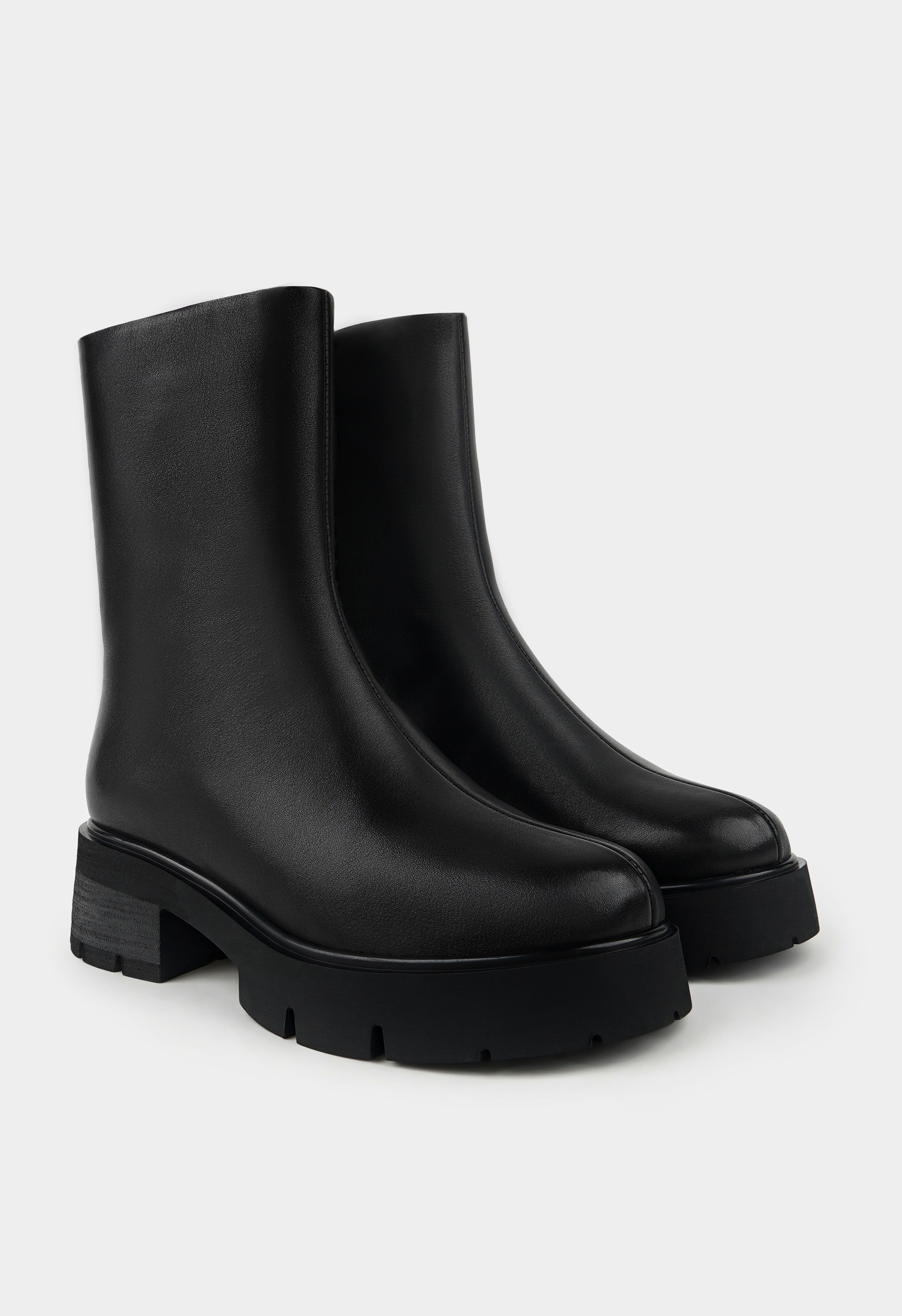 Зимние полусапоги из черной натуральной кожи с теплой подкладкой из натурального меха станут надежным и стильным выбором для холодного сезона. Округлый мысок и широкий каблук обеспечивают комфорт и стабильность при каждом шаге, а гибкая подошва делает прогулки по городу и поездки максимально удобными. Молния и аккуратная металлическая фурнитура придают модели современный, лаконичный акцент, гармонично сочетаясь с элегантным дизайном. Эти полусапоги легко впишутся в любой образ, подчеркивая вашу уверенность и вкус, и станут идеальным союзником в повседневной жизни.