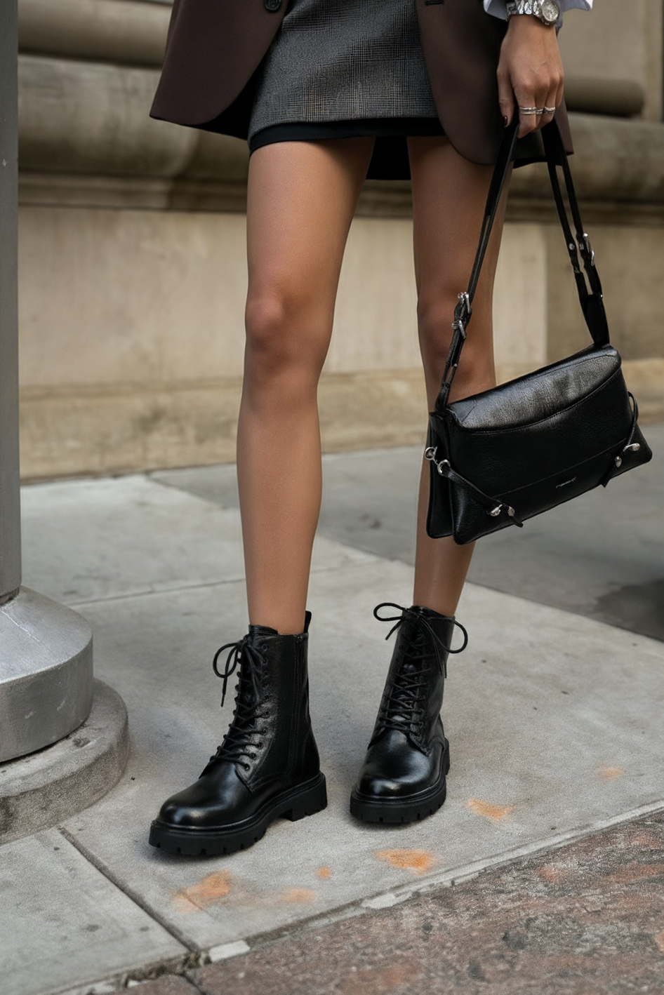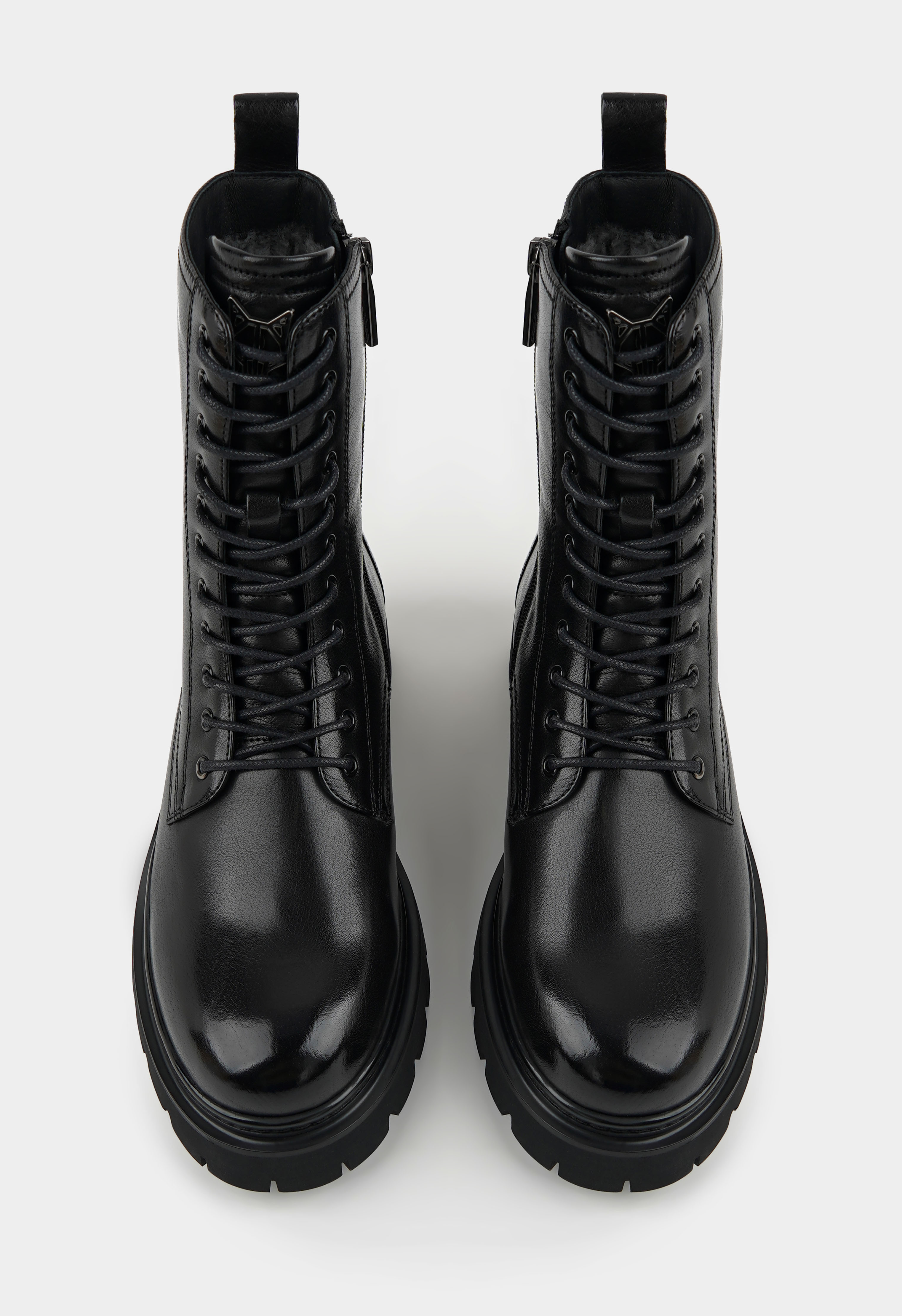 Ботинки в черном цвете – практичное и стильное решение для повседневных образов в холодный сезон. Выполненные из натуральной кожи, они сочетают прочность и элегантность, в то время как внутренняя отделка из натурального меха дарит мягкость и тепло. Гибкая подошва обеспечивает комфорт при ходьбе, округлый мысок делает посадку удобной, а комбинация серебряной и металлической фурнитуры придает модели современный, выразительный вид. Удобная застежка на молнии в сочетании со шнуровкой позволяет легко надевать ботинки и регулировать посадку, широкий каблук добавляет устойчивости и уверенности в каждом шаге.