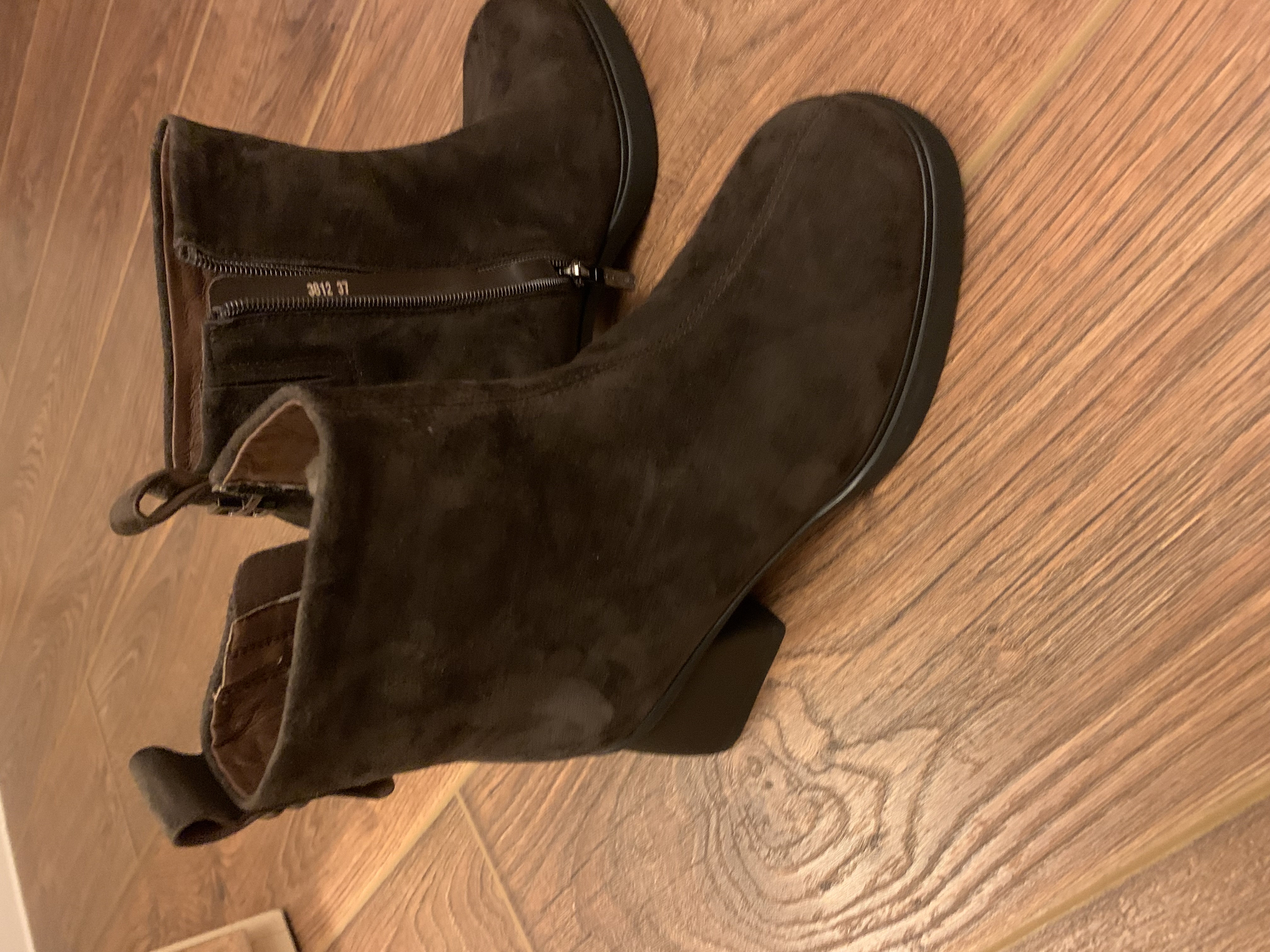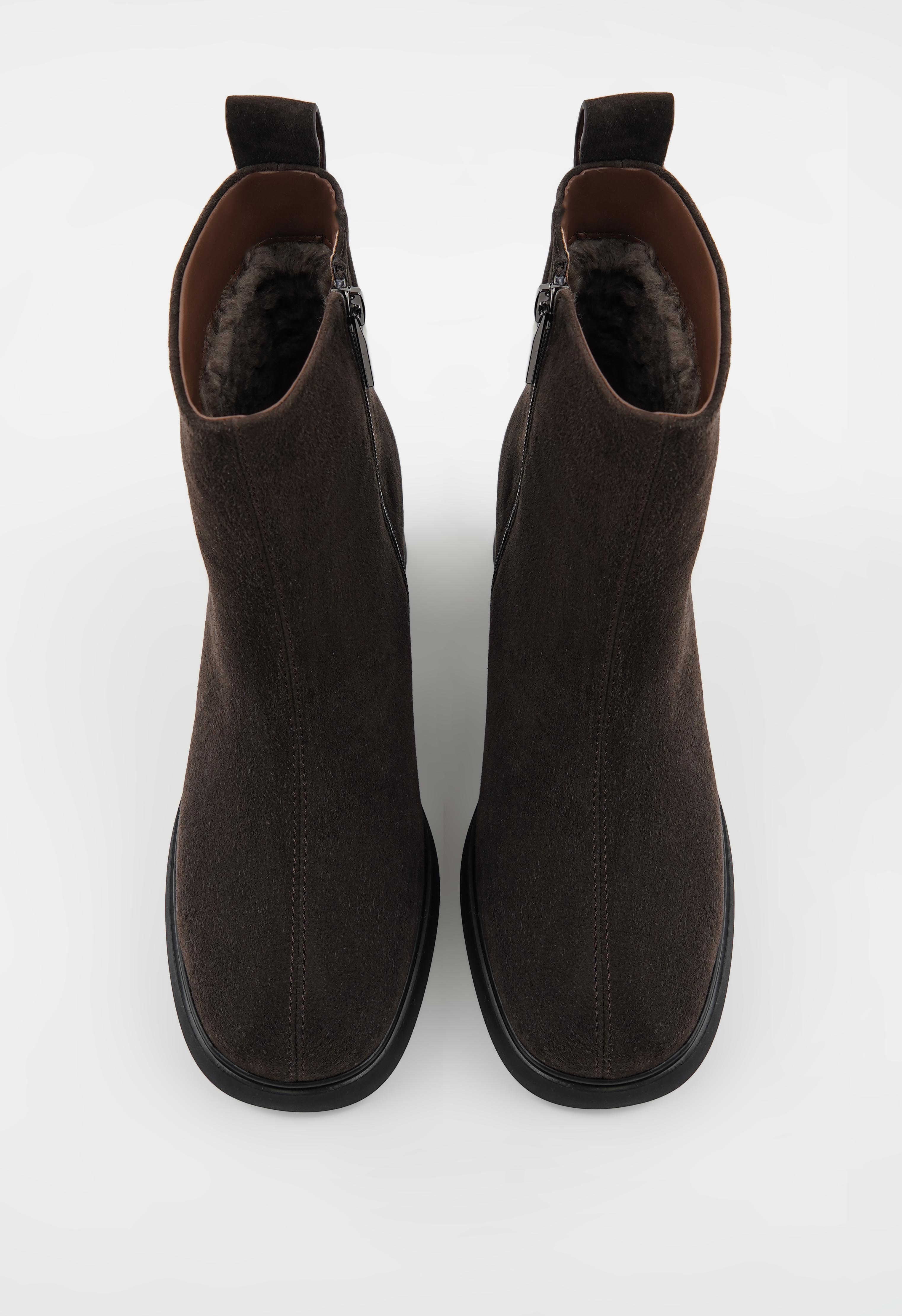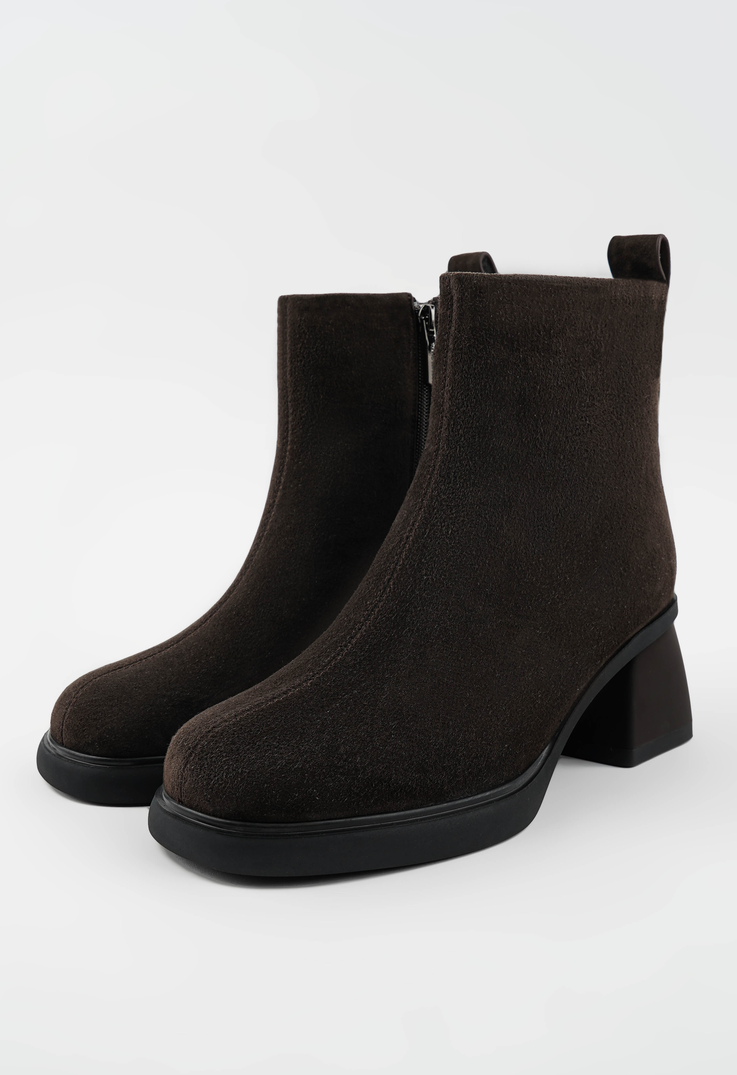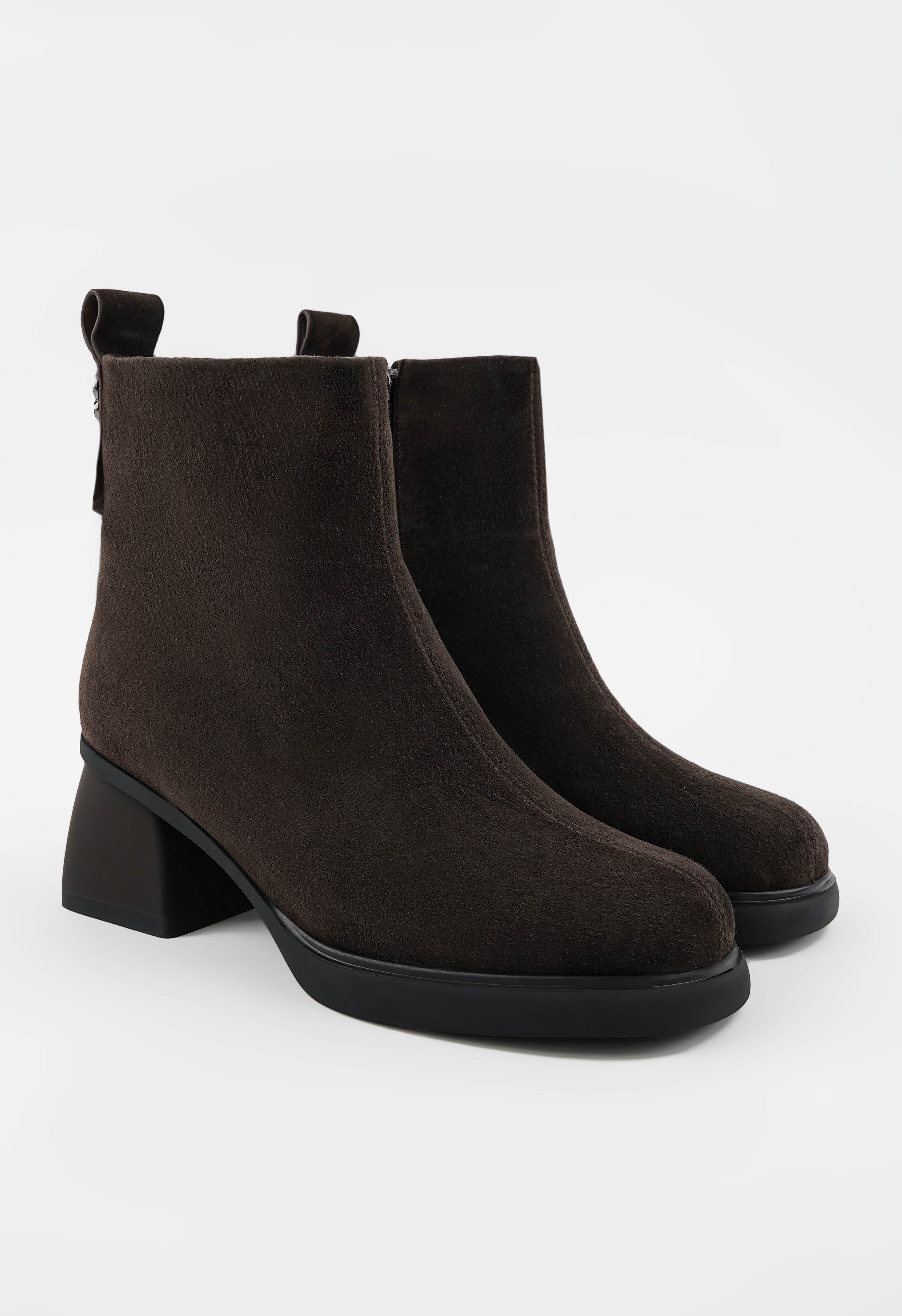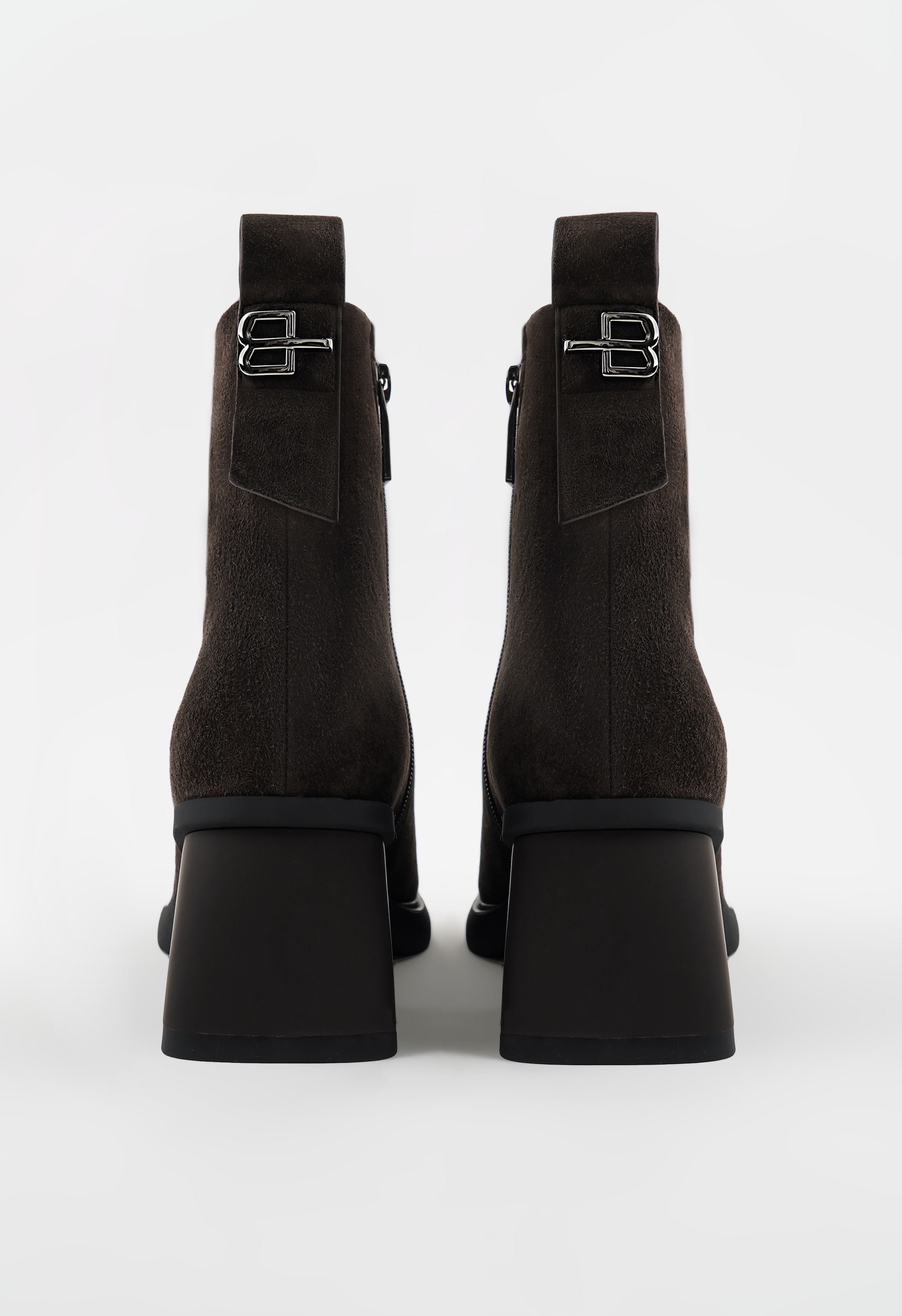 Коричневые ботильоны из натуральной замши с мягким натуральным мехом внутри – это идеальное сочетание уюта и изысканного стиля. Гибкая подошва и округлый мысок дарят комфорт при каждом шаге, а скошенный каблук добавляет современного акцента и делает силуэт более изящным. Металлическая фурнитура и удобная молния подчеркивают продуманный дизайн и практичность. Эти ботильоны станут универсальным решением для повседневных образов и особых случаев, даря вам тепло, уверенность и элегантность в любое время дня.