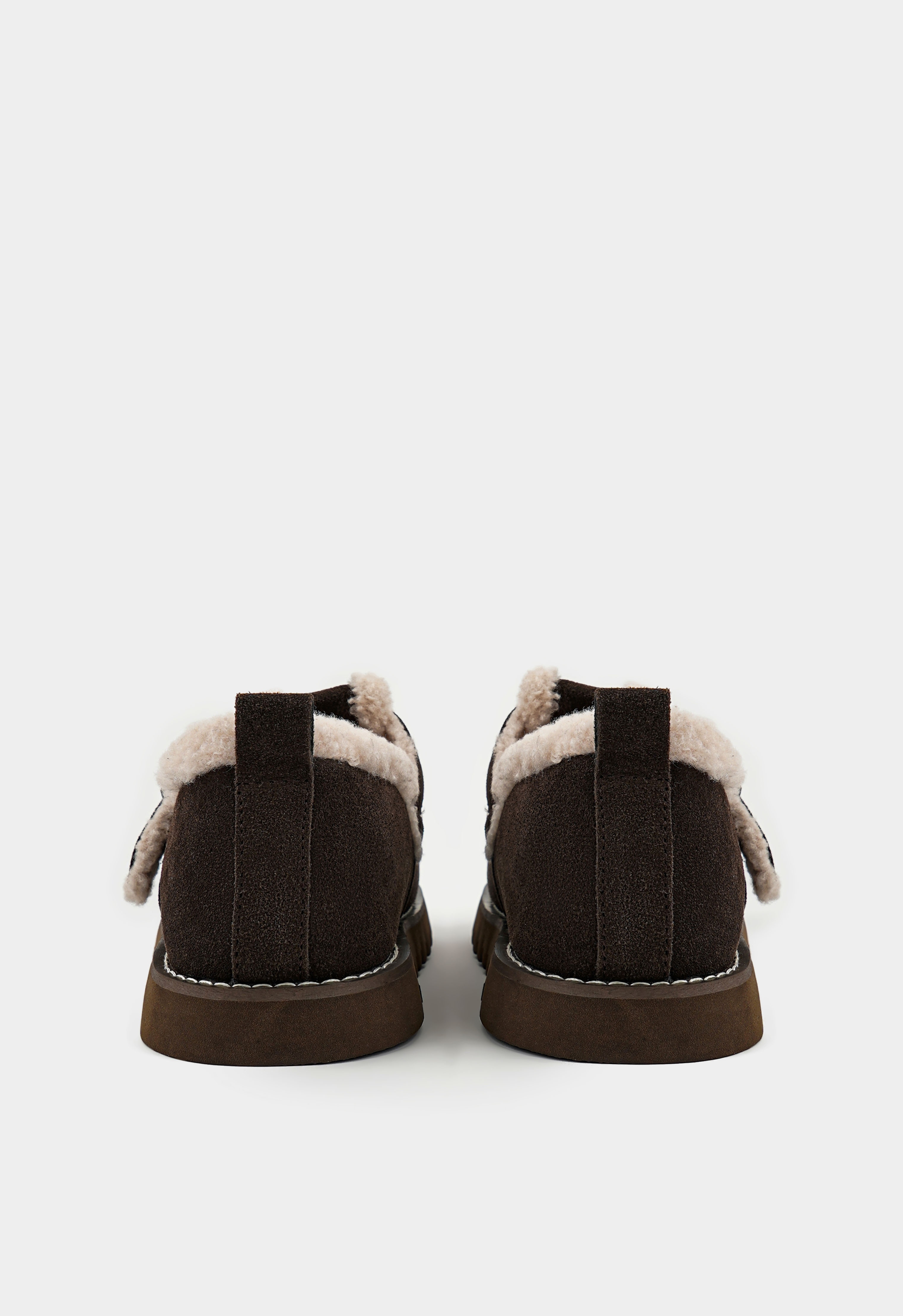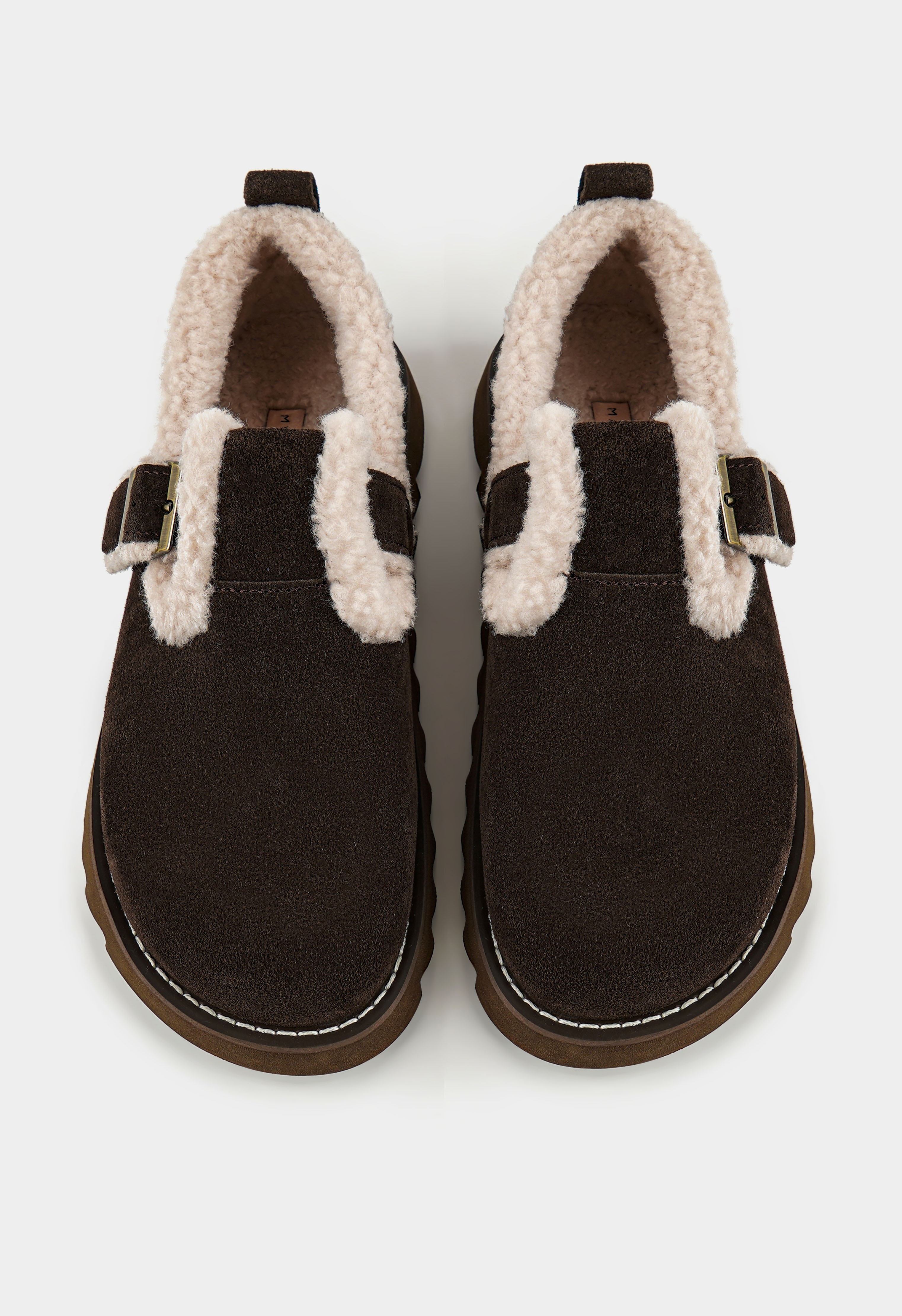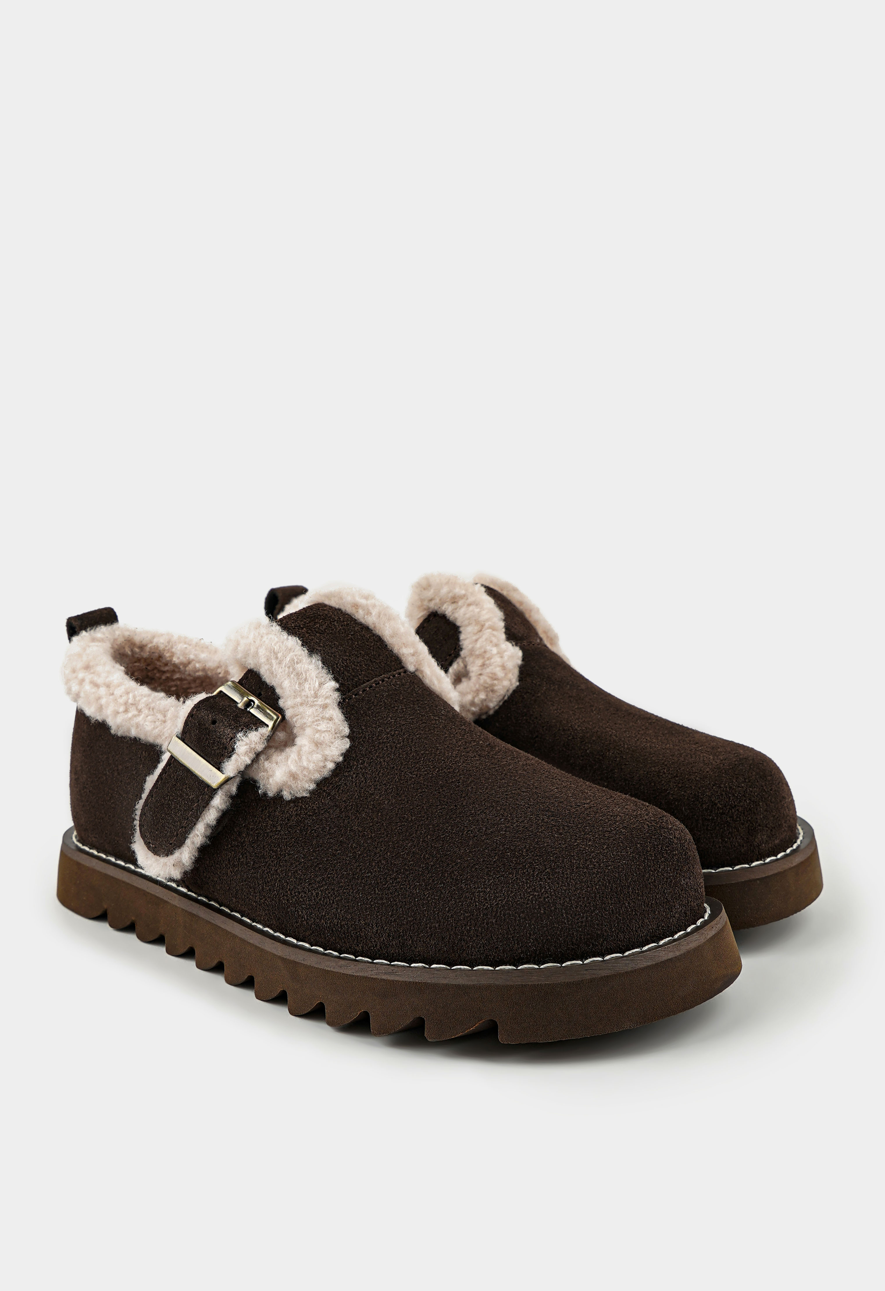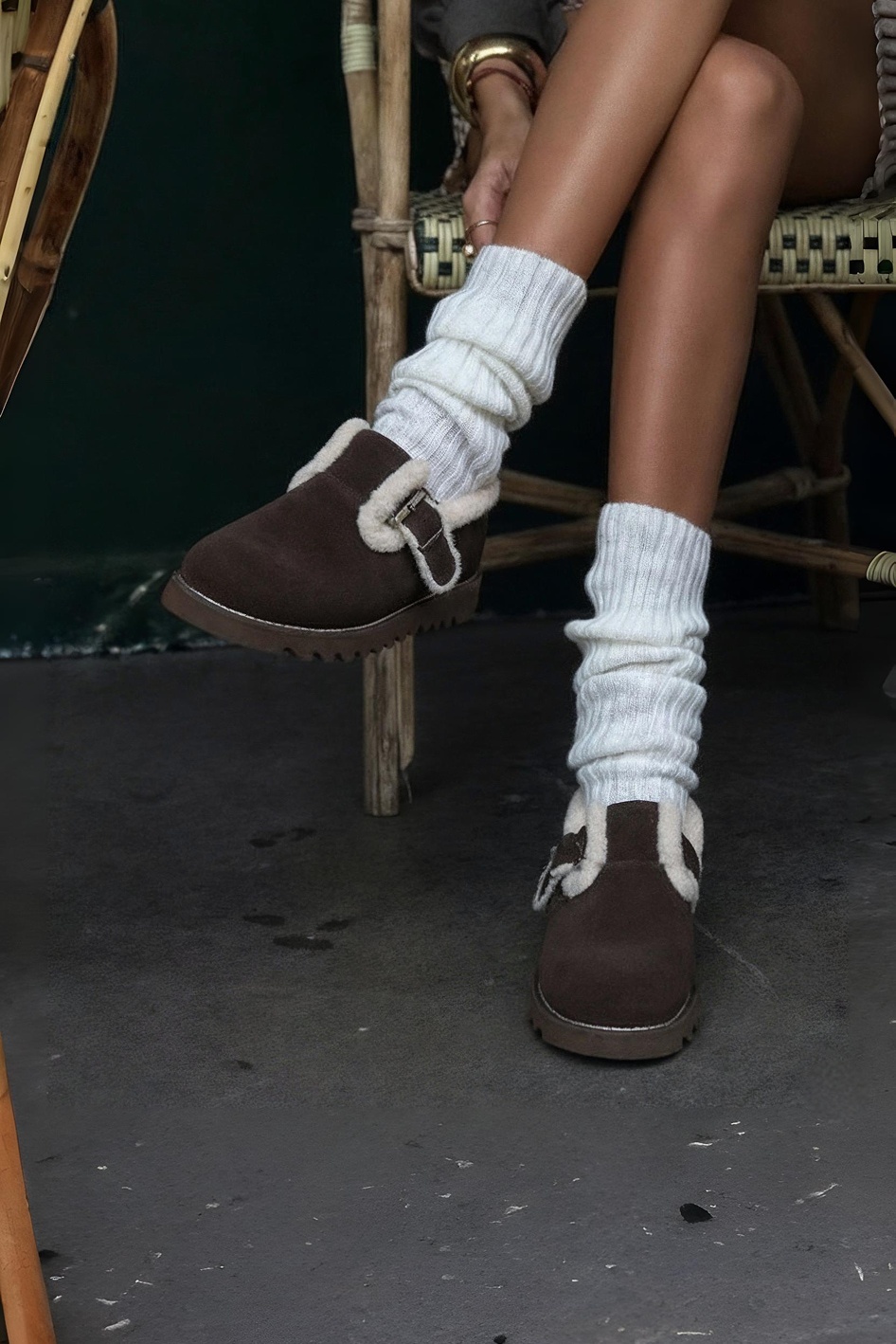 Женские угги коричневого цвета – стильное сочетание элегантности и комфорта, созданное для тех, кто ценит качество в каждой детали. Верх выполнен из мягкой натуральной замши, которая придает обуви благородный вид и приятную фактуру, а внутренняя отделка из натуральной шерсти дарит уют и тепло в прохладные дни. Гибкая подошва обеспечивает легкость шага, округлый мысок делает посадку максимально комфортной, в то время как изящная пряжка в цвете металлик добавляет утонченный блеск. Устойчивая платформа визуально удлиняет силуэт и делает модель идеальной для активного ритма жизни.
