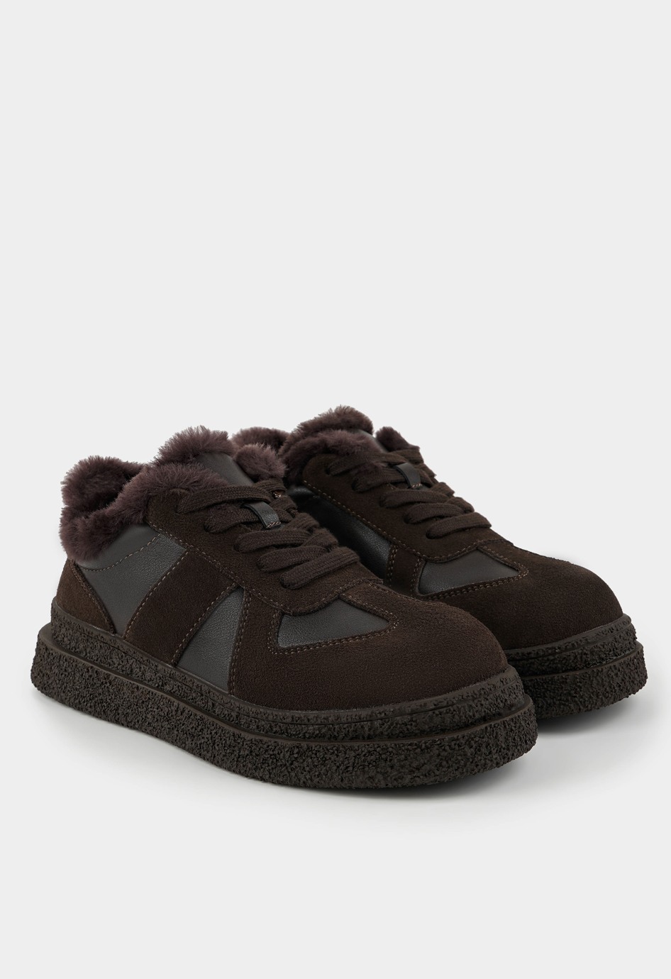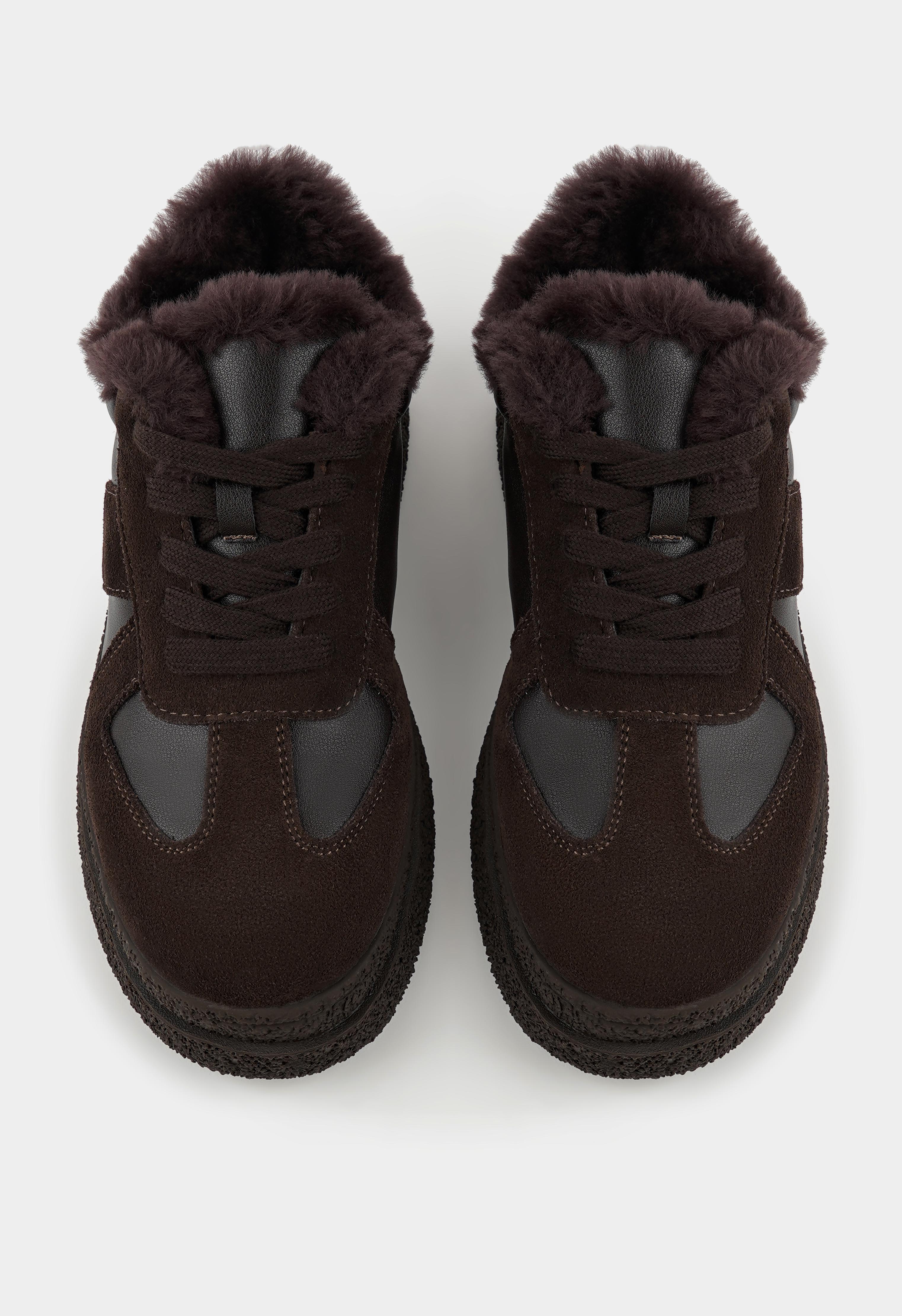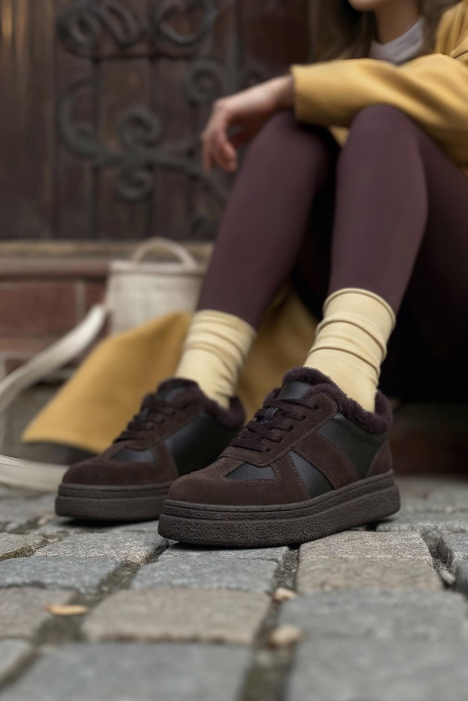 Ботинки коричневого цвета – надежное решение для тех, кто ценит стиль и комфорт в холодный сезон. Верх выполнен из сочетания натуральной кожи и замши, что придает модели выразительный внешний вид и прочность, а внутренняя отделка из натуральной шерсти сохраняет тепло и ощущение уюта. Жесткая подошва обеспечивает устойчивость и долговечность, округлый мысок делает обувь удобной даже при длительной ходьбе, в то время как классическая шнуровка гарантирует плотную фиксацию стопы. Лаконичная платформа добавляет современности и легкости в образ, делая ботинки идеальным выбором для активных будней.