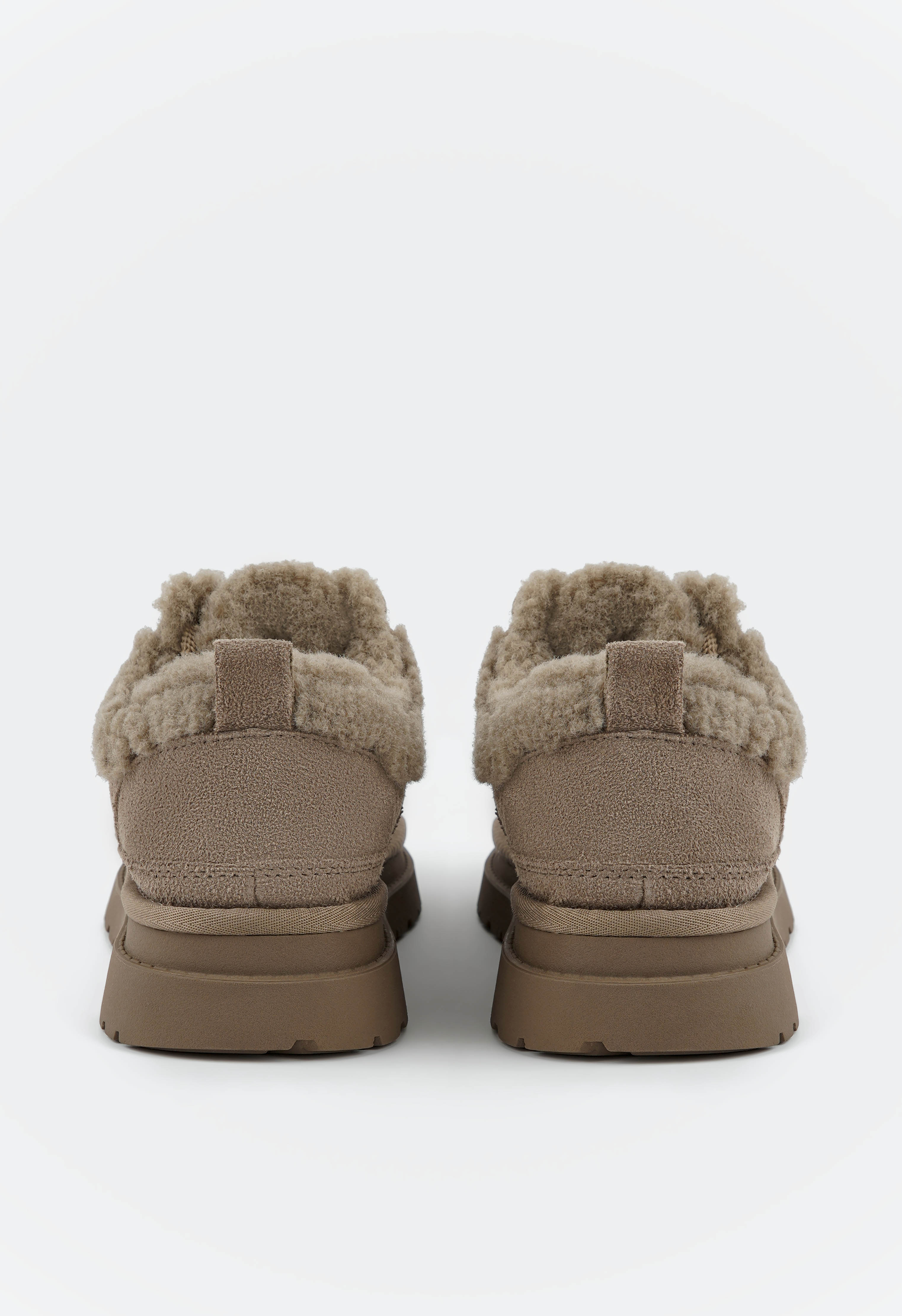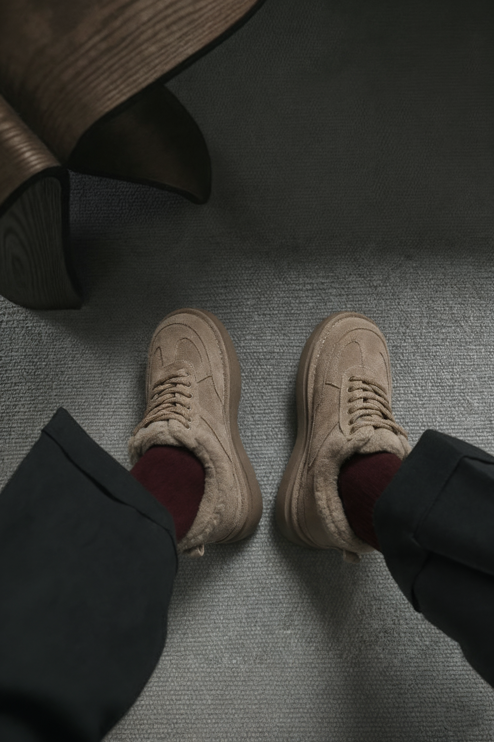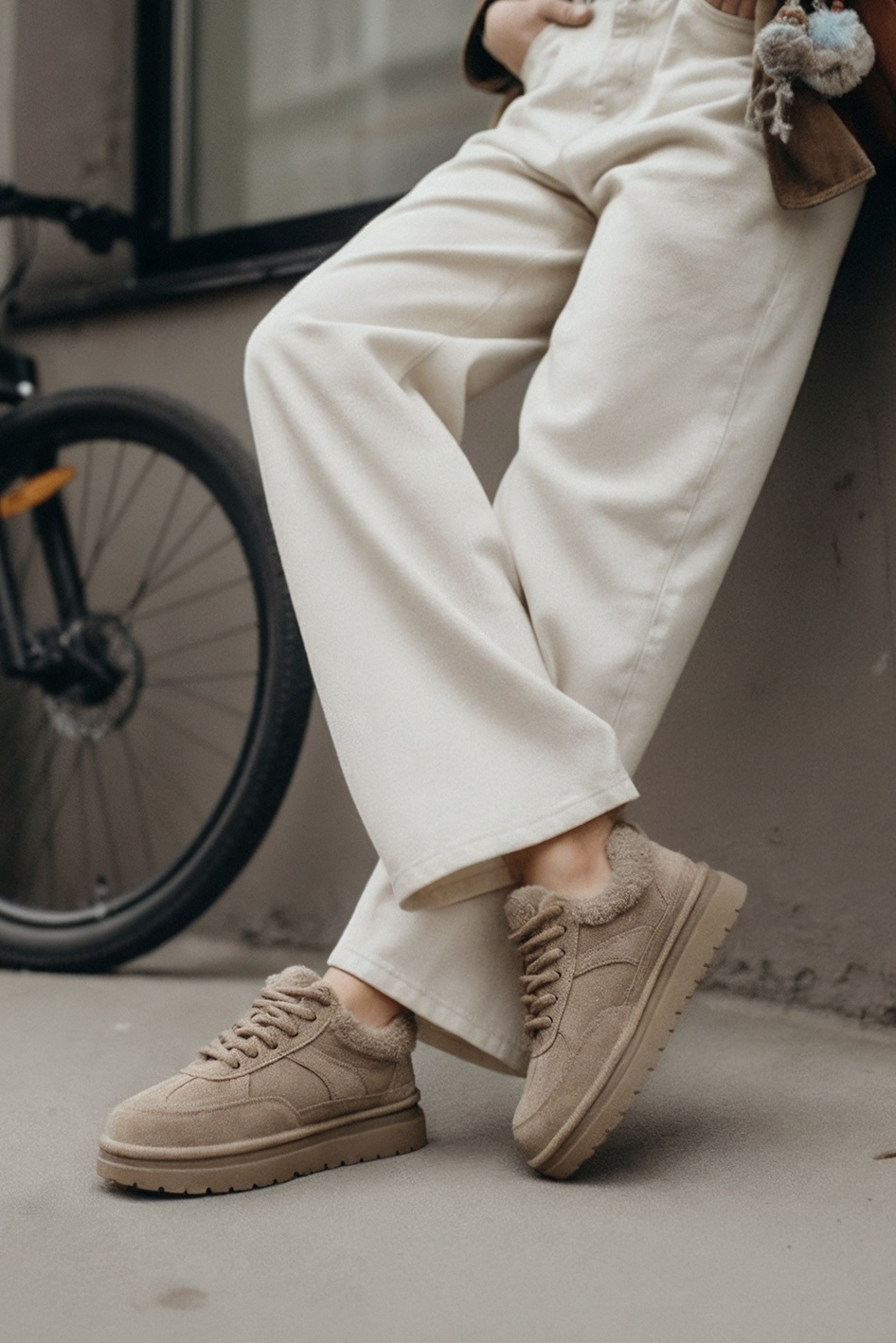 Полуботинки бежевого цвета – гармоничное сочетание мягкого дизайна и практичности, созданное для стильных образов на каждый день. Модель выполнена из натуральной замши, которая приятно ложится по ноге и сохраняет безупречный внешний вид, внутренняя отделка из натуральной шерсти обеспечивает тепло и комфорт в прохладную погоду. Жесткая подошва придает устойчивость и защищает от влаги, округлый мысок создает удобную посадку, а аккуратная шнуровка помогает легко регулировать объем. Платформа и фурнитура в цвете хаки добавляет современный акцент и делает модель особенно выразительной.