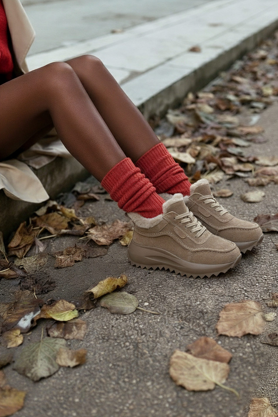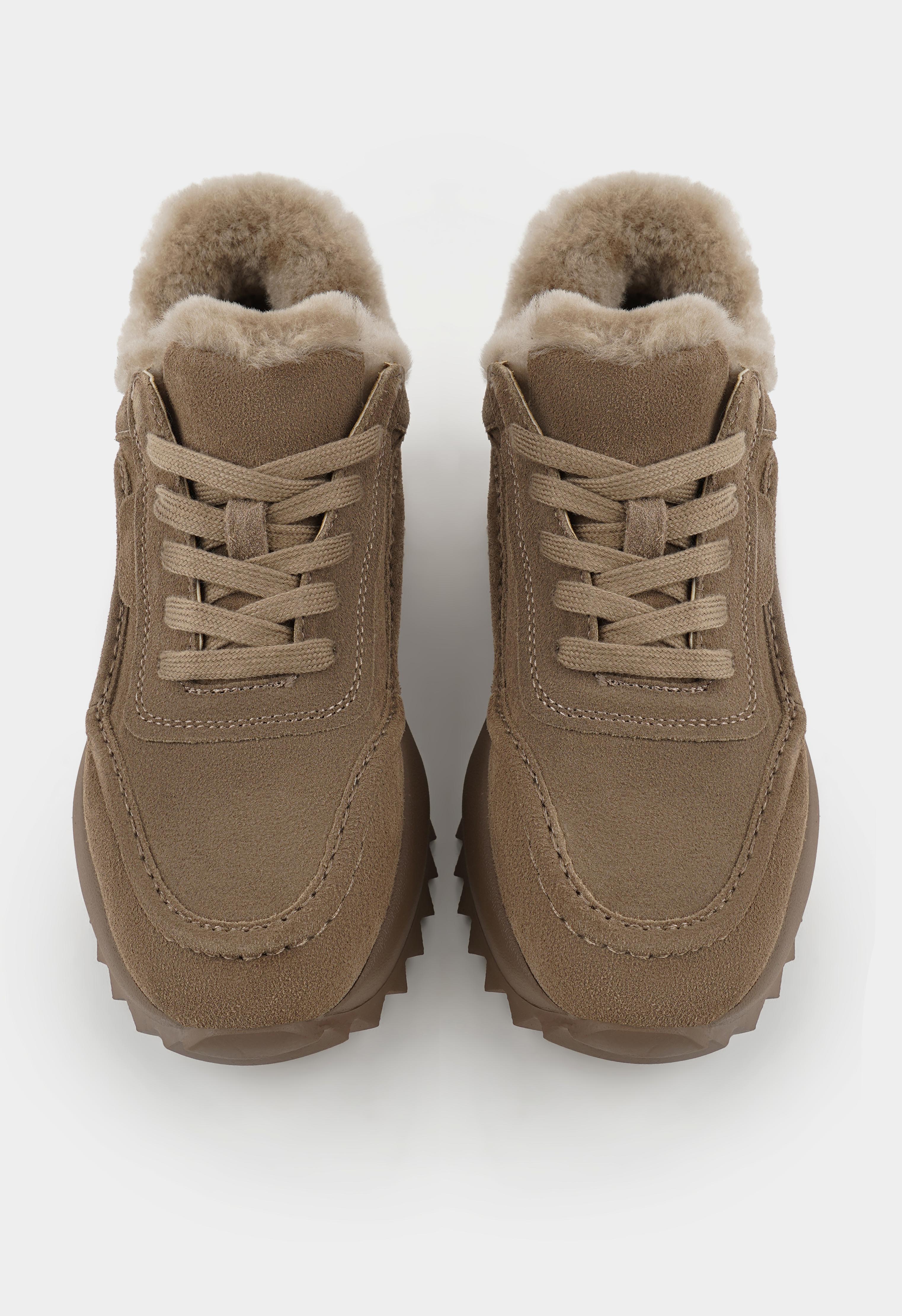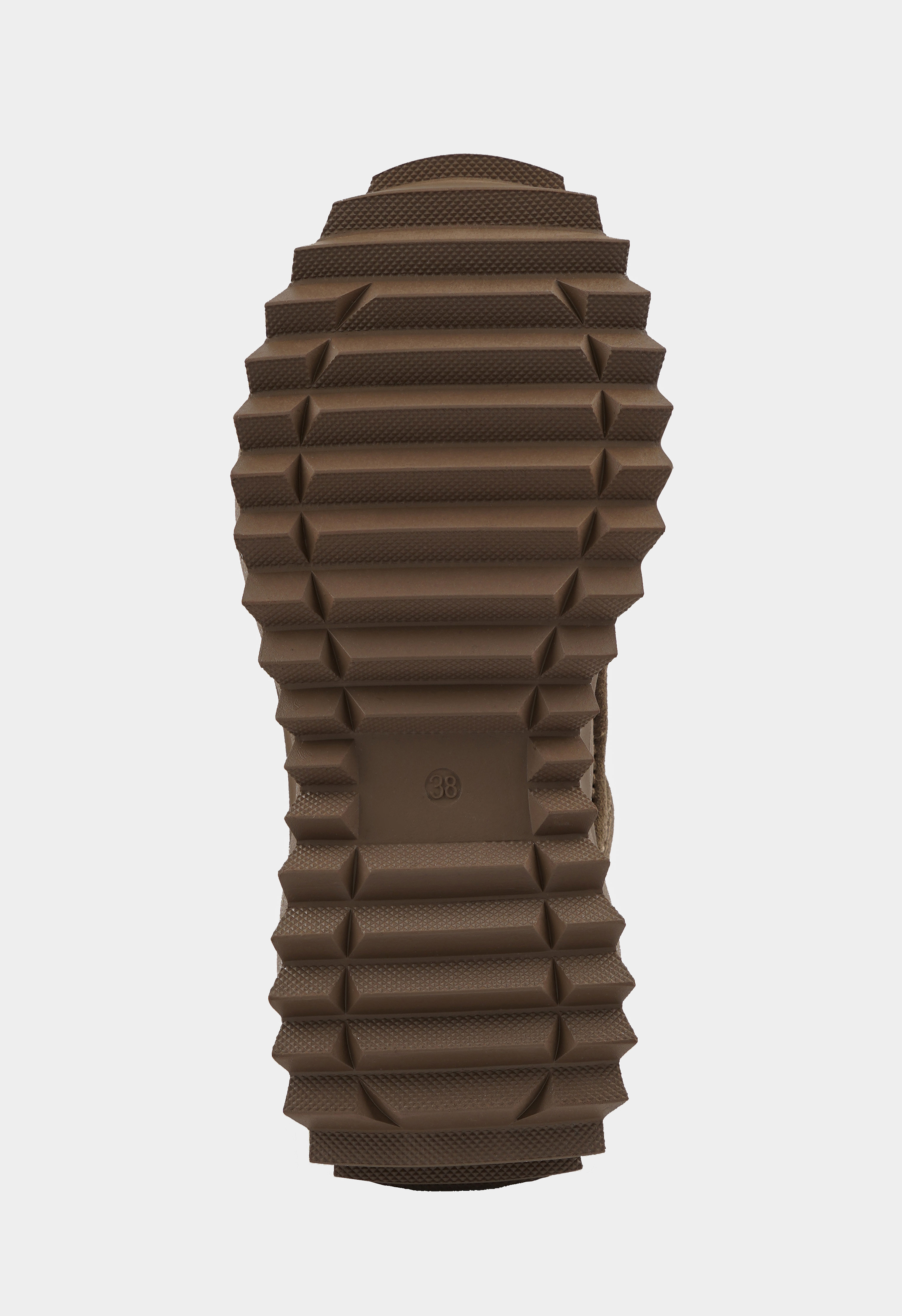 Ботинки коричневого цвета – стильное решение для тех, кто ищет баланс между комфортом и современным дизайном. Верх из натуральной замши выглядит утонченно и легко сочетается с повседневными образами, в то время как подкладка из натуральной шерсти обеспечивает мягкость и тепло в прохладную погоду. Жесткая подошва делает шаг устойчивым, округлый мысок способствует удобной посадке, а шнуровка добавляет функциональности и подчеркивает повседневный силуэт. Платформа придает модели выразительность, создавая обувь, которая сочетает практичность и элегантный стиль.