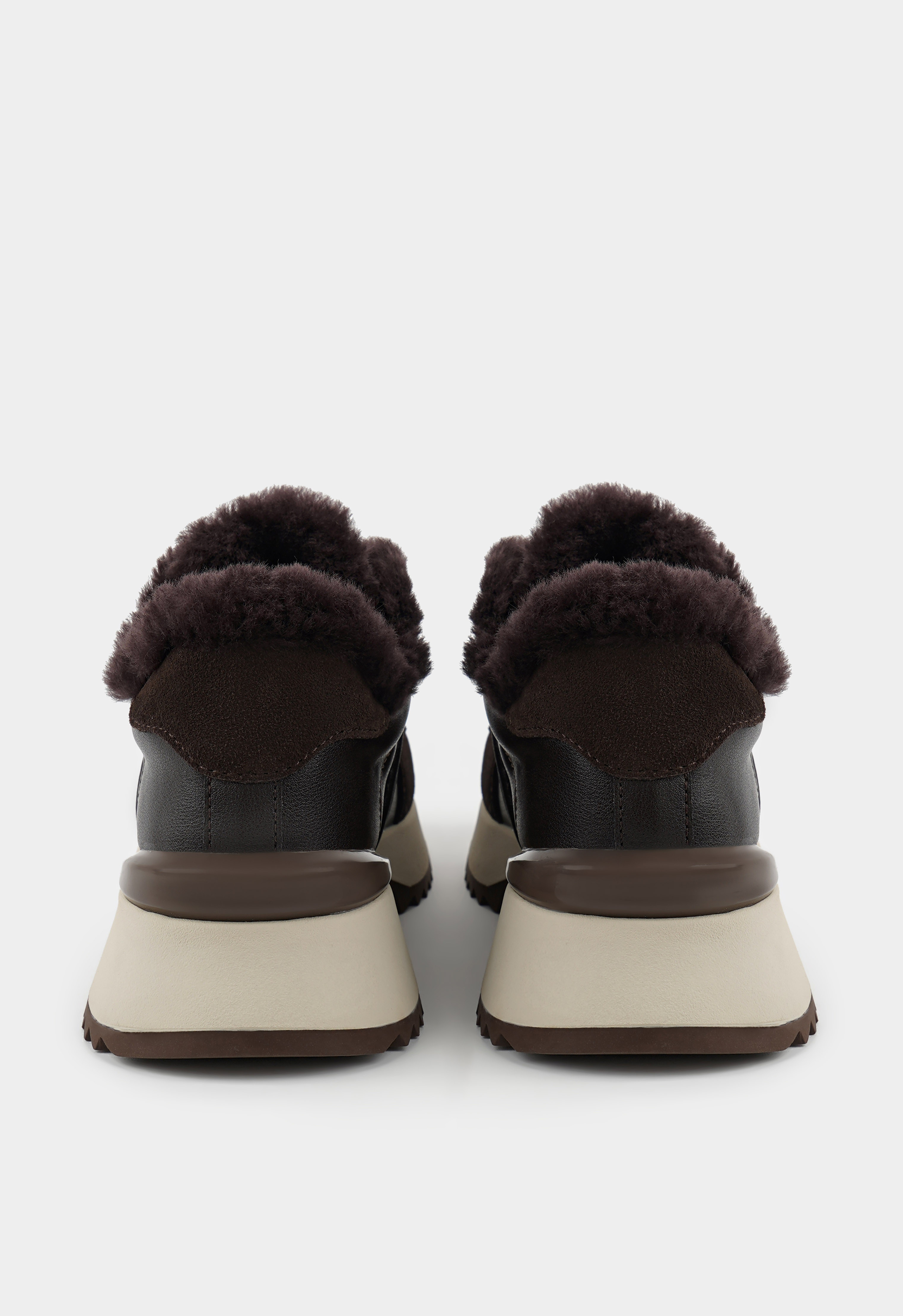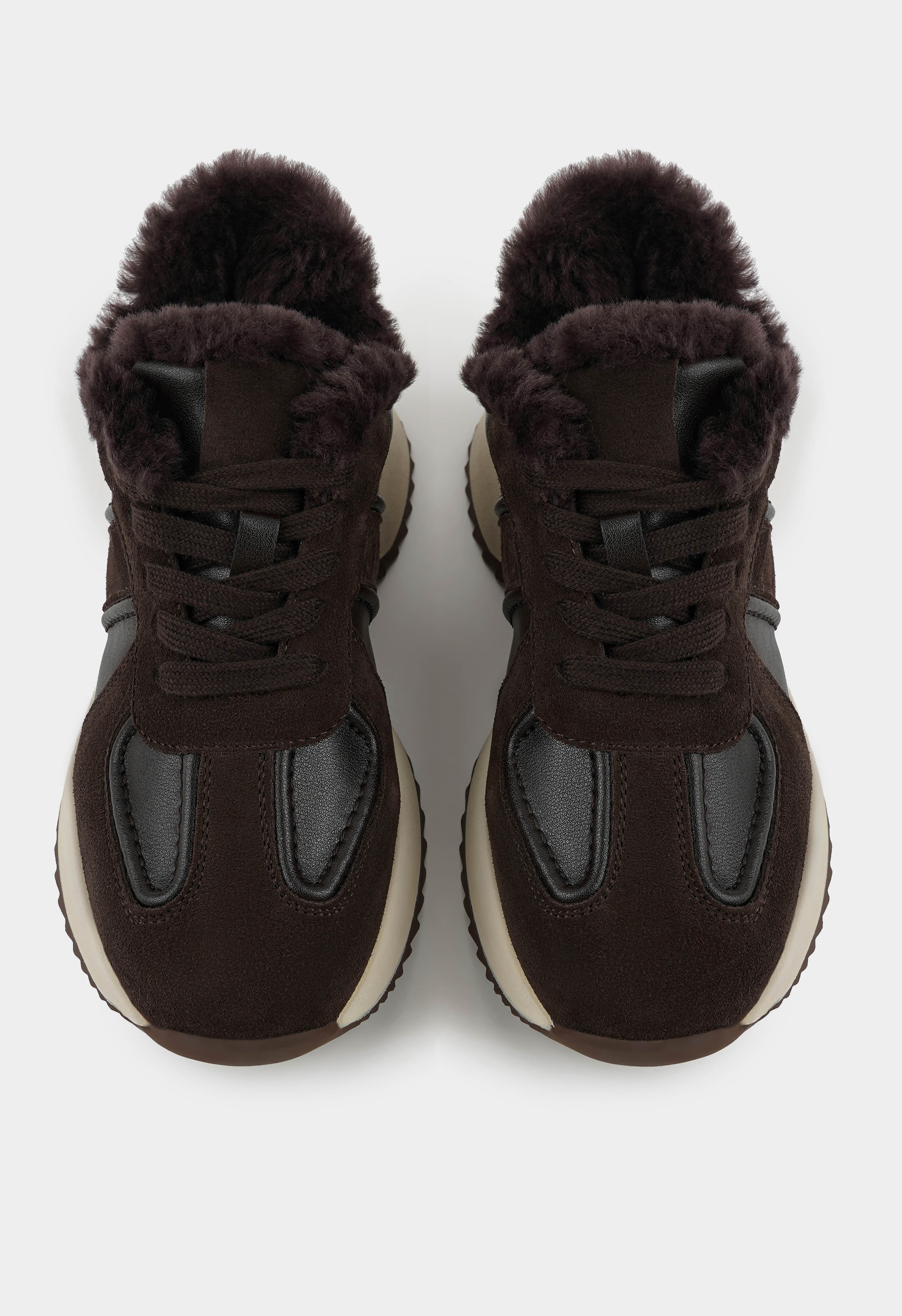 Повседневные полуботинки коричневого цвета станут надежной основой для стильных и удобных образов на каждый день. Сочетание натуральной замши и гладкой кожи придает модели выразительный вид и гарантирует долговечность, в то время как внутренняя отделка из натуральной шерсти сохраняет тепло и комфорт даже в холодное время года. Жесткая подошва обеспечивает устойчивость на любых поверхностях, округлый мысок делает посадку стопы естественной, а шнуровка позволяет подогнать обувь по ноге. Платформа визуально удлиняет силуэт и добавляет легкости шагу, подчеркивая современный характер этой модели.
