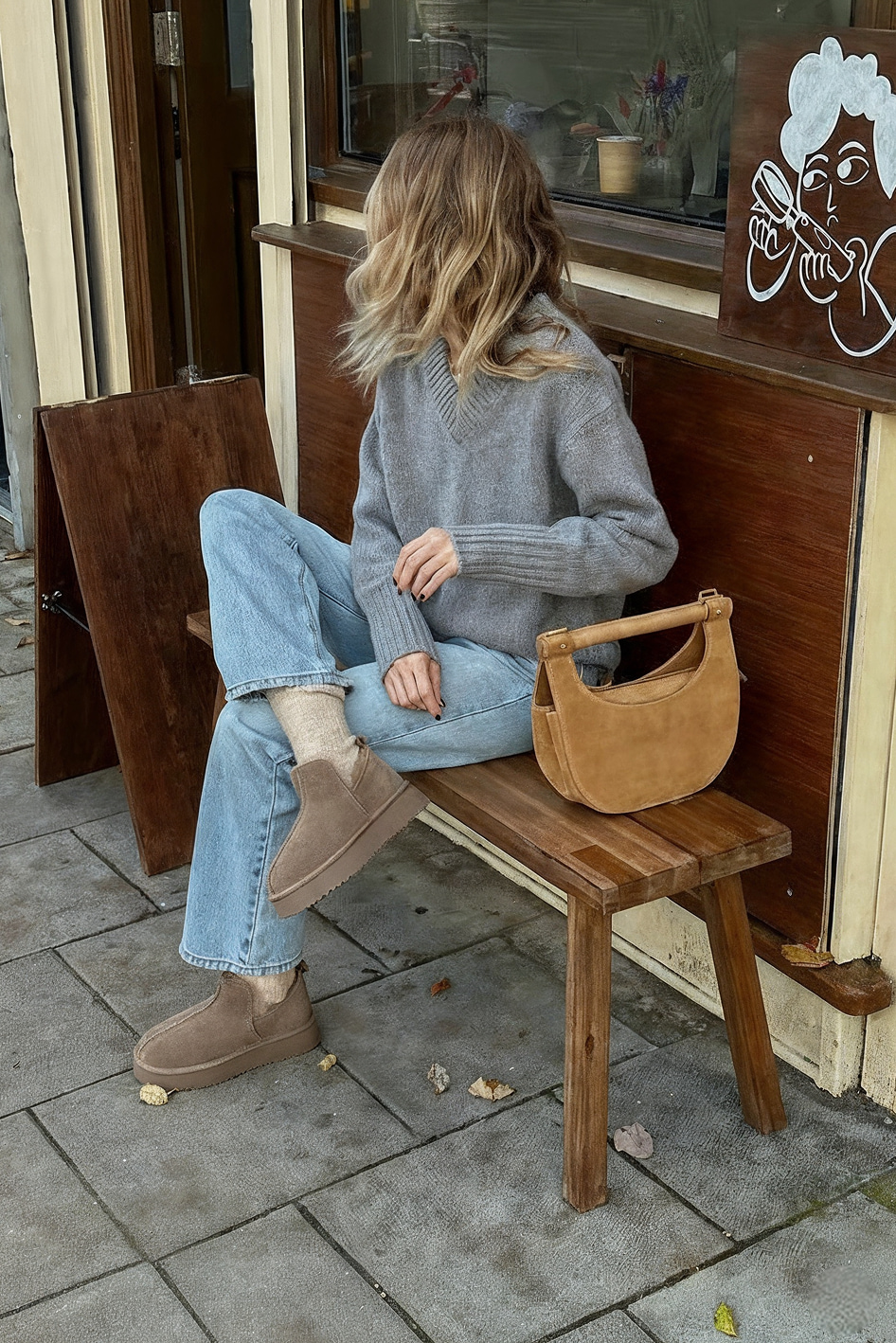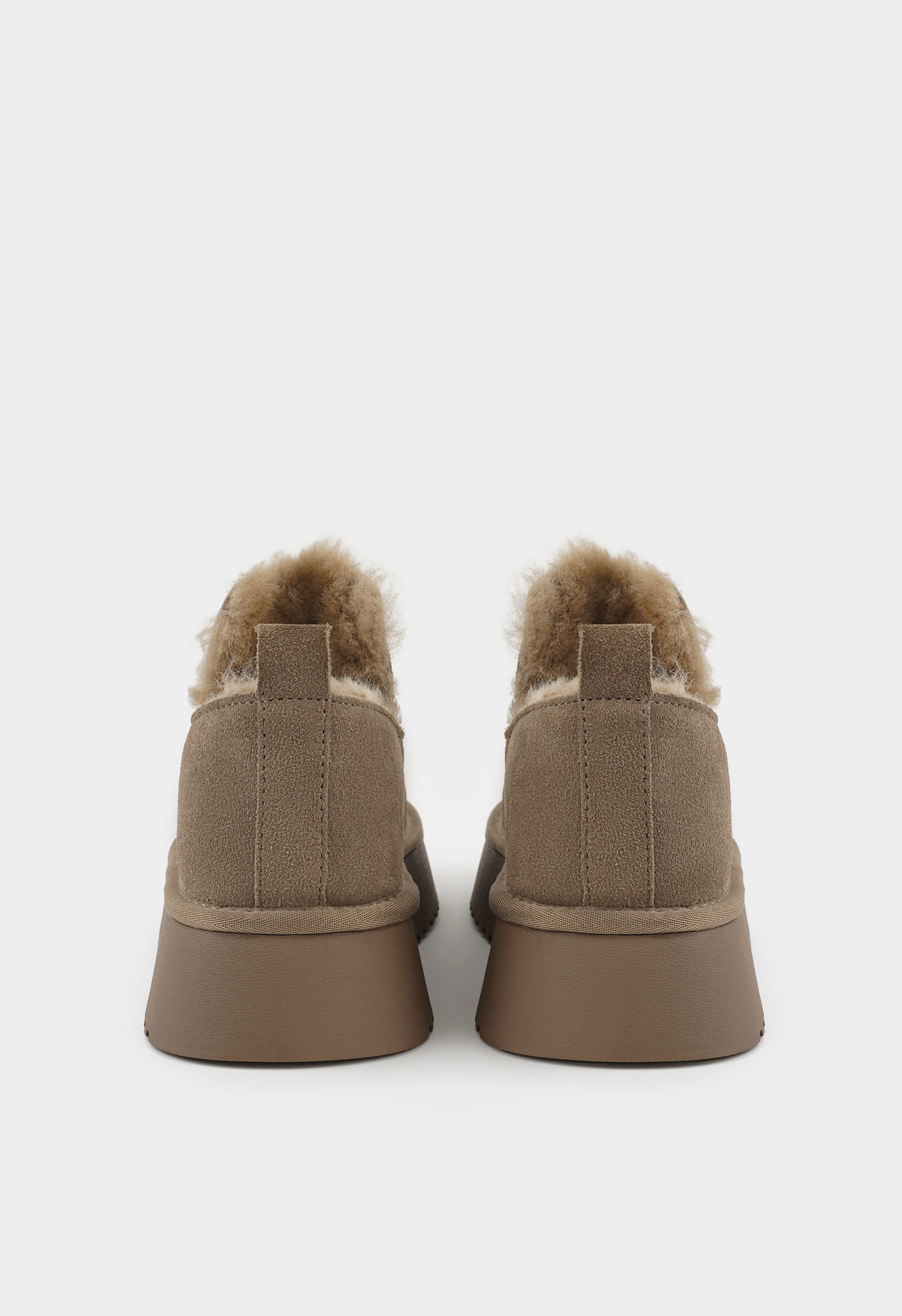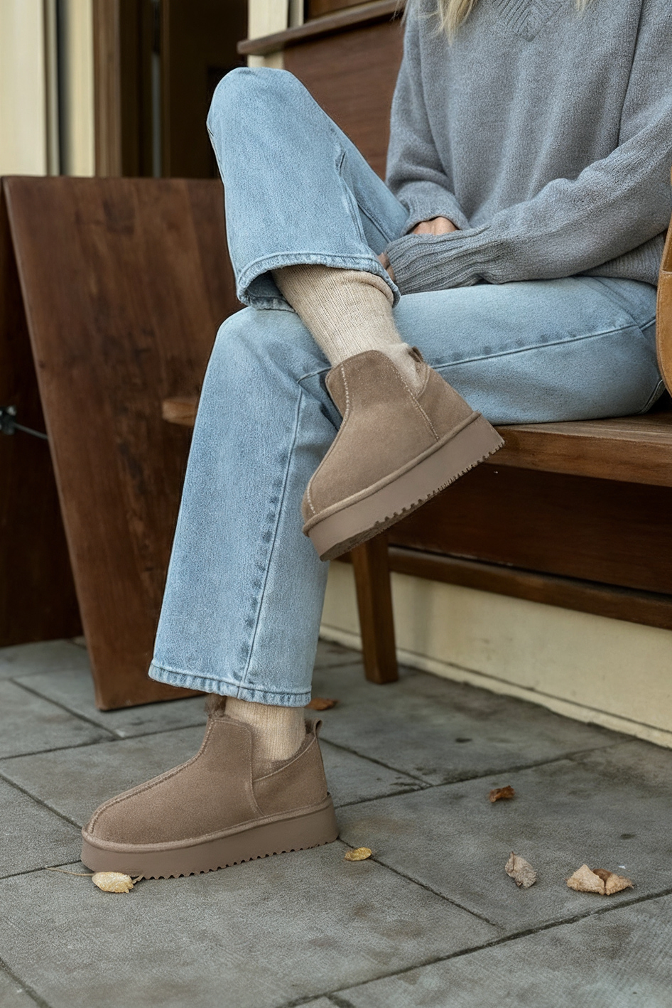 Лаконичные угги бежевого цвета – универсальная модель для тех, кто ценит сдержанный стиль и комфорт в любой ситуации. Натуральная замша придает обуви благородную фактуру и мягкость, а внутренняя отделка из натуральной шерсти обеспечивает тепло и уют в прохладную погоду. Жесткая подошва гарантирует устойчивость и надежную поддержку стопы, округлый мысок делает посадку комфортной, в то время как аккуратная платформа добавляет современности и визуальной легкости. Эти ботинки станут практичным выбором для повседневных образов и отлично дополнят как классический, так и базовый стиль.