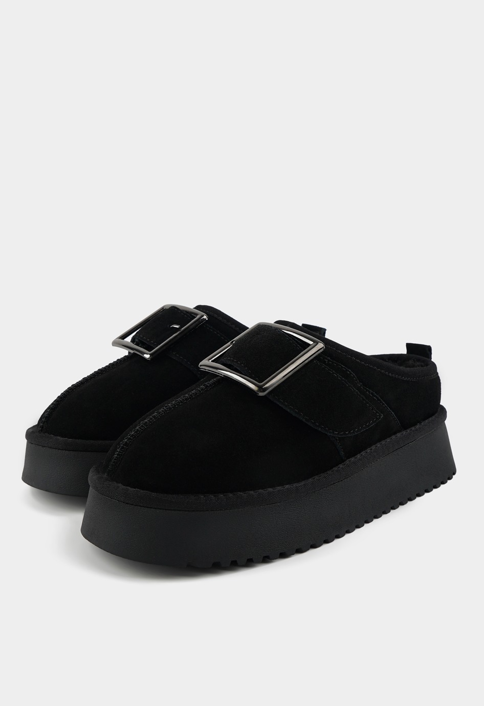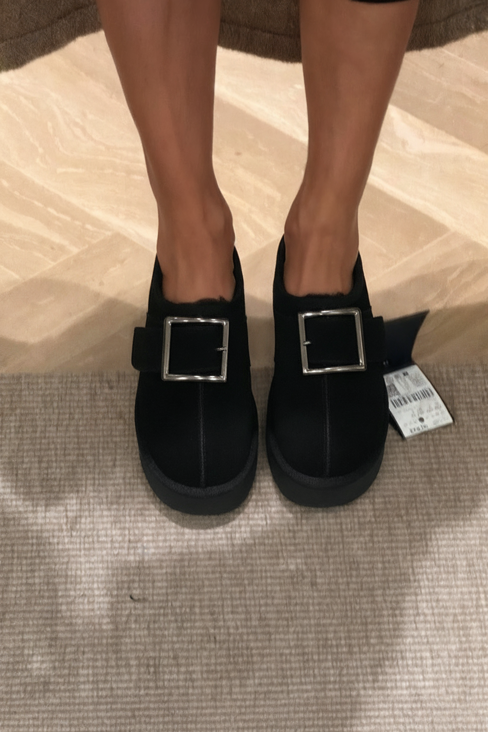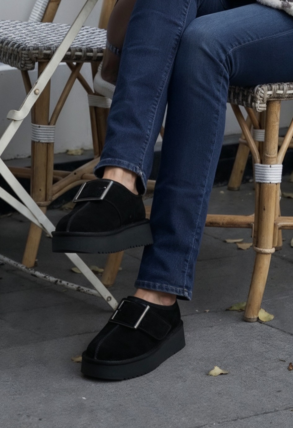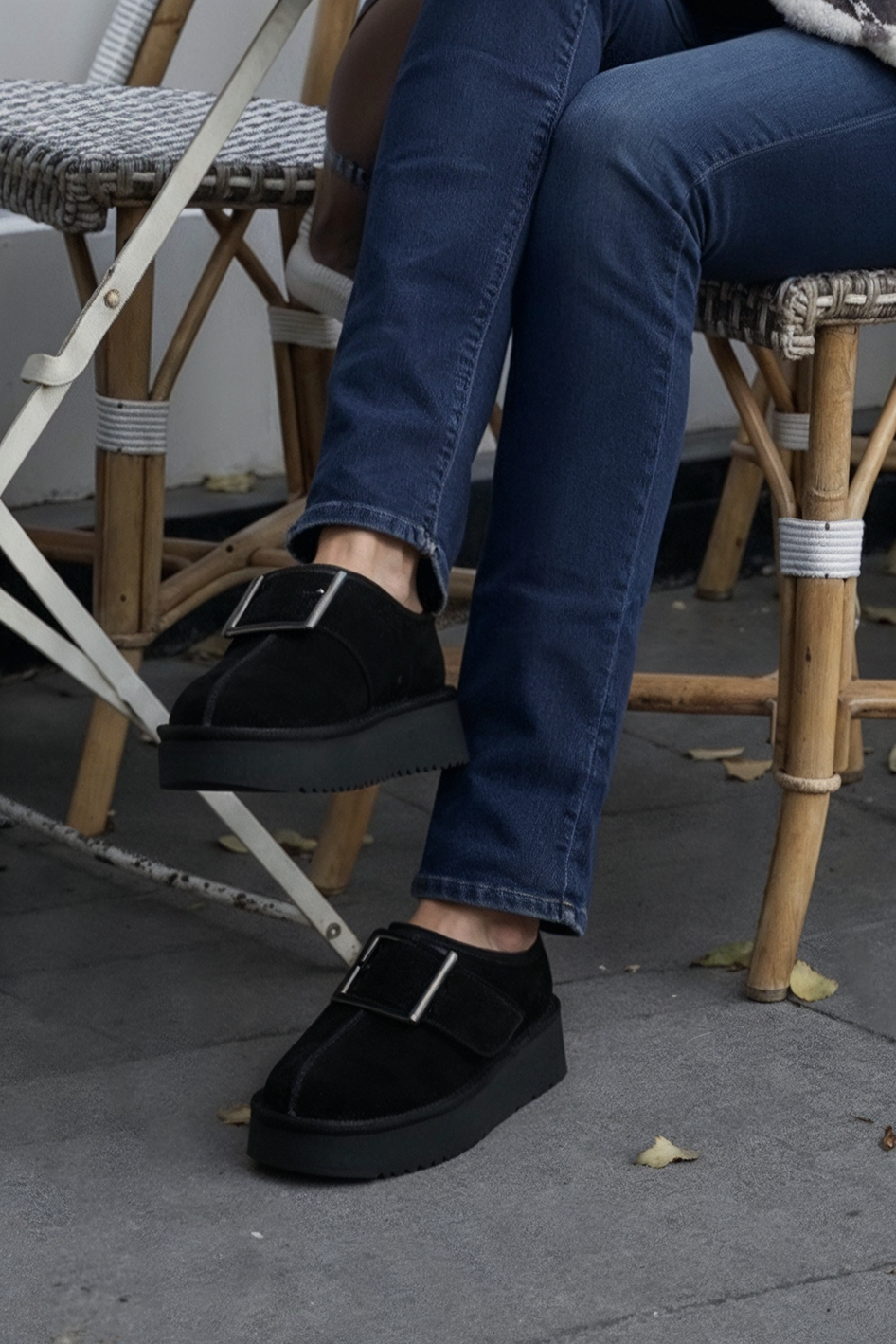 Полуботинки черного цвета – стильный вариант для тех, кто ценит элегантность и комфорт в повседневной обуви. Верх из натуральной замши придает модели утонченный внешний вид и мягкость, а внутренняя отделка из натуральной шерсти обеспечивает уют и тепло в прохладную погоду. Жесткая подошва делает шаг устойчивым, округлый мысок гарантирует удобство, а металлическая фурнитура добавляет выразительный акцент. Умеренная платформа создает гармоничное сочетание практичности и изящного стиля.