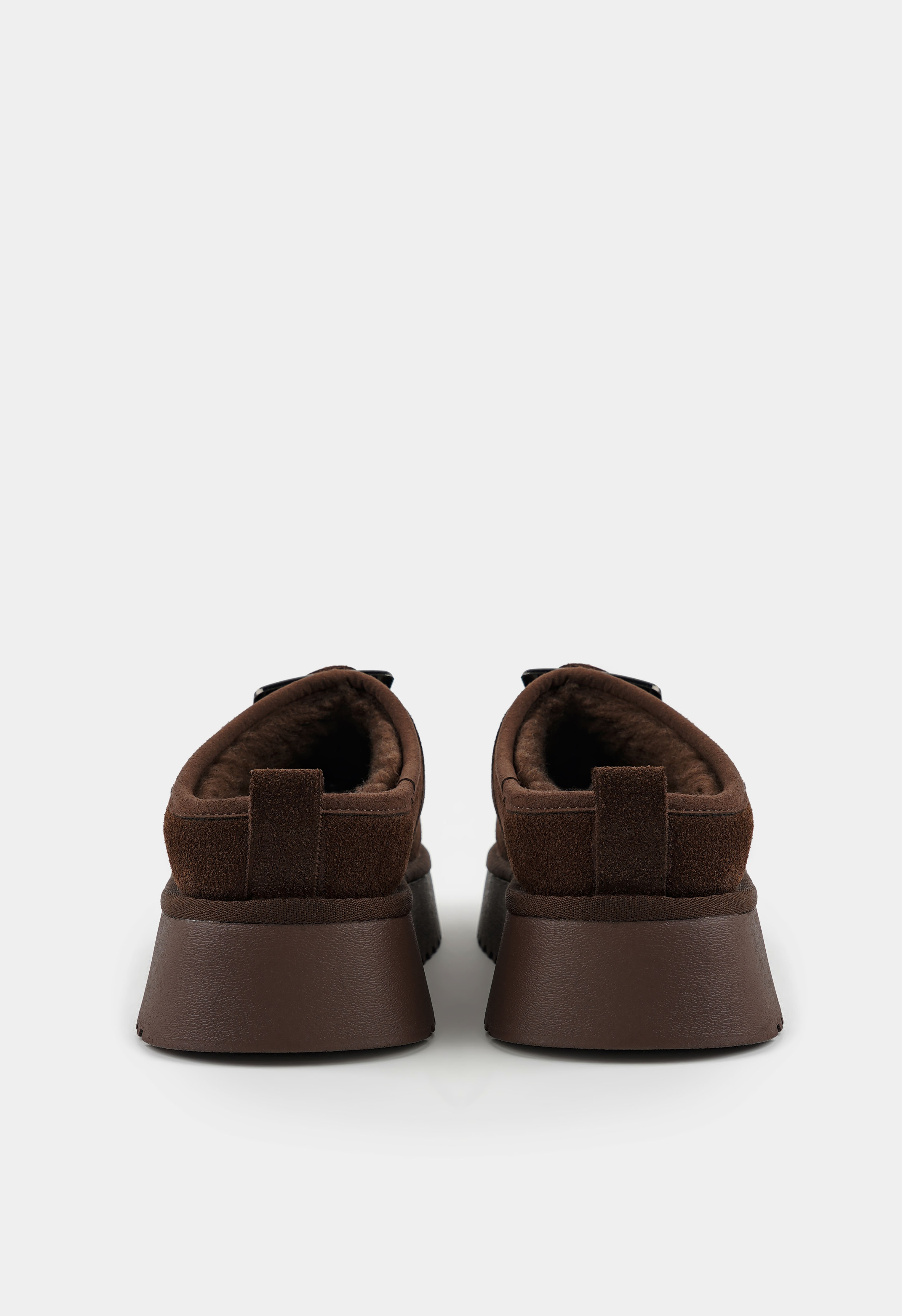 Полуботинки коричневого цвета – стильный вариант для тех, кто ценит элегантность и комфорт в повседневной обуви. Верх из натуральной замши придает модели утонченный внешний вид и мягкость, а внутренняя отделка из натуральной шерсти обеспечивает уют и тепло в прохладную погоду. Жесткая подошва делает шаг устойчивым, округлый мысок гарантирует удобство, а металлическая фурнитура добавляет выразительный акцент. Умеренная платформа создает гармоничное сочетание практичности и изящного стиля.