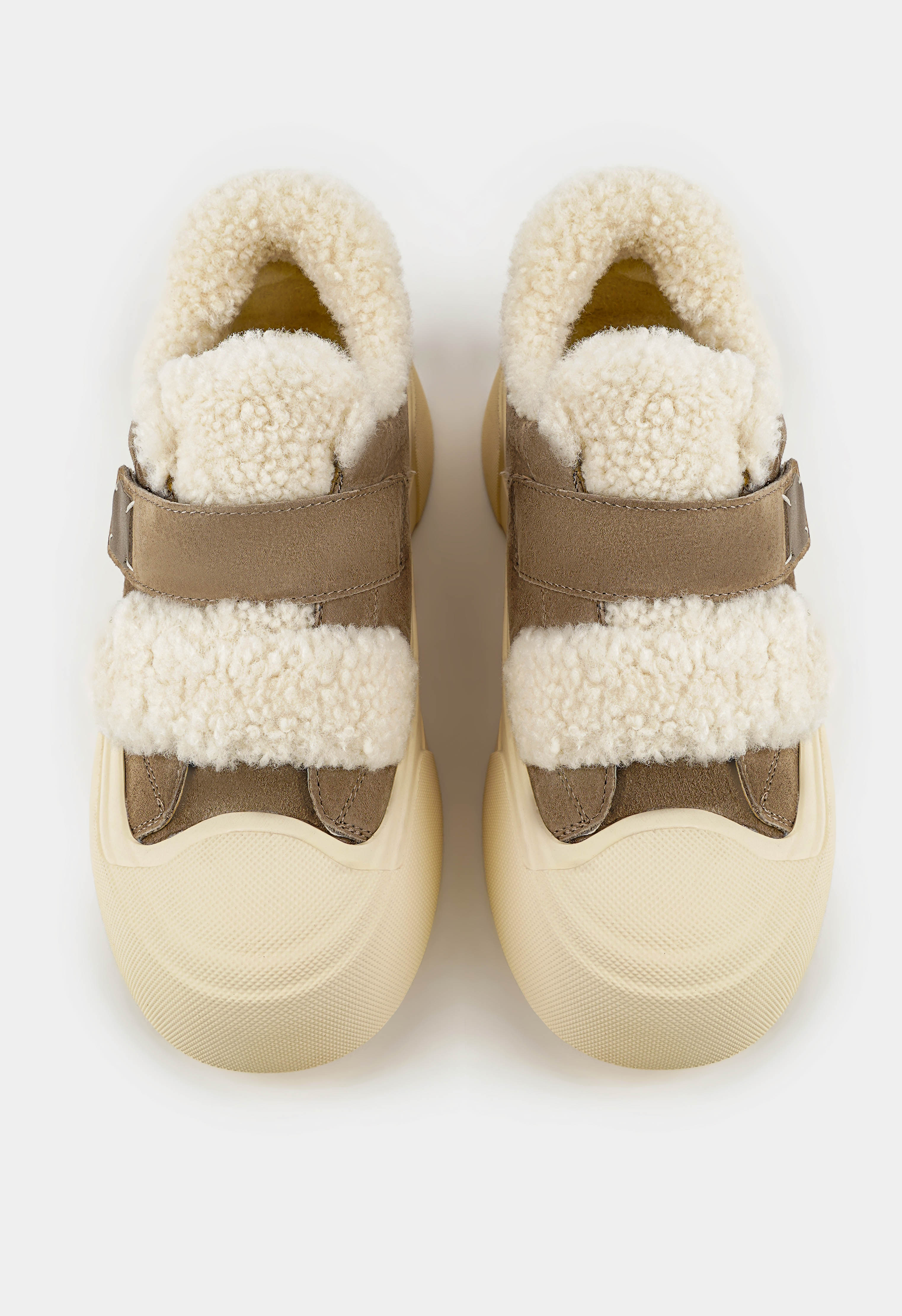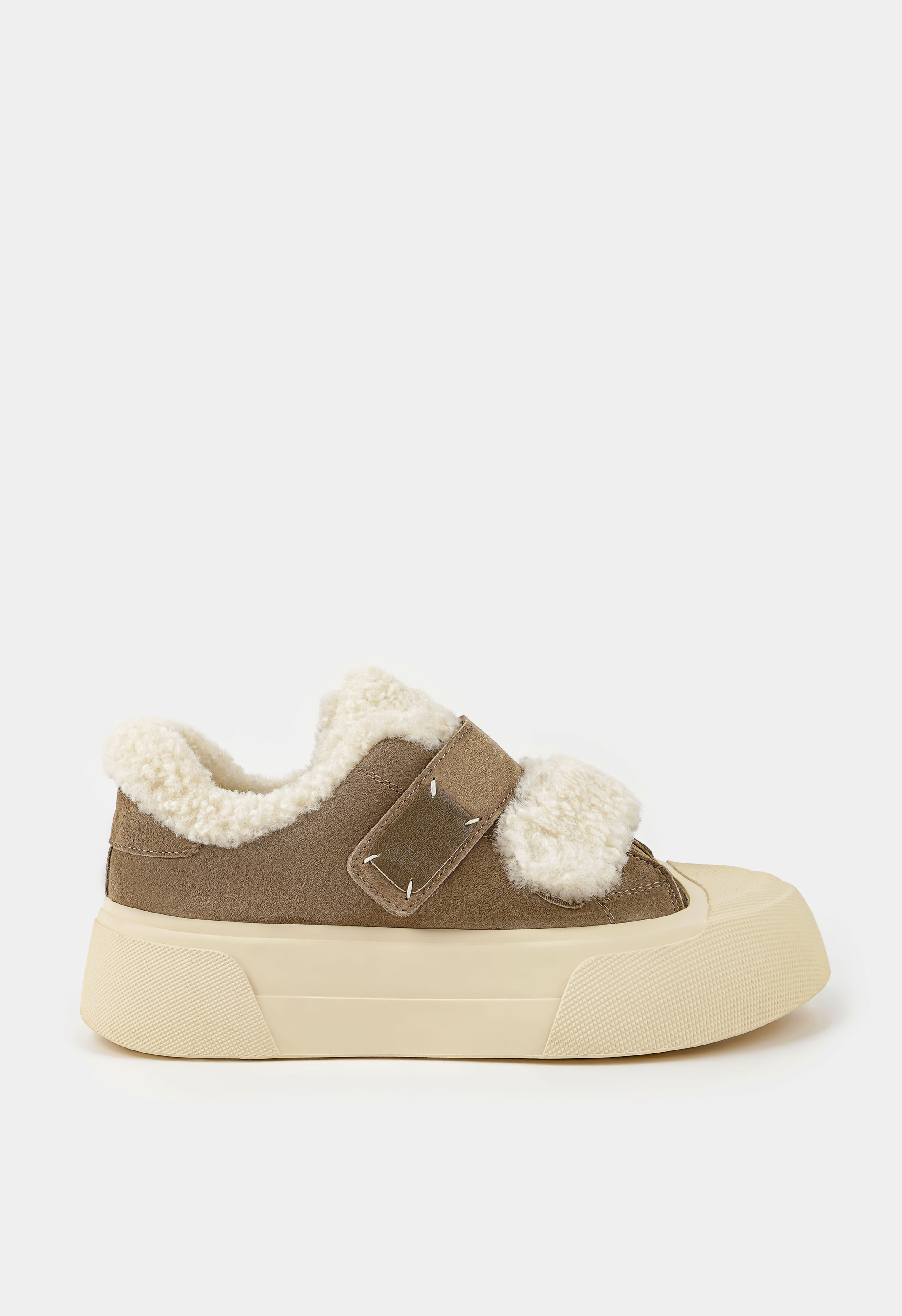 Бежевые полуботинки – удобное и стильное решение для повседневной носки в холодное время года. Натуральная замша придает модели мягкость и благородный внешний вид, а внутренняя отделка из натуральной шерсти обеспечивает комфорт и тепло в течение всего дня. Жесткая подошва гарантирует устойчивость, округлый мысок делает обувь комфортной при длительной ходьбе, а застежка-липучка добавляет практичности и позволяет быстро надевать и снимать обувь. Платформа визуально удлиняет силуэт и придает образу современный, динамичный характер.
