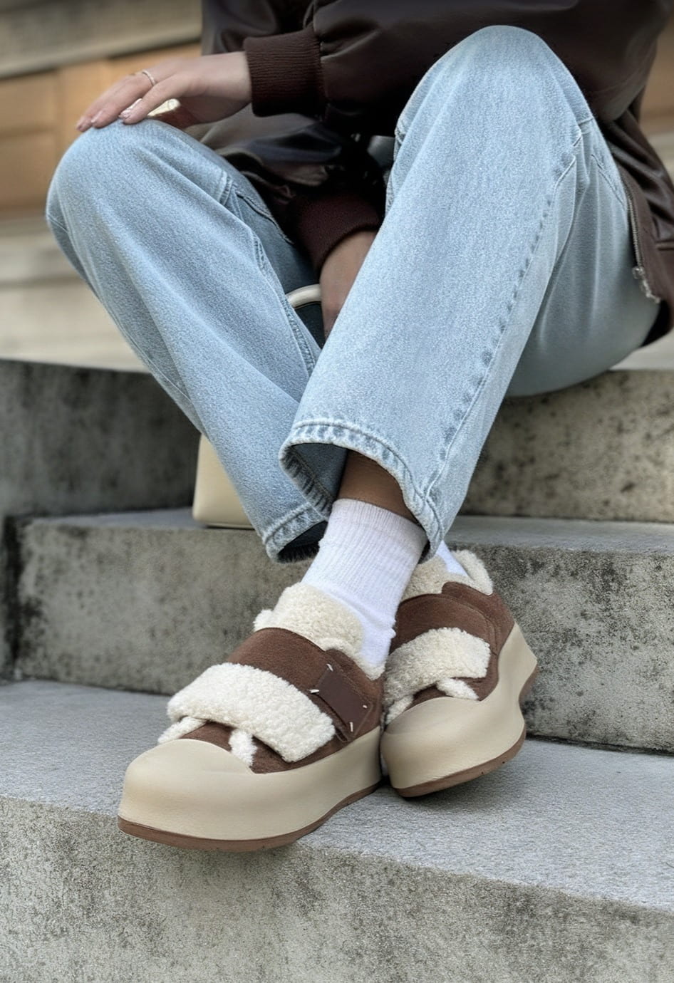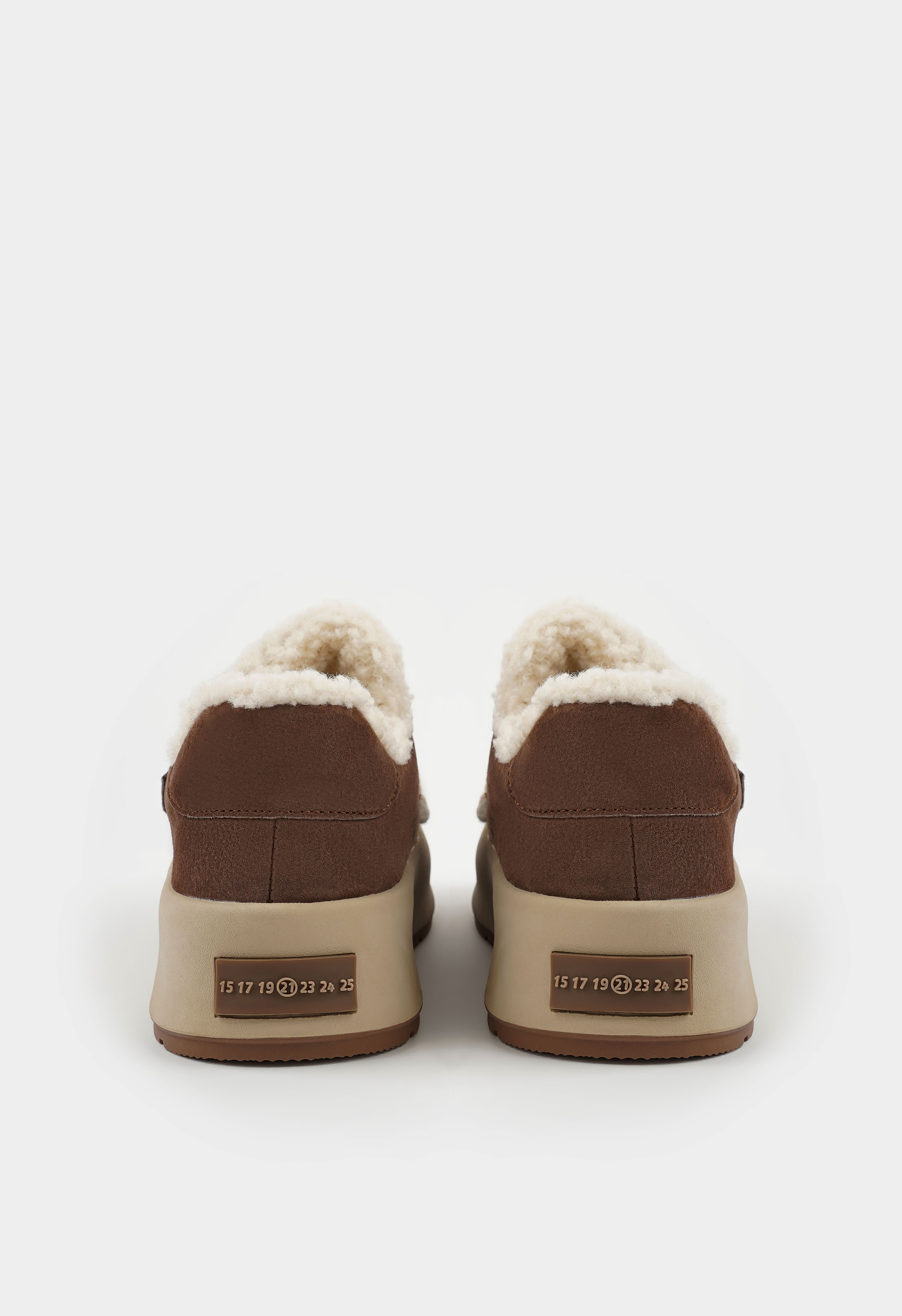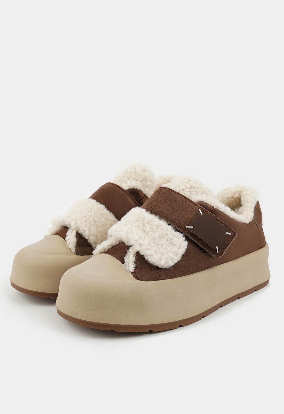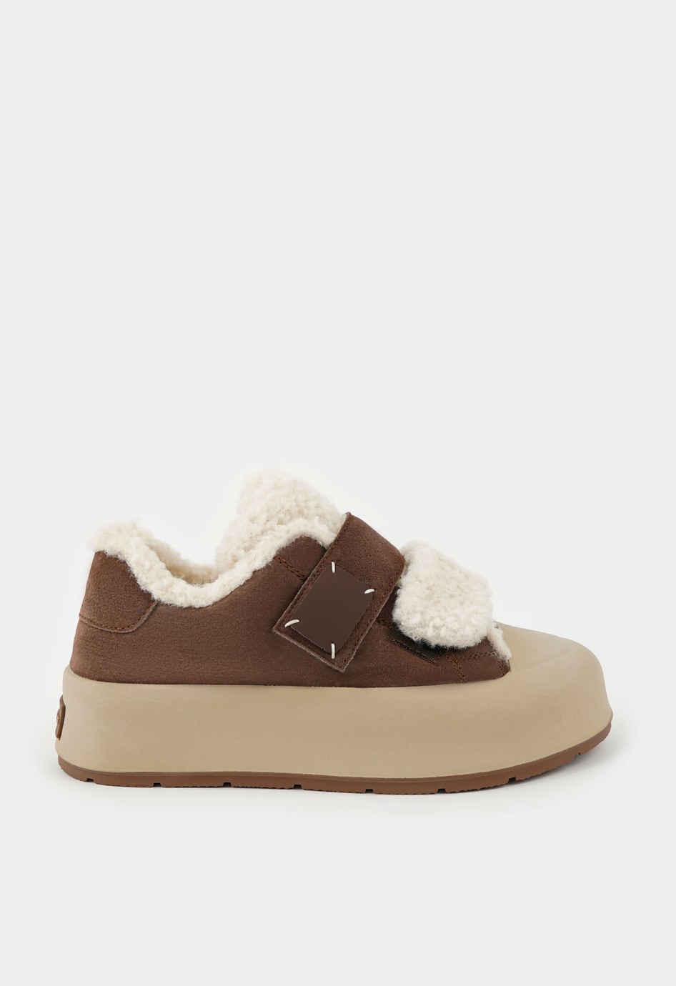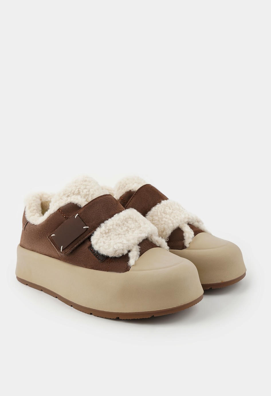 Коричневые кроссовки – удобное и стильное решение для повседневной носки в холодное время года. Натуральная замша придает модели мягкость и благородный внешний вид, а внутренняя отделка из натуральной шерсти обеспечивает комфорт и тепло в течение всего дня. Жесткая подошва гарантирует устойчивость, округлый мысок делает обувь комфортной при длительной ходьбе, а застежка-липучка добавляет практичности и позволяет быстро надевать и снимать обувь. Платформа визуально удлиняет силуэт и придает образу современный, динамичный характер.
