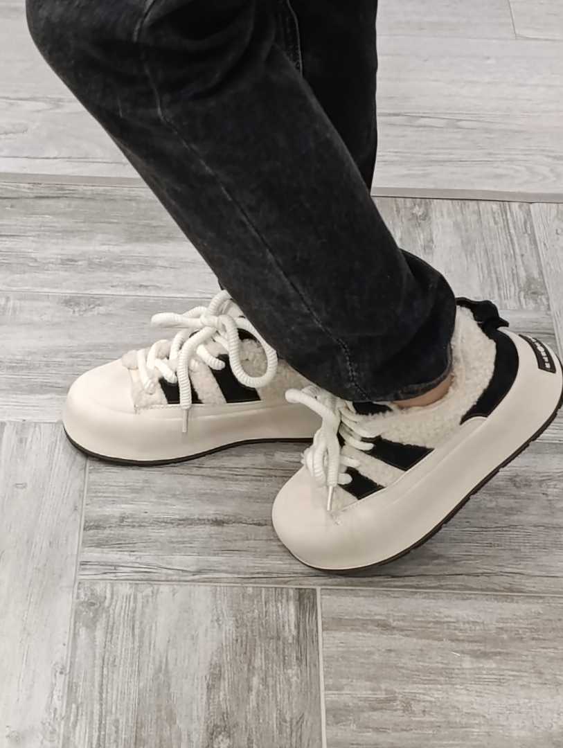 Полуботинки молочного цвета – стильная и удобная модель, которая идеально подойдет для повседневной носки и создаст элегантный акцент в образе. Верх выполнен из мягкой натуральной замши, отличающейся приятной текстурой и износостойкостью, внутренняя отделка из натуральной шерсти обеспечивает комфорт и тепло в прохладную погоду. Жесткая подошва делает шаг устойчивым, округлый мысок создает ощущение свободы и легкости, а шнуровка позволяет добиться идеальной посадки по стопе. Умеренная платформа придает обуви современное вид и делает каждый шаг более уверенным.