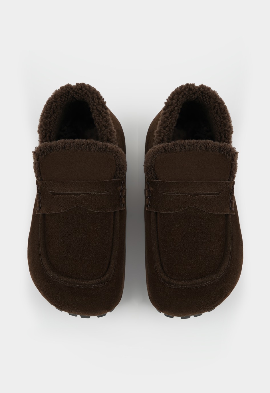 Эти полуботинки с выразительным квадратным мыском, выполненные из благородной коричневой замши, станут вашим спасением в зимние холода. Модель сочетает элегантную графичность форм с практичной функциональностью: жесткая подошва гарантирует устойчивость на скользких поверхностях, а плотная подкладка из натурального меха создает надежную защиту от мороза. Универсальная пара легко интегрируется в городской гардероб, предлагая безупречное сочетание с утепленными брюками, джинсами и удлиненными пальто, где каждая деталь подчеркивает продуманный до мелочей зимний образ.
