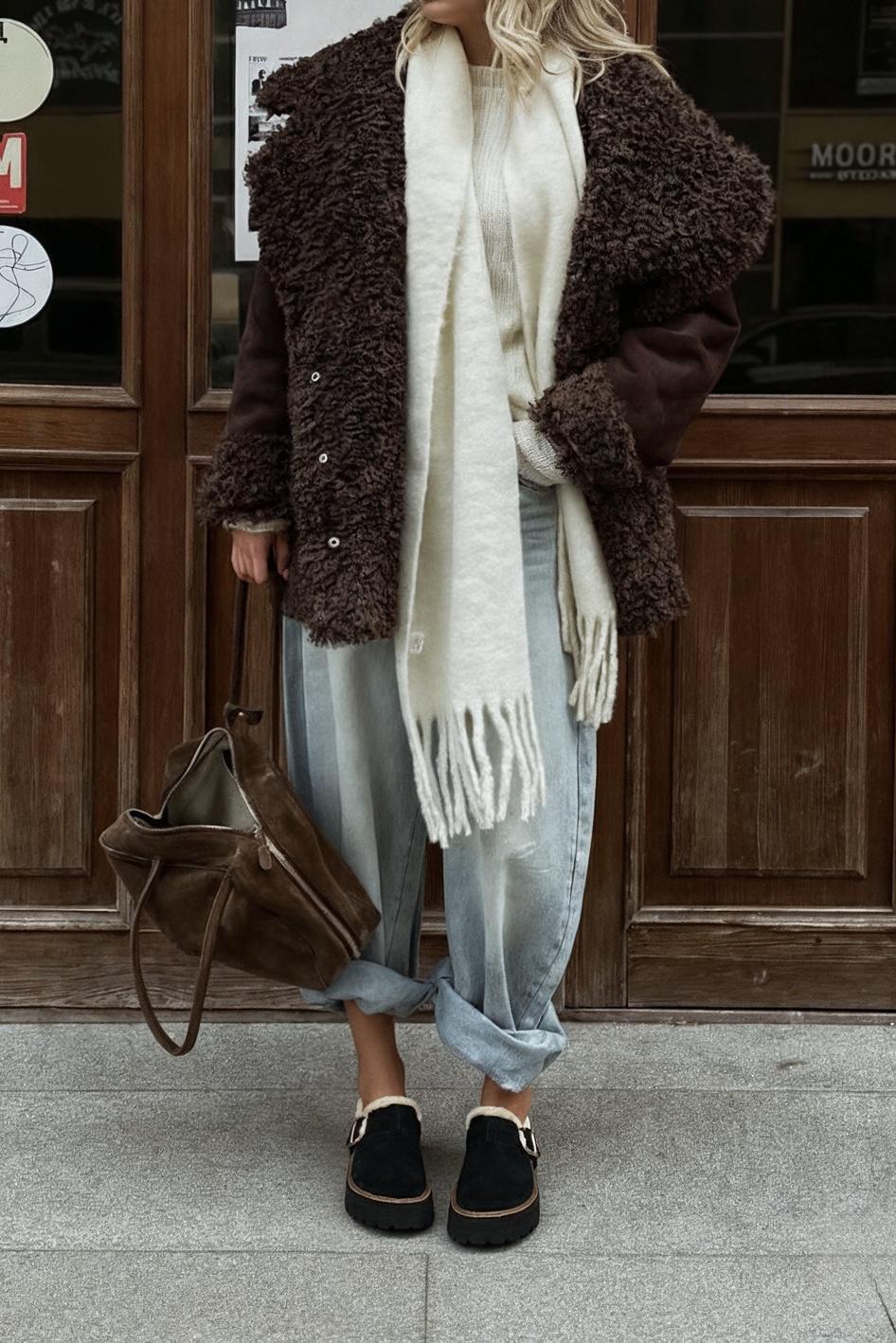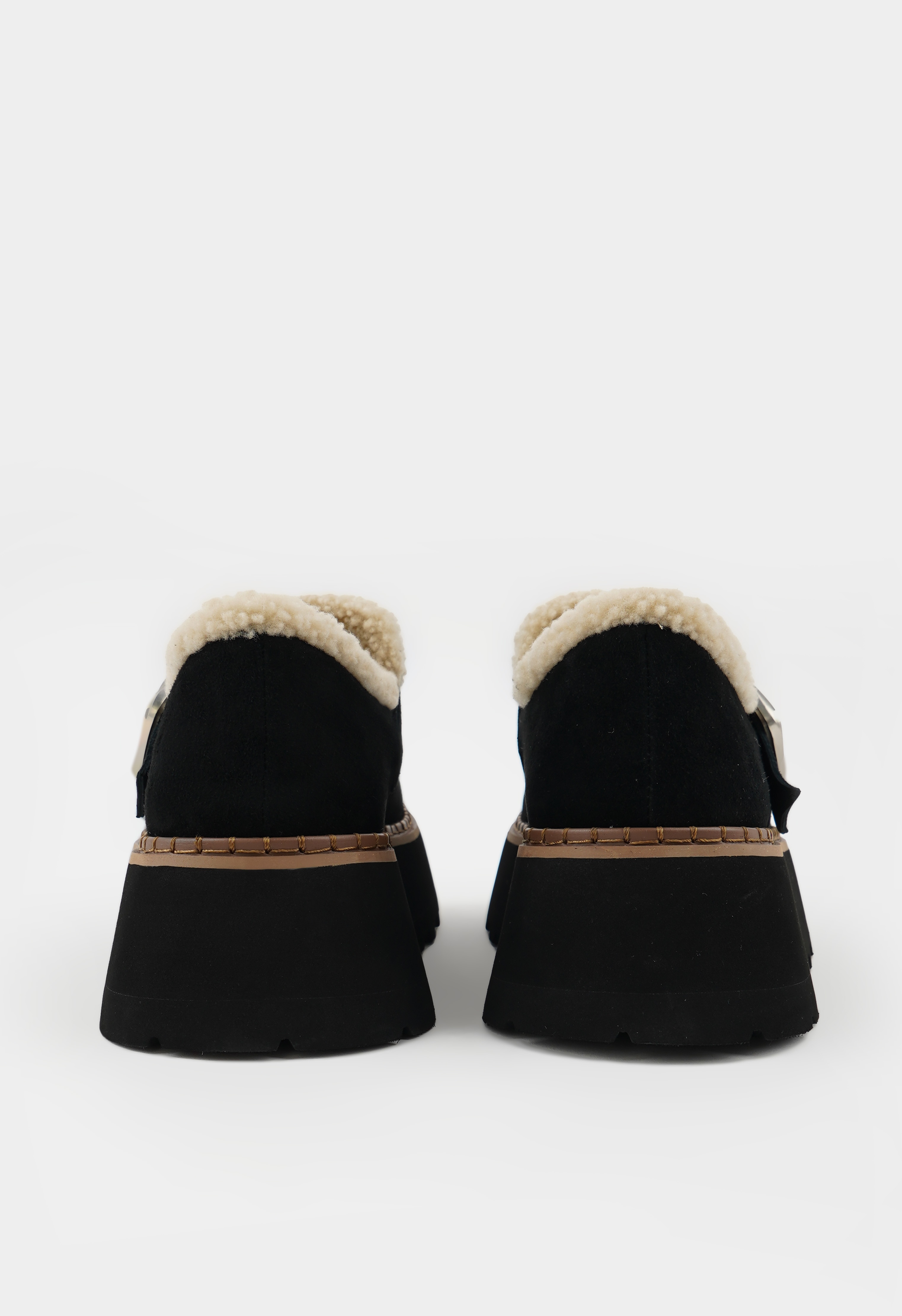 Солидные полуботинки из благородной черной замши с массивной платформой и элегантным округлым мыском создают образ уверенности и стиля. Жесткая подошва обеспечивает беспрекословную устойчивость, а натуральный мех внутри дарит тепло даже в лютые морозы. Серебряная фурнитура и практичные втачные резинки добавляют модели выразительные акценты и комфортную посадку. Идеальная пара для городской зимы, которая безупречно сочетается с грубыми джинсами, утепленными брюками и объемными свитерами, подчеркивая продуманный образ.