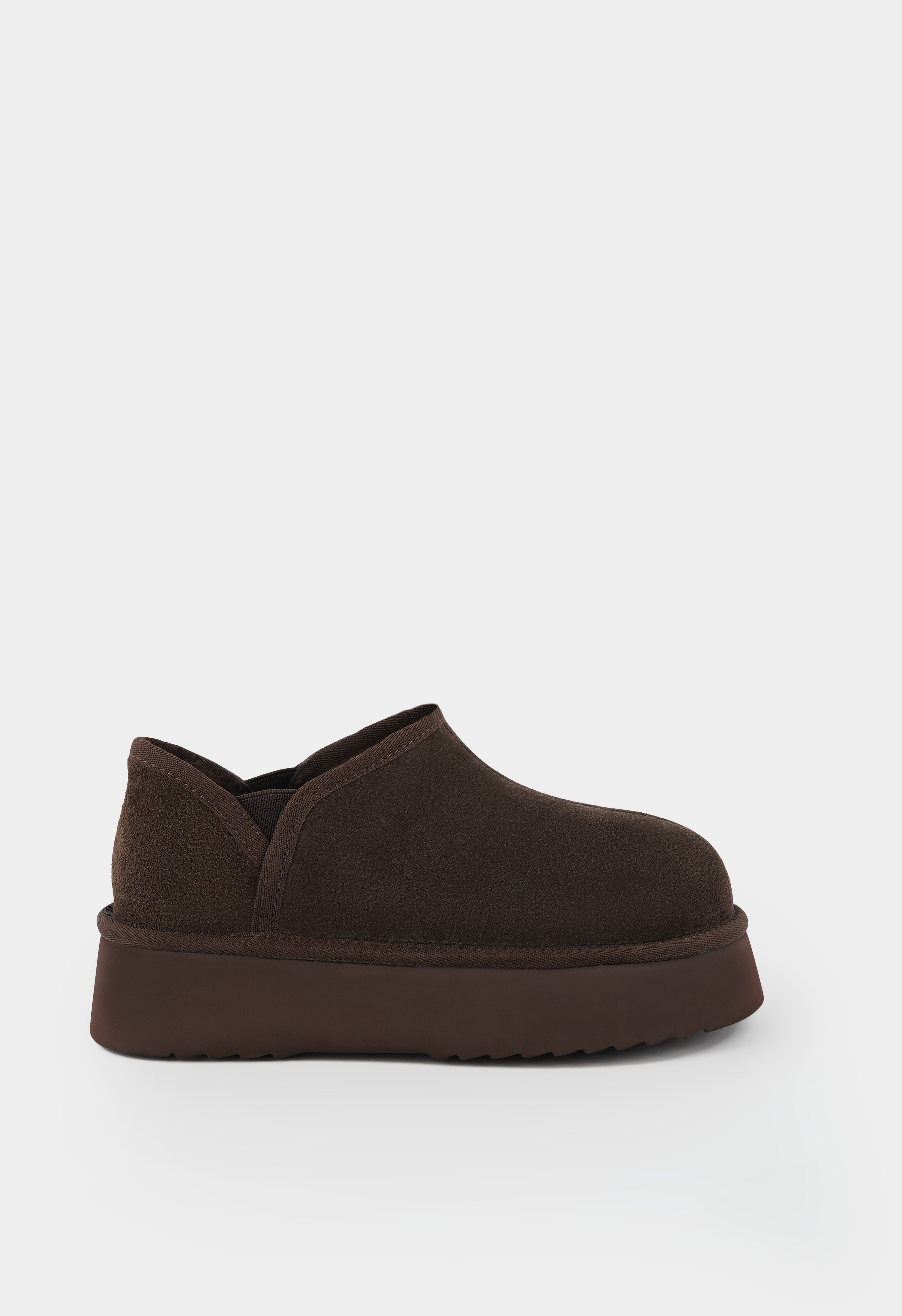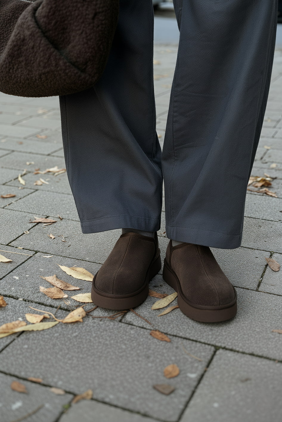Стильные полуботинки в коричневом цвете из благородной натуральной замши с выразительной платформой создают удачный образ для холодного сезона – в них сочетаются уютная функциональность и современная эстетика. Жесткая подошва обеспечивает надежную устойчивость на зимних улицах, а плотный натуральный мех внутри дарит исключительное тепло даже в сильные морозы. Элегантный округлый мысок и аккуратные втачные резинки формируют лаконичный силуэт и комфортную посадку, делая эту модель универсальным выбором для повседневной носки.