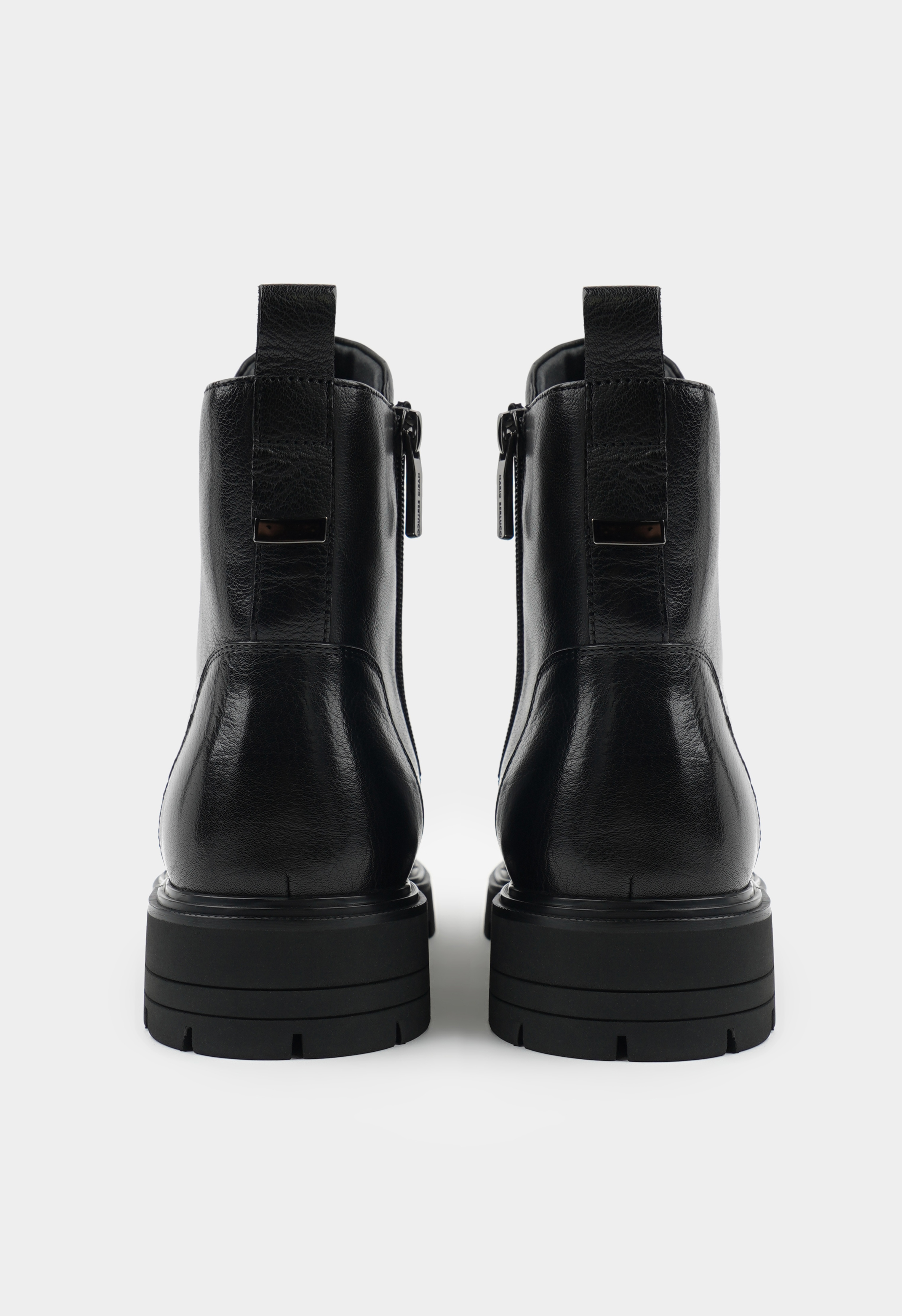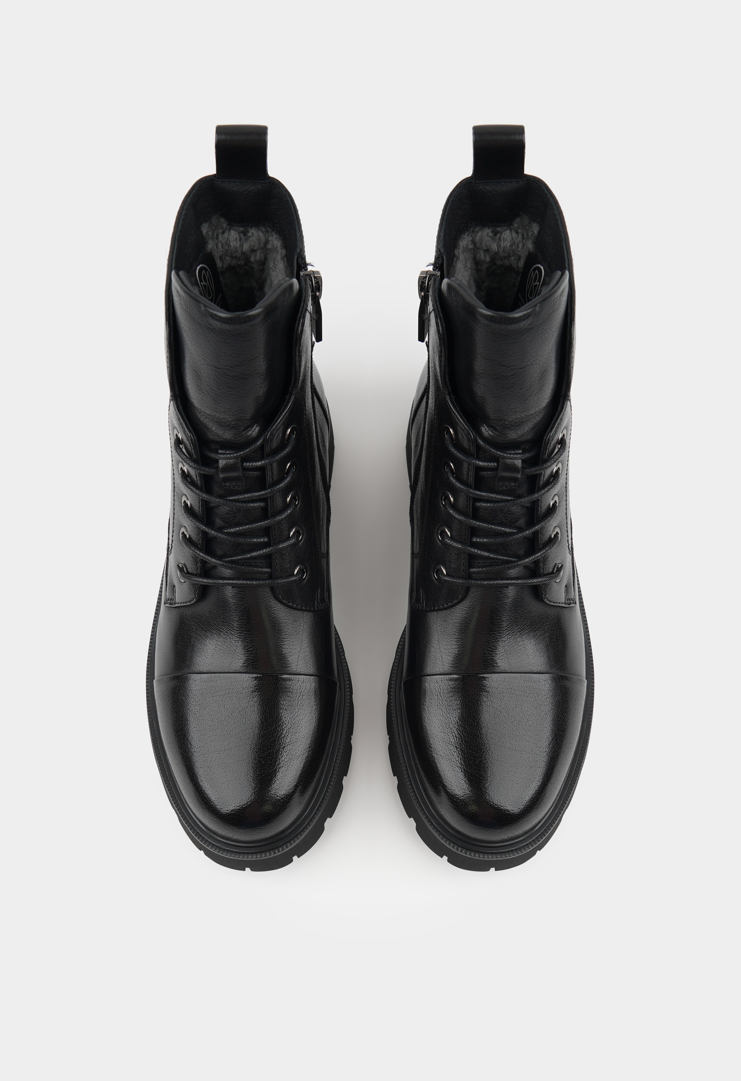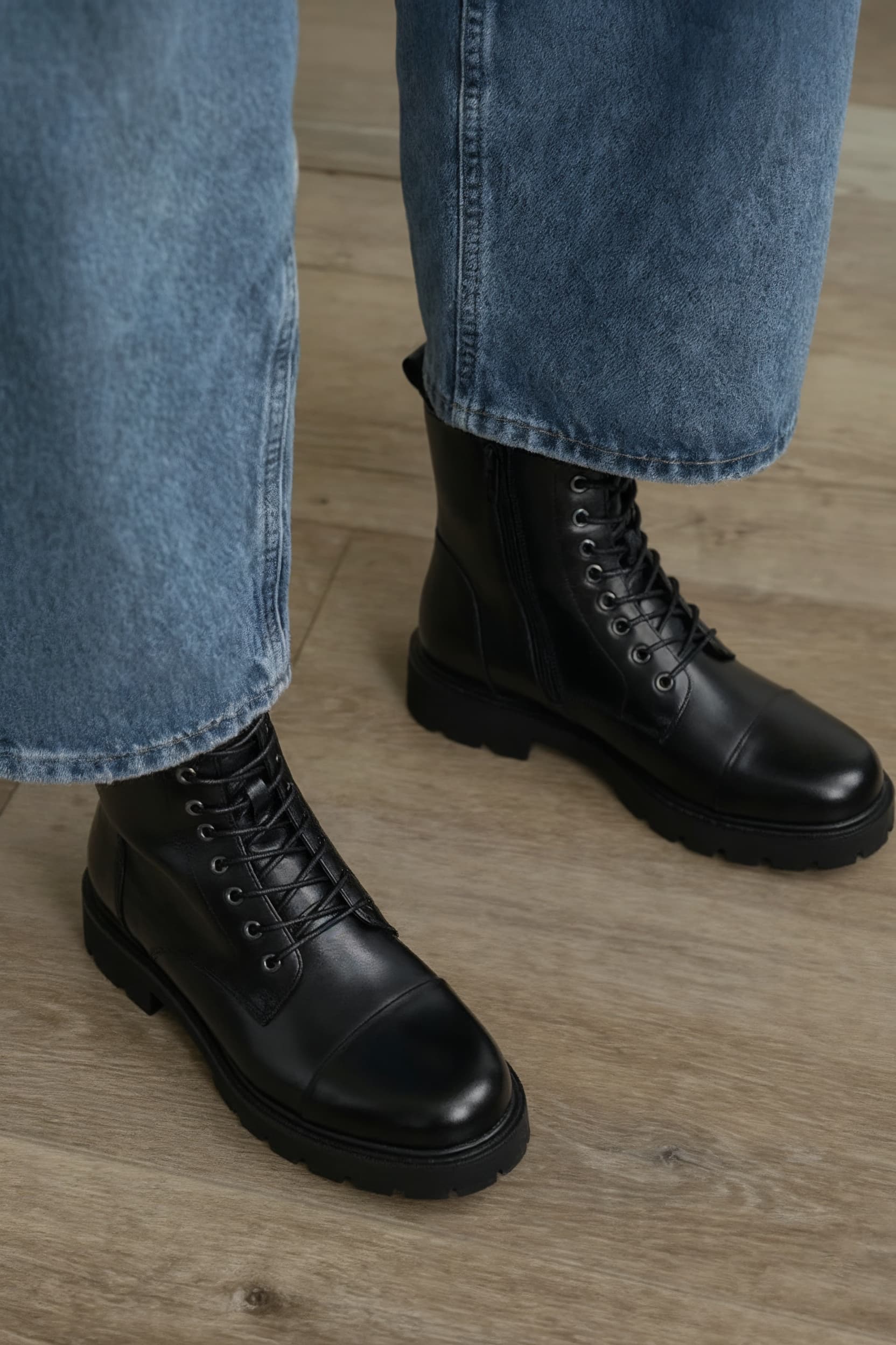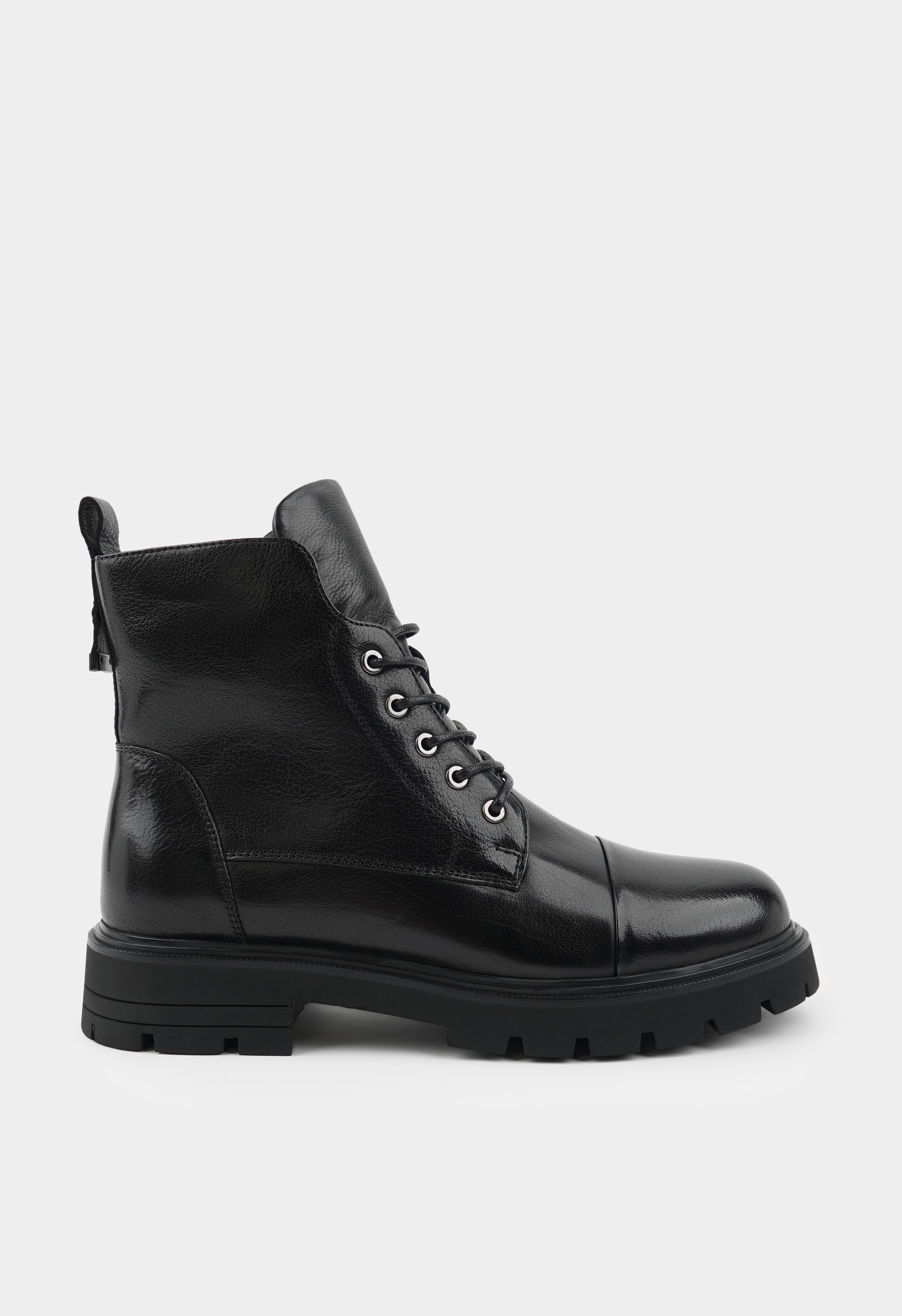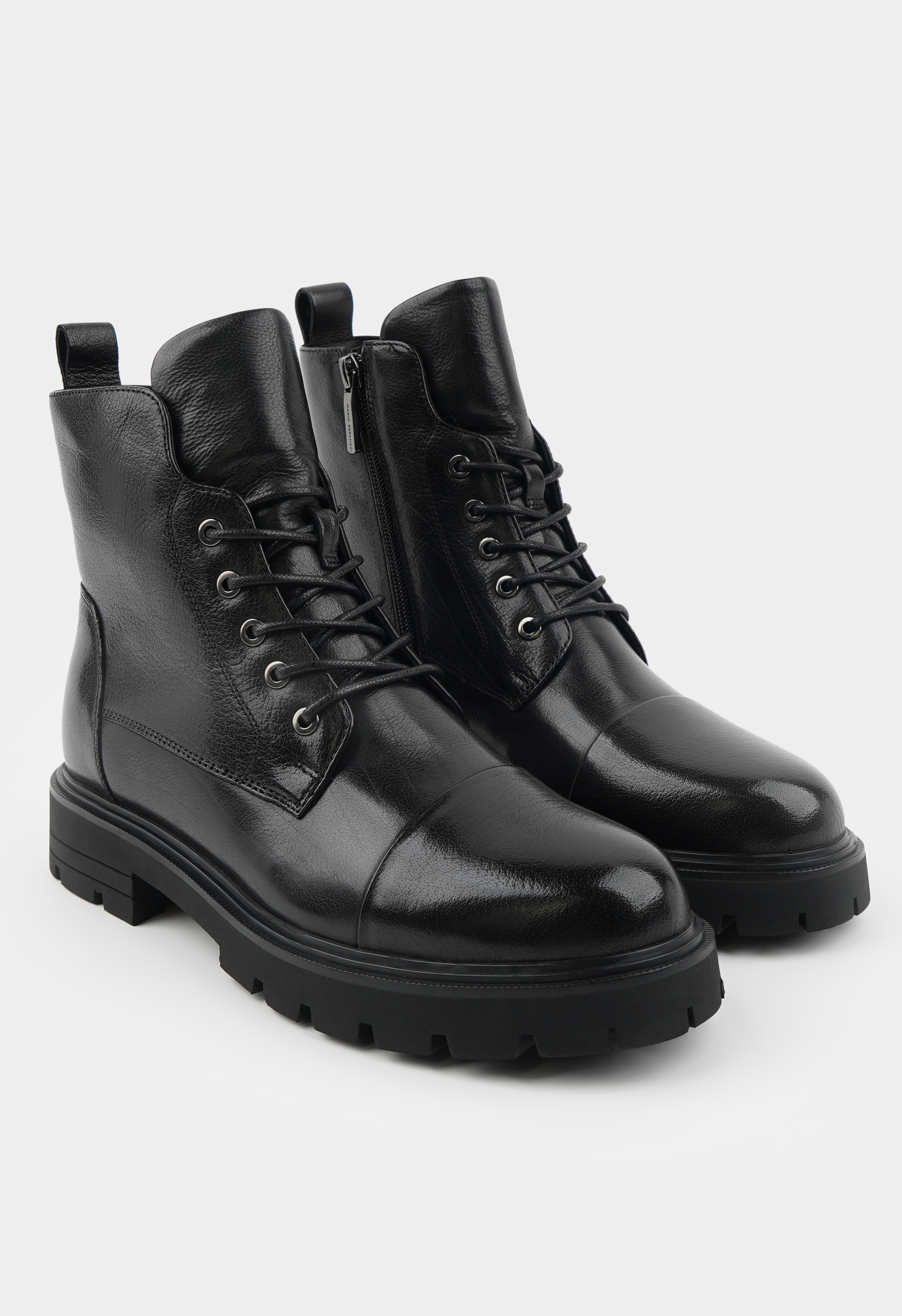 Актуальные ботинки из натуральной кожи с мягким мехом внутри – это теплая и стильная пара, которая станет незаменимой в холодный сезон. Гибкая подошва и удобный широкий каблук дарят комфорт при каждом шаге, в то время как округлый мысок обеспечивает естественное положение стопы. Практичная комбинация молнии и шнуровки делает обувь максимально удобной в носке, а металлическая фурнитура добавляет современного акцента. Глубокий черный цвет легко сочетается с любым гардеробом, подчеркивая универсальность модели.