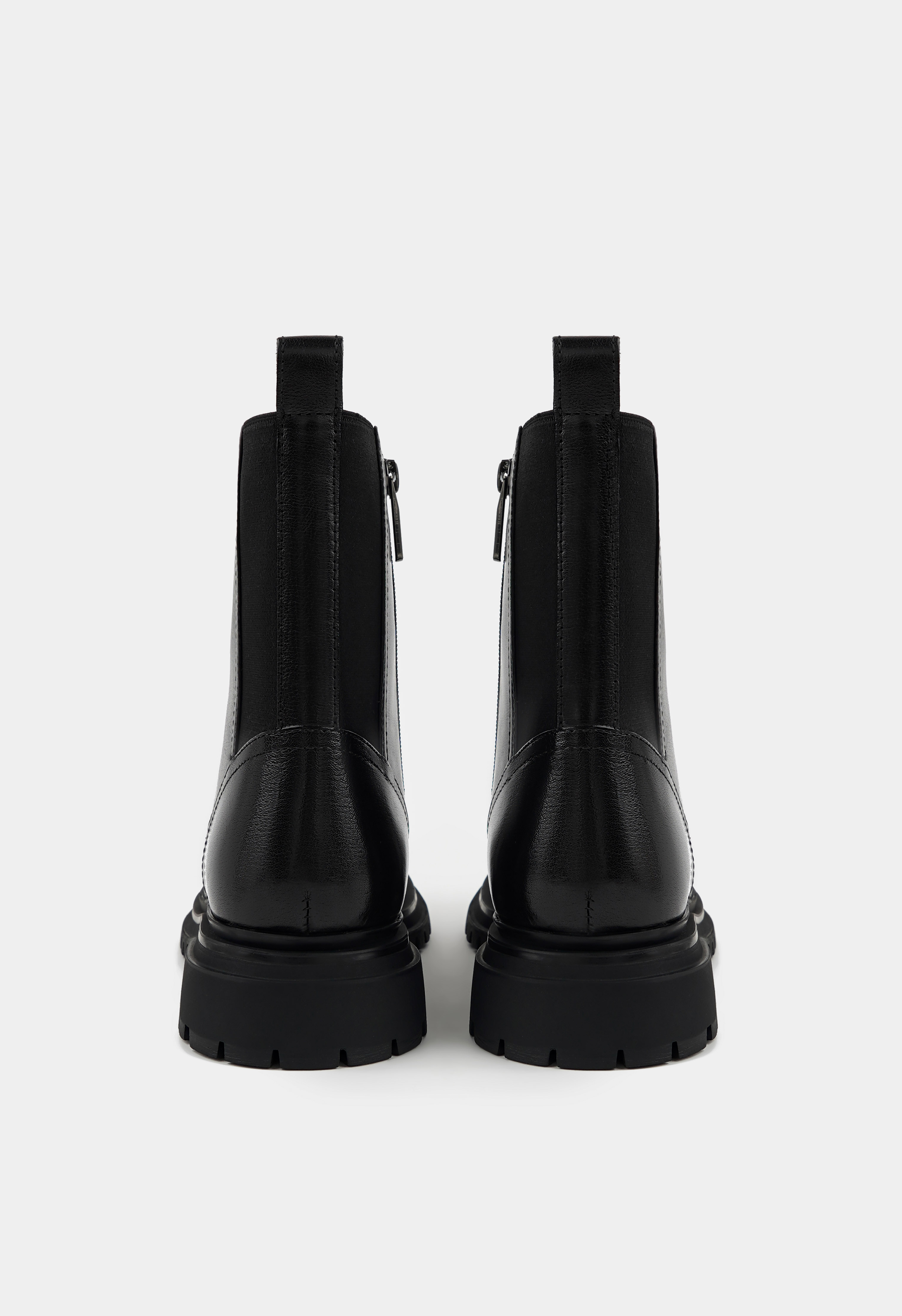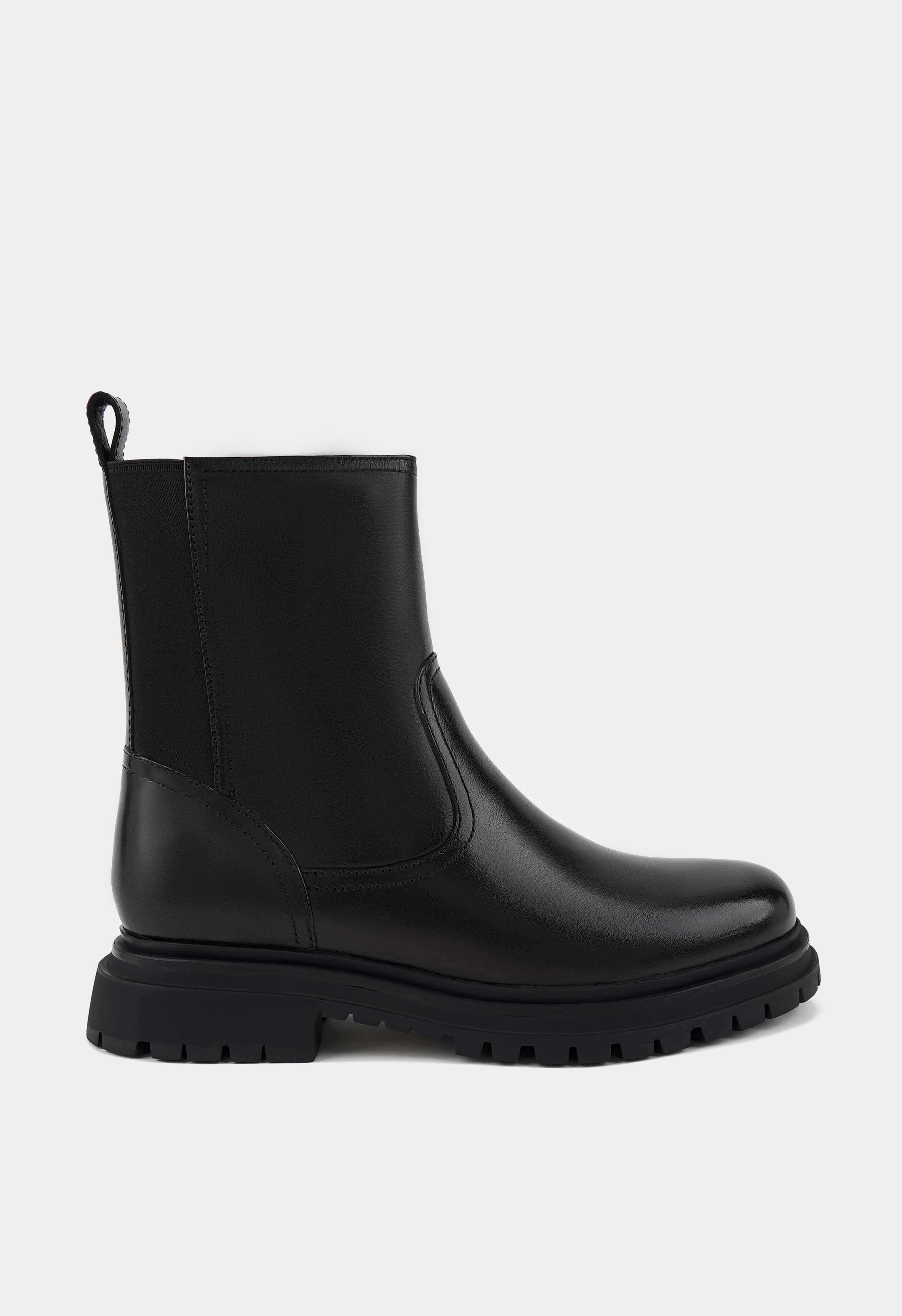 Повседневные ботинки в черном цвете – идеальный выбор для тех, кто ценит сочетание удобства и современного дизайна. Модель выполнена из гладкой натуральной кожи, которая отличается прочностью и благородным блеском, внутренняя отделка представлена мягким натуральным мехом, обеспечивающим комфорт и тепло в холодные дни. Гибкая подошва гарантирует легкость шага, округлый мысок создает естественную посадку, а металлическая фурнитура добавляет стильный акцент. Удобная молния облегчает надевание, в то время как широкий каблук придаёт устойчивость и уверенность в каждом движении.