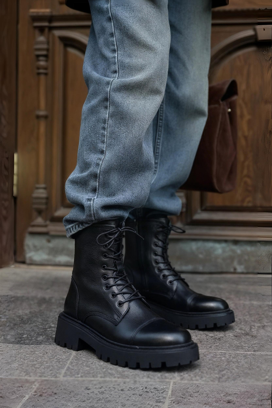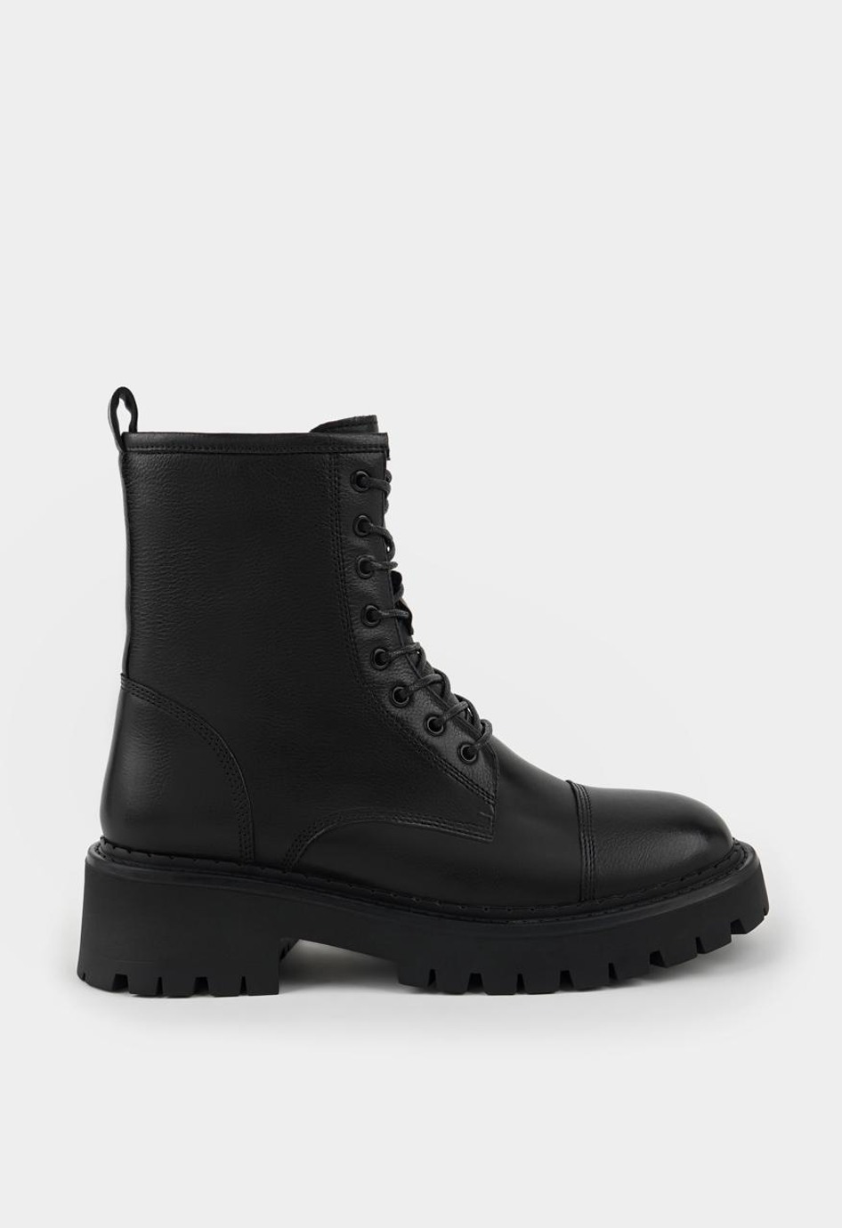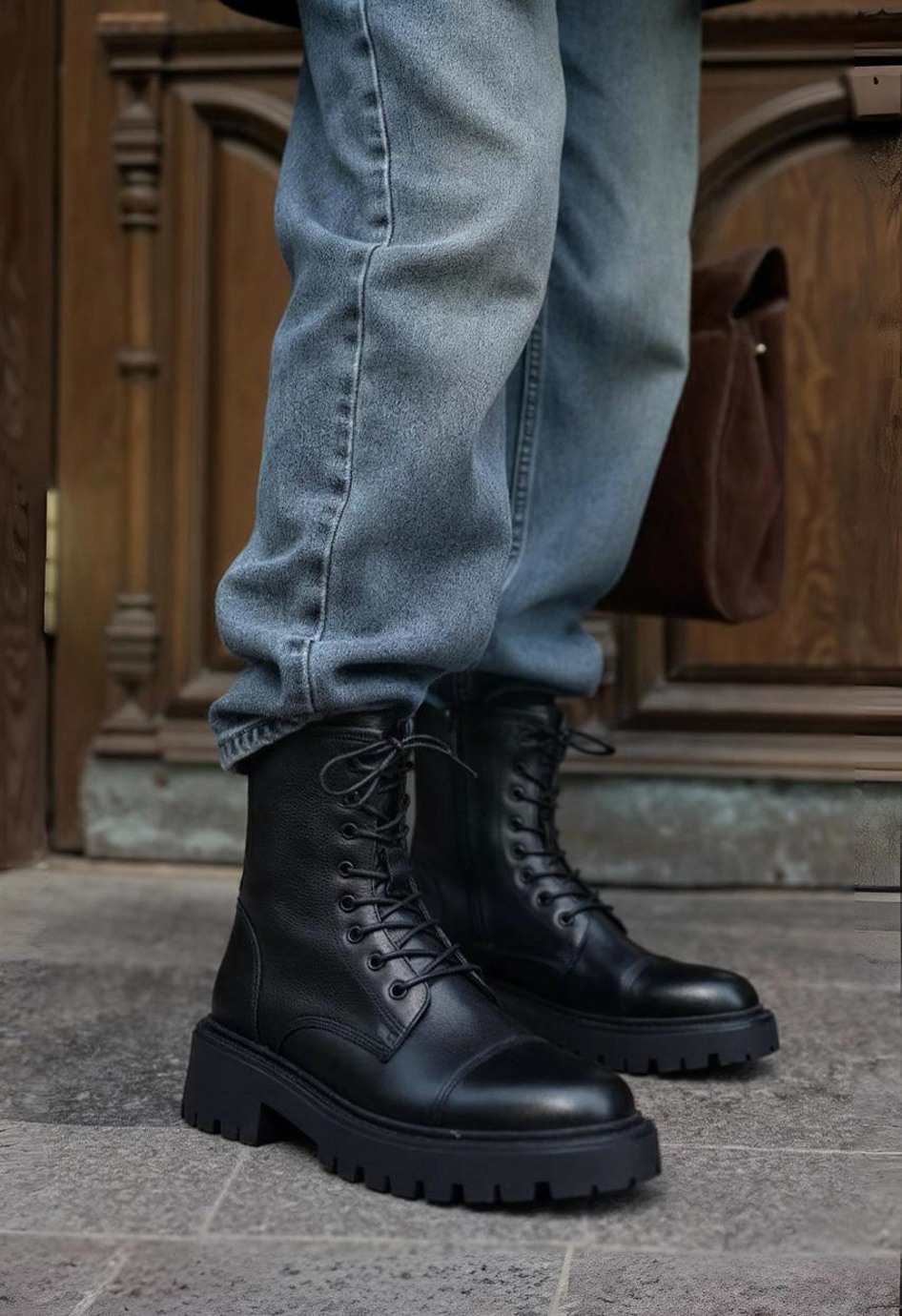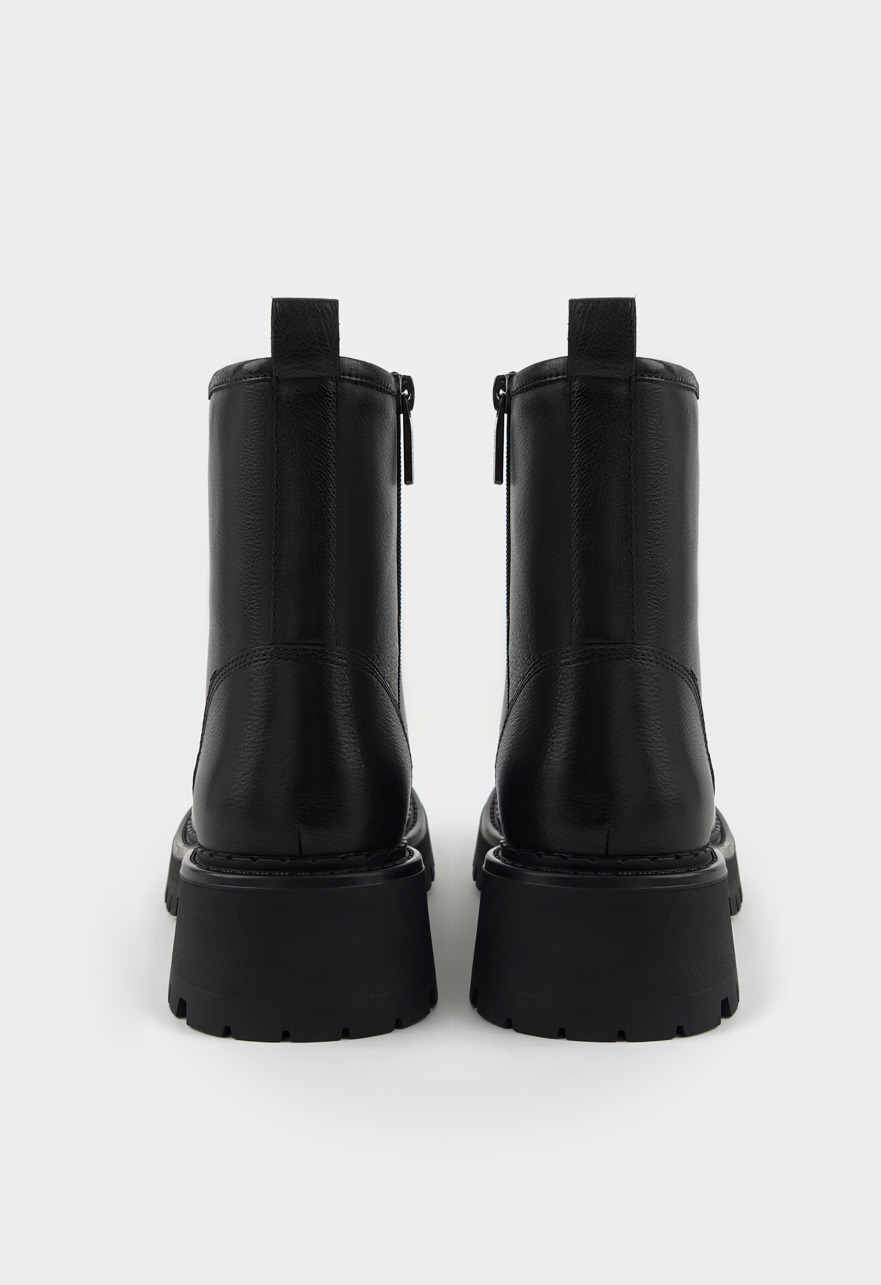 Актуальные ботинки черного цвета – универсальная модель для тех, кто ценит комфорт и уверенность в движении. Натуральная кожа придает обуви аккуратный внешний вид и защищает от влаги, а мягкий натуральный мех внутри сохраняет тепло и создает ощущение уюта даже в холодные дни. Широкий каблук обеспечивает устойчивость, гибкая подошва делает шаг легким и естественным, округлый мысок гарантирует удобную посадку. Металлическая фурнитура придает модели выразительность, в то время как сочетание шнуровки и молнии делает обувь максимально практичной и функциональной для ежедневной носки.