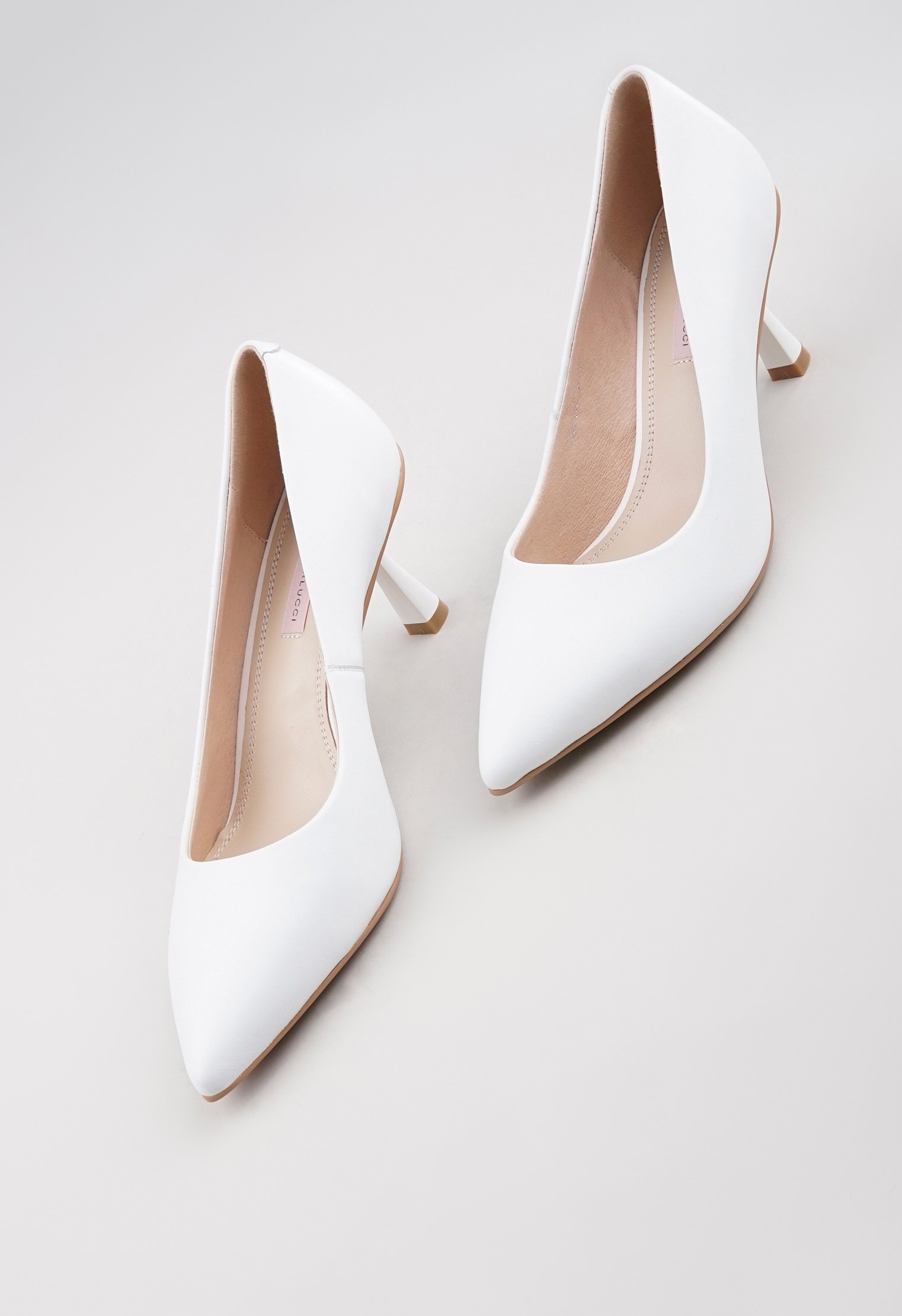 Обратите внимание: данная модель идёт в размер и отлично подходит для ног со средней полнотой стопы. Советуем проконсультироваться с менеджером по выбору наиболее подходящего Вам размера. Стильные туфли из новой коллекции выполнены из натуральной кожи и представлены в белом цвете. Изделие дополнено акцентной подошвой и устойчивым каблуком. Мягкая кожаная подкладка обеспечивает особенно комфортную посадку, анатомическая стелька предохраняет от усталости в конце дня. Однотонная модель превосходно впишется в модный женственный образ.