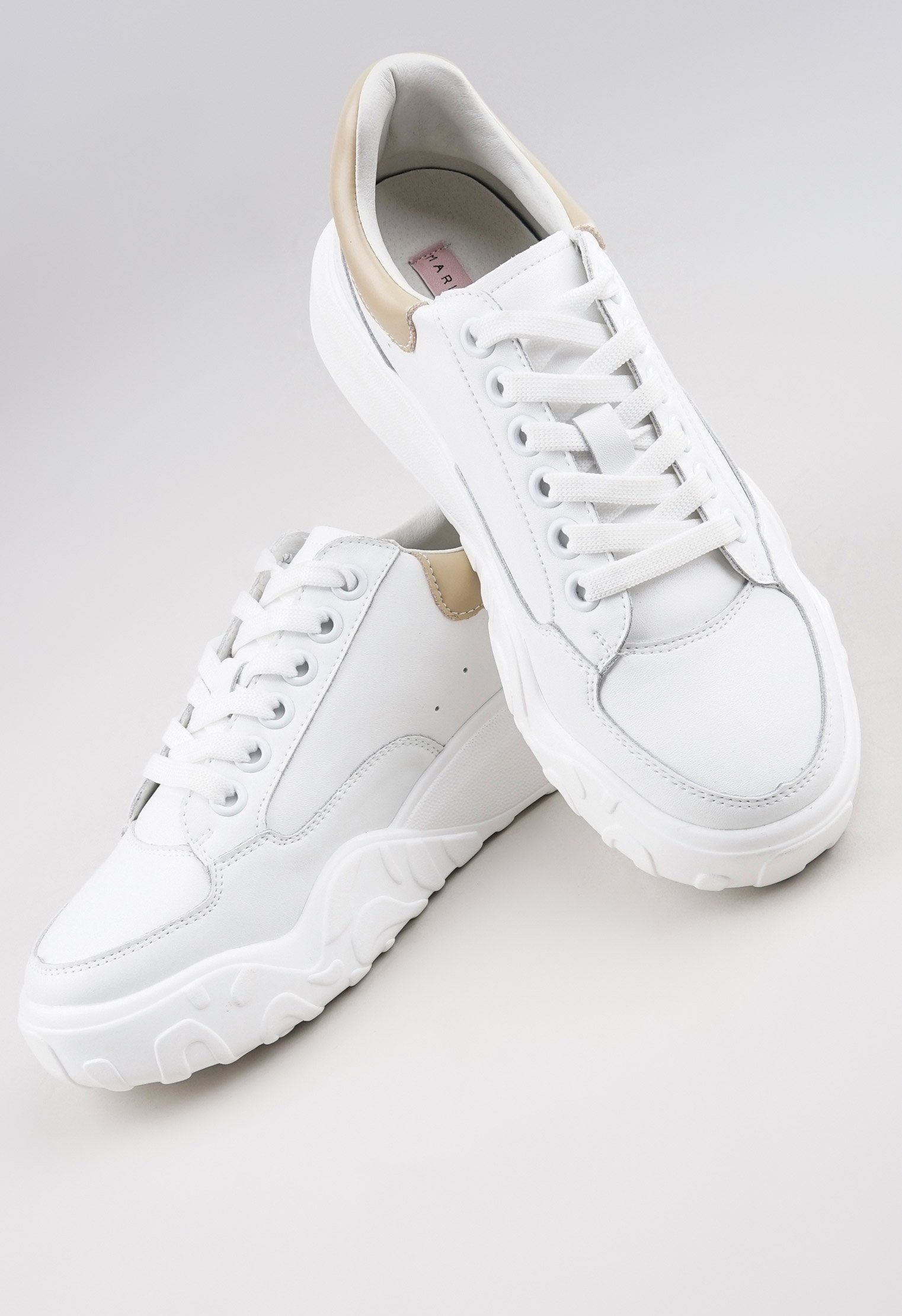 Обратите внимание: данная модель идёт в размер и отлично подходит для ног со средней полнотой стопы. Советуем проконсультироваться с менеджером по выбору наиболее подходящего Вам размера. Стильные кроссовки из лимитированной коллекции выполнены из натуральной мягкой кожи и дополнены эффектной платформой. Шнуровка обеспечивает особенно комфортную посадку, съёмная анатомическая стелька гарантирует комфорт в течение дня. Актуальная модель станет удачным дополнением к современному гардеробу и поможет оставаться в тренде не один сезон.