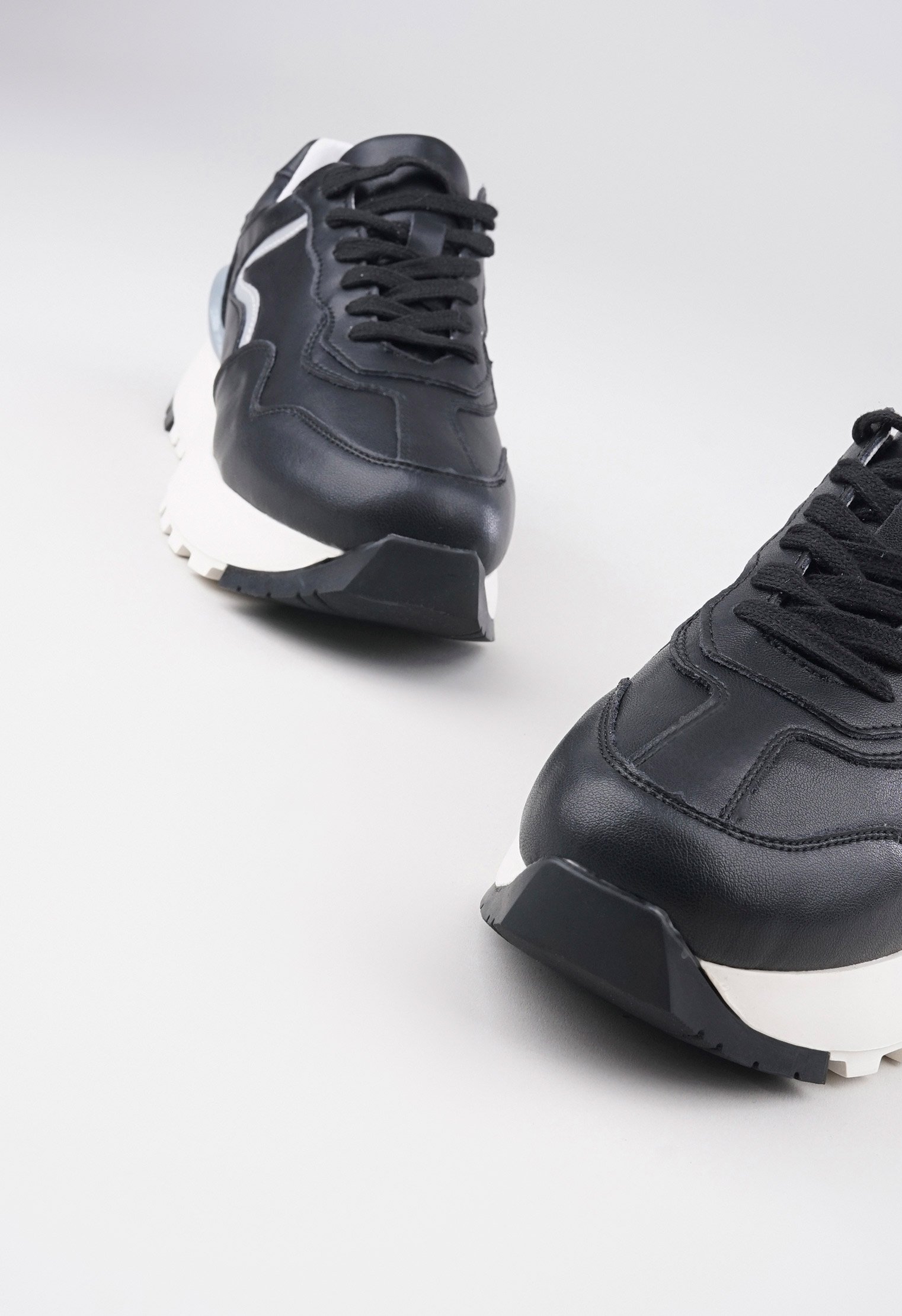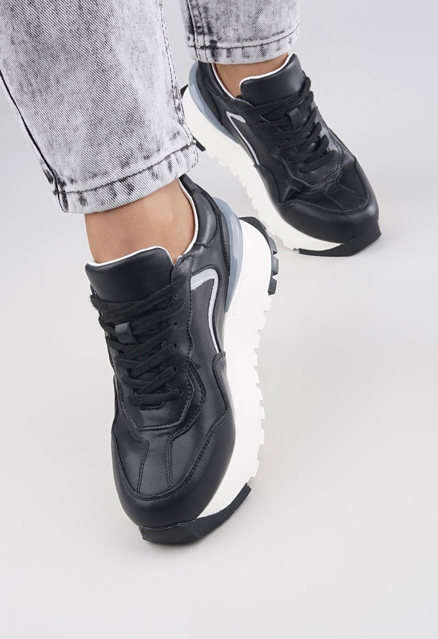 Обратите внимание: данная модель является маломеркой и отлично подходит для ног со средней и широкой полнотой стопы. Советуем проконсультироваться с менеджером по выбору наиболее подходящего Вам размера. Стильные кроссовки на платформе выполнены из натуральной мягкой кожи чёрного цвета и декорированы оригинальными вставками. Изделие дополнено удобной шнуровкой и кожаной подкладкой, которая идеально облегает стопу. Эффектная модель из новой коллекции превосходно сочетается с элементами базового гардероба и поможет оставаться в тренде не один сезон.