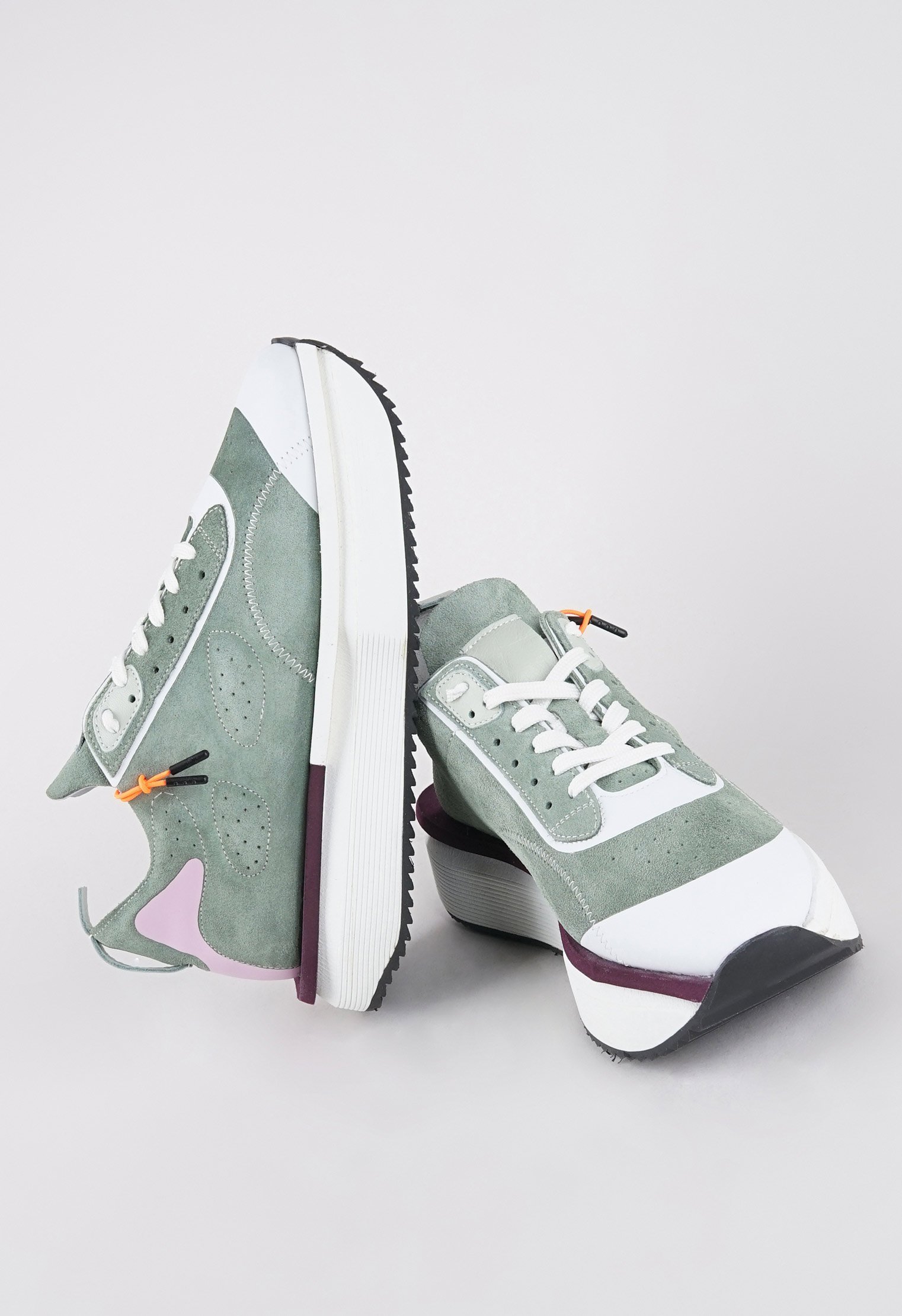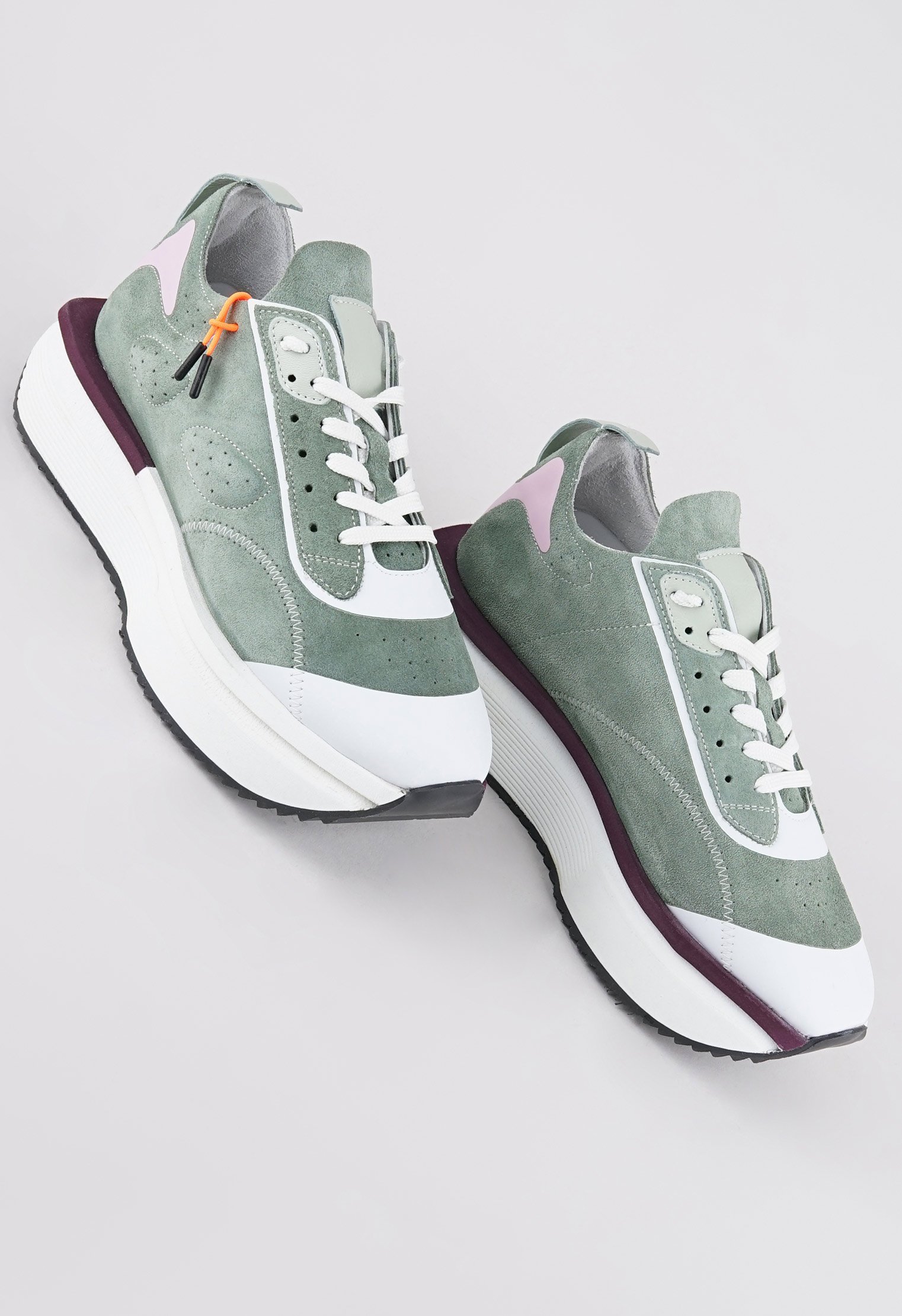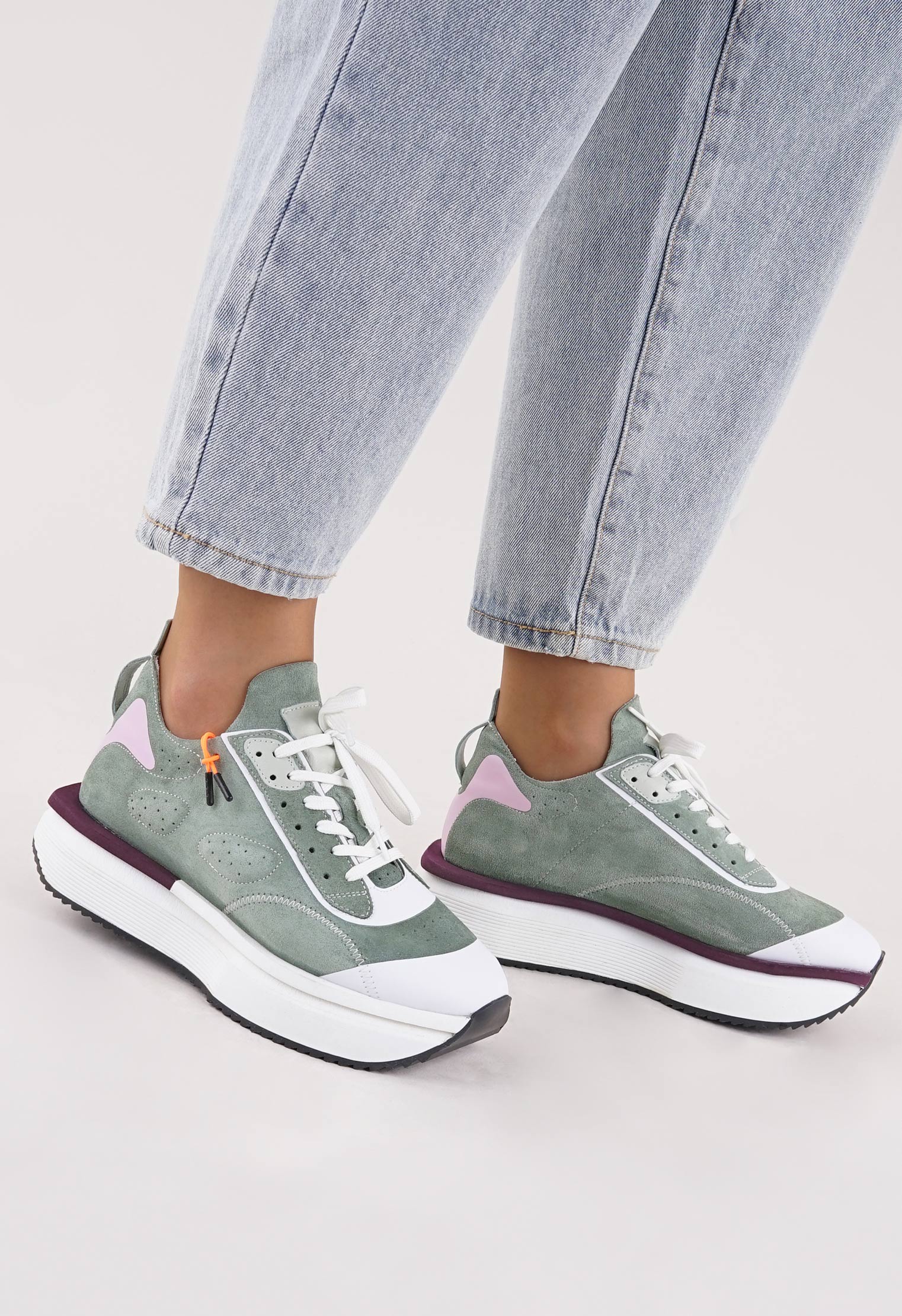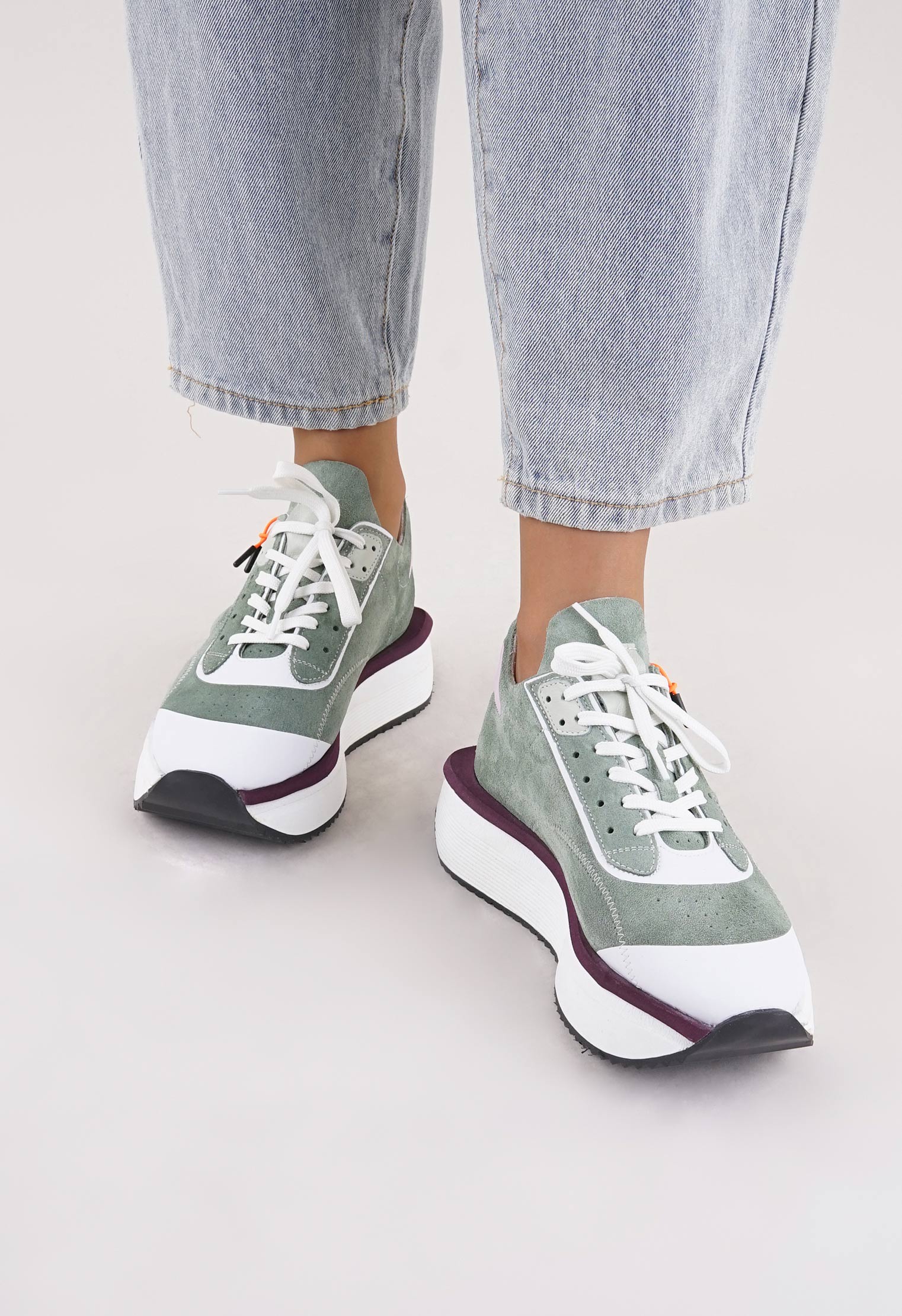 Обратите внимание: данная модель идёт в размер и отлично подходит для ног с любым подъемом и полнотой стопы. Стильные кроссовки на платформе выполнены из натуральной замши и дополнены кожаными вставками. Шнуровка обеспечивает особенно комфортную посадку и позволяет регулировать полноту, съёмная анатомическая стелька предохраняет от усталости в конце дня. Современная модель станет украшением модного гардероба и поможет оставаться в центре внимания.