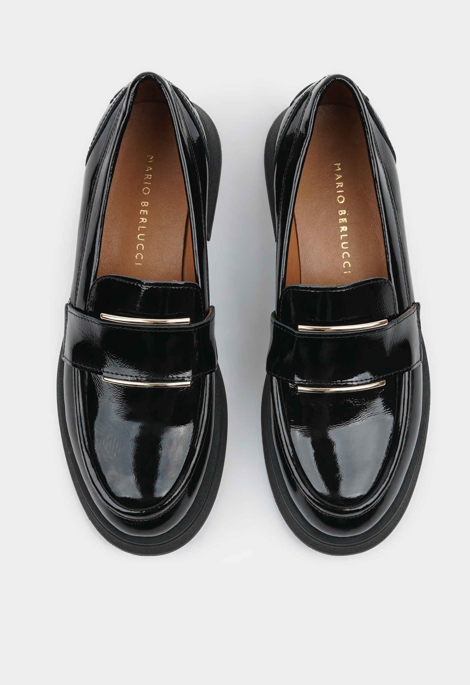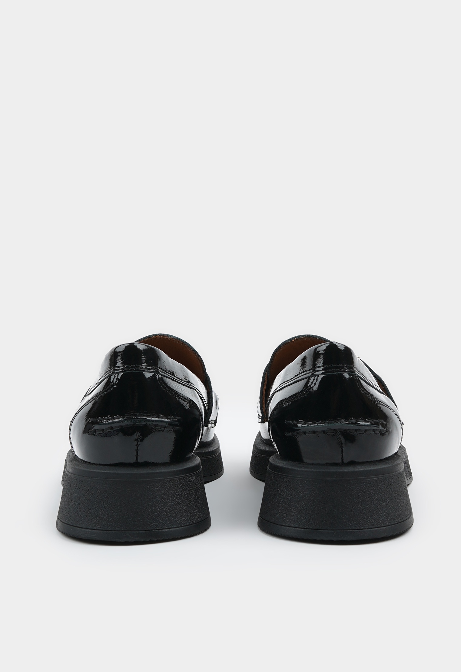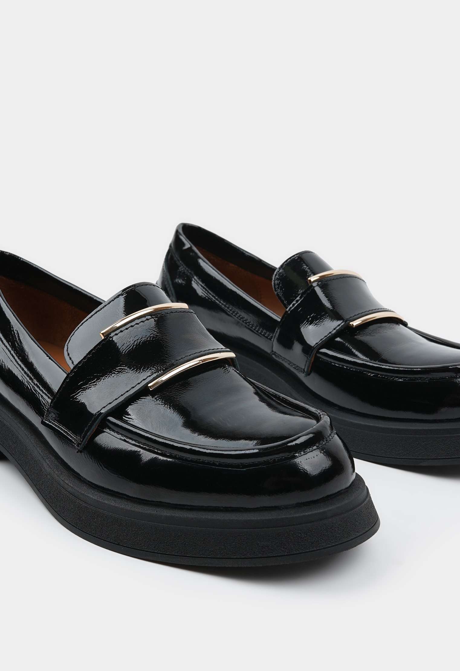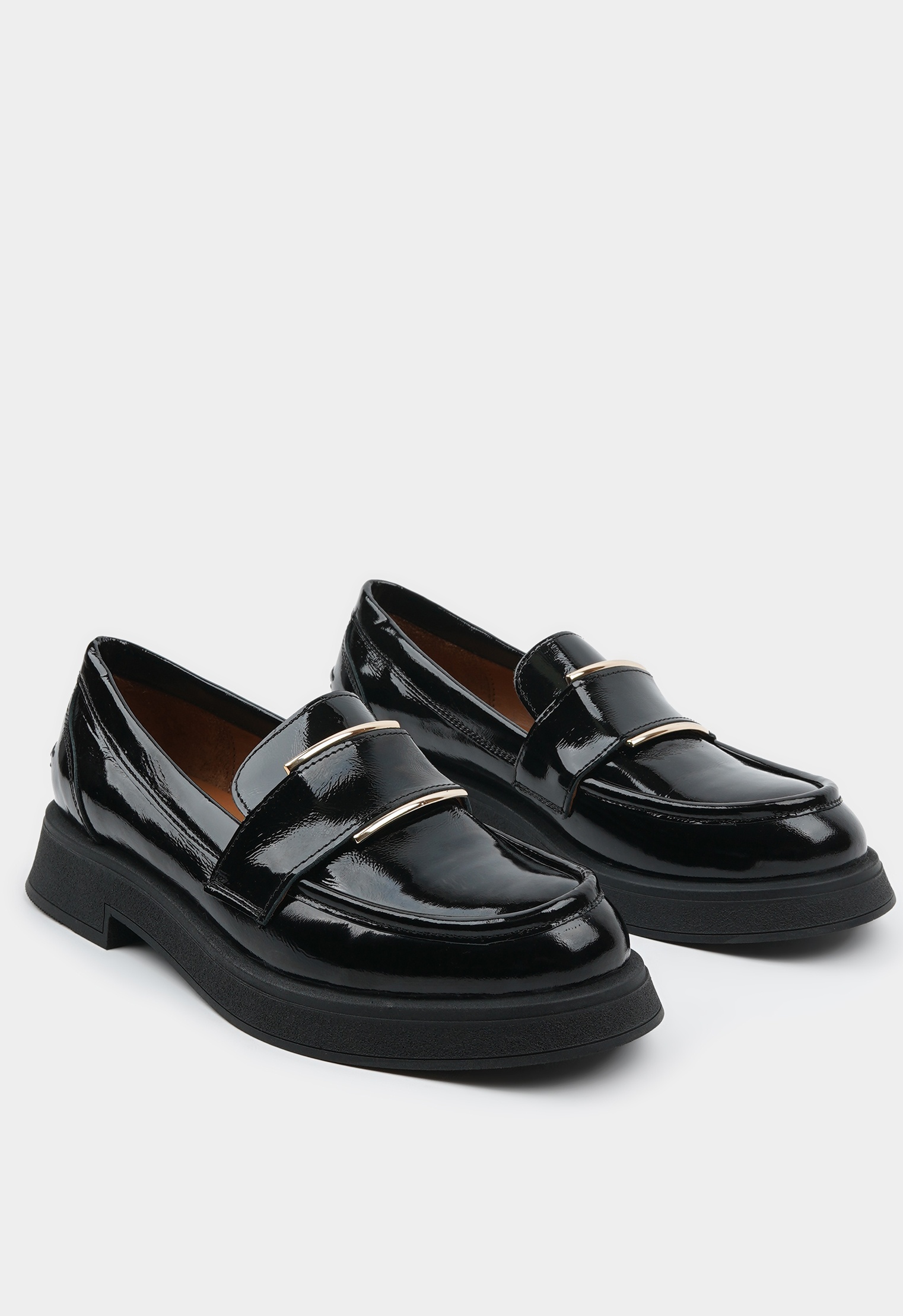 Лаконичные лоферы из новой коллекции выполнены из натуральной лакированной кожи и представлены в черном цвете. Традиционный силуэт с округлым мысом дополнен платформой на широком каблуке. Специальная анатомическая стелька обеспечивает комфорт в течение дня. Элегантная модель удачно впишется в стильный образ и останется актуальной не один сезон. Чтобы выбрать наиболее комфортную модель, соответствующую вашим анатомическим особенностям, следует учесть полноту модели и характеристики стопы. Более подробную информацию по выбору размера и об особенностях модели предоставит наш менеджер.