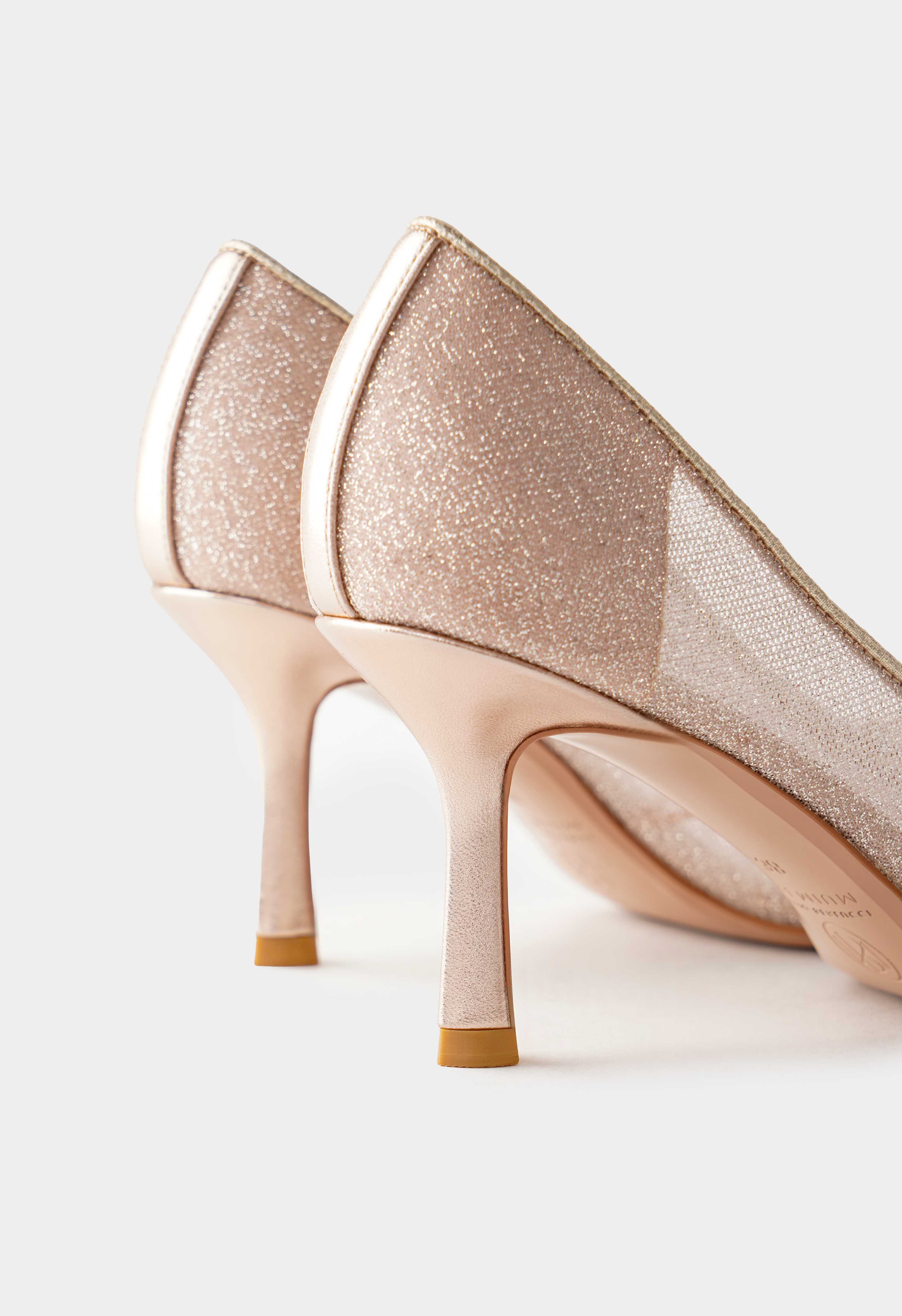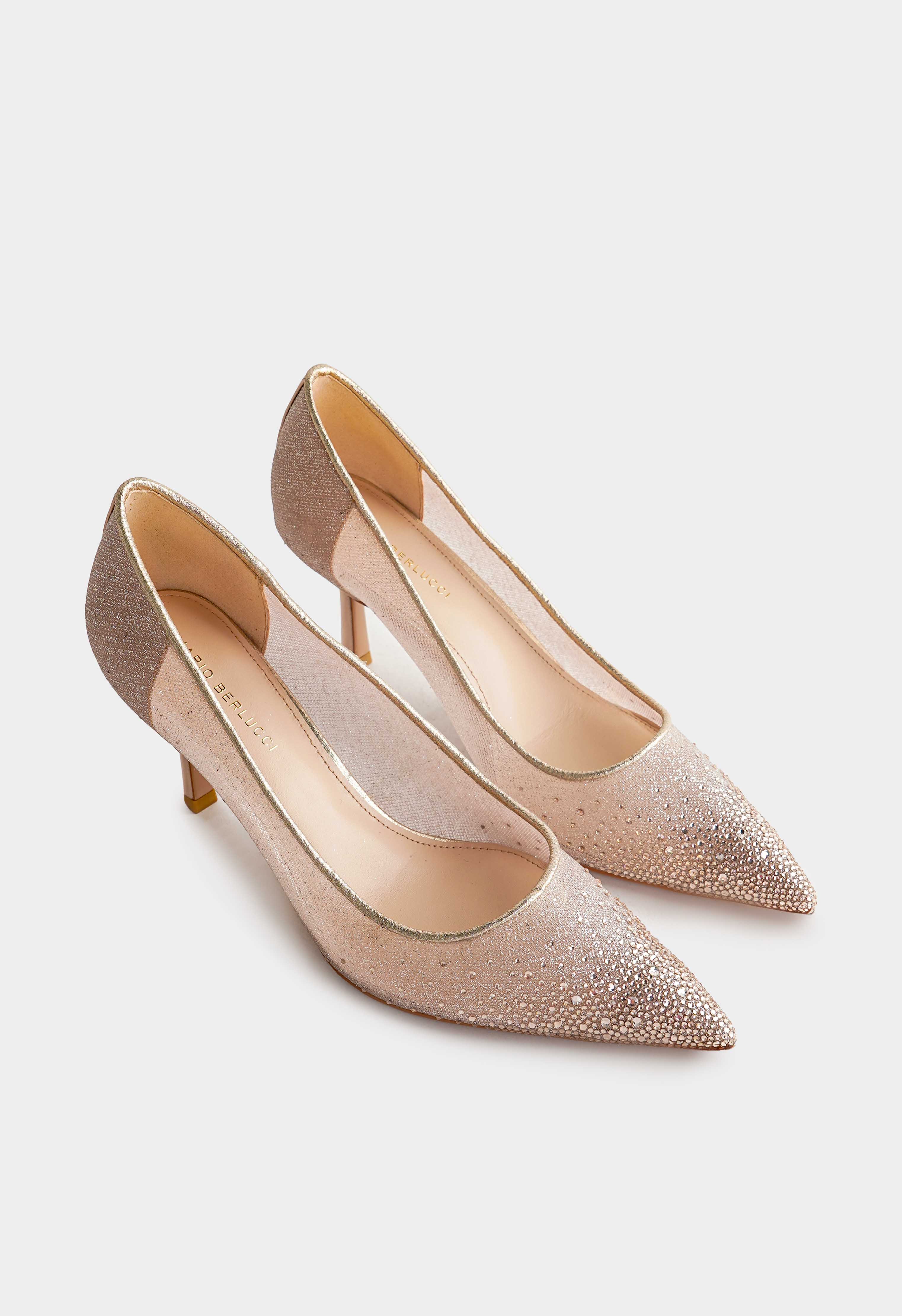 Эффектные золотые туфли – идеальный выбор для тех, кто любит привлекать внимание. Сочетание натуральной кожи и текстиля со сверкающими стразами создает роскошный акцент и придает образу особое сияние, а заострённый мысок подчеркивает элегантный силуэт. Удобный клиновидный каблук обеспечивает устойчивость и комфорт, в то время как гибкая подошва дарит легкость в каждом шаге.