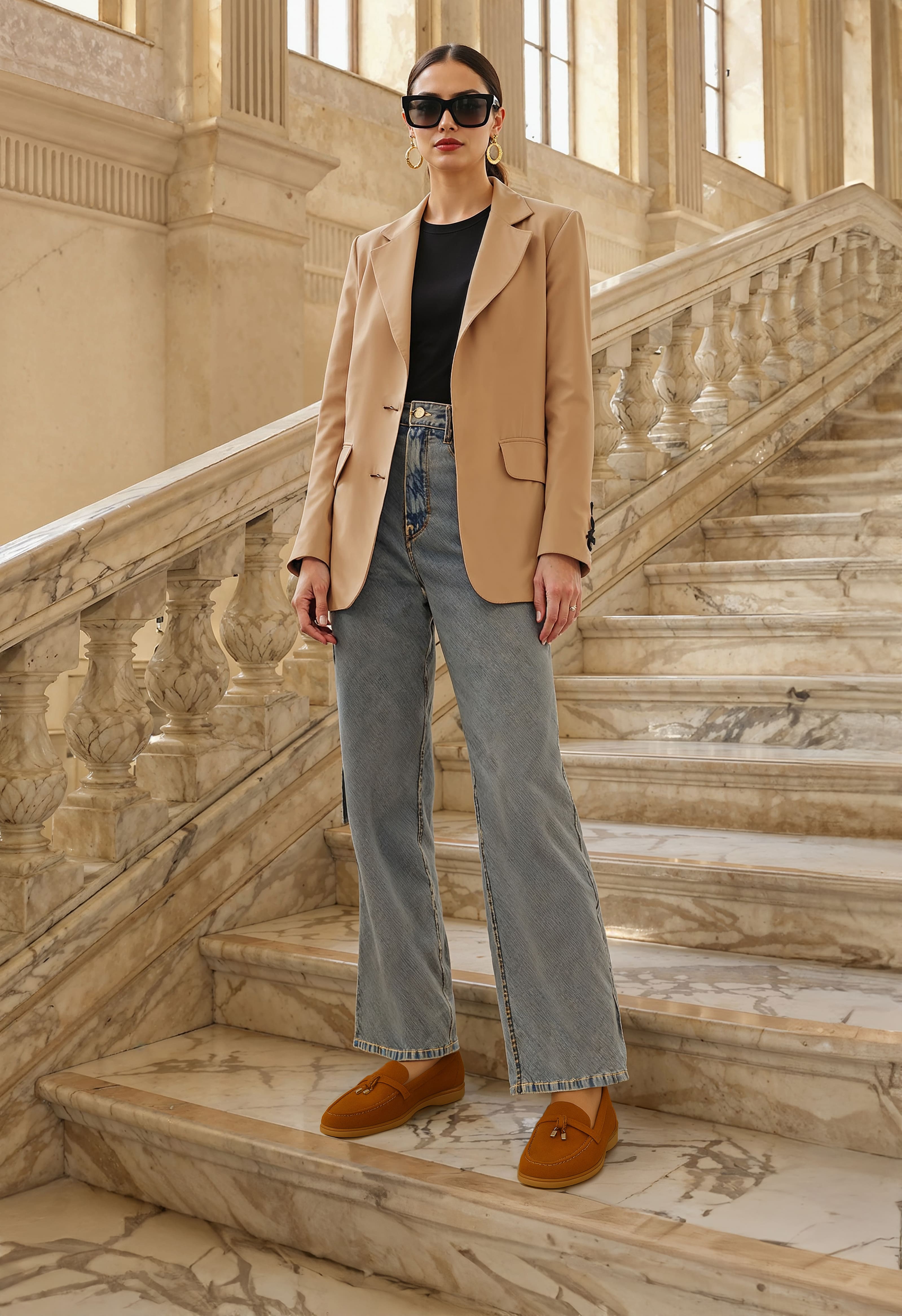 Рыжие лоферы с гибкой подошвой и округлым мысом – идеальный вариант для удобства и стиля. Серебряная фурнитура добавляет утончённый акцент, а платформа придаёт дополнительную устойчивость и комфорт при ходьбе. Эти лоферы отлично подходят для повседневной носки, сочетая стиль и практичность в каждом шаге.