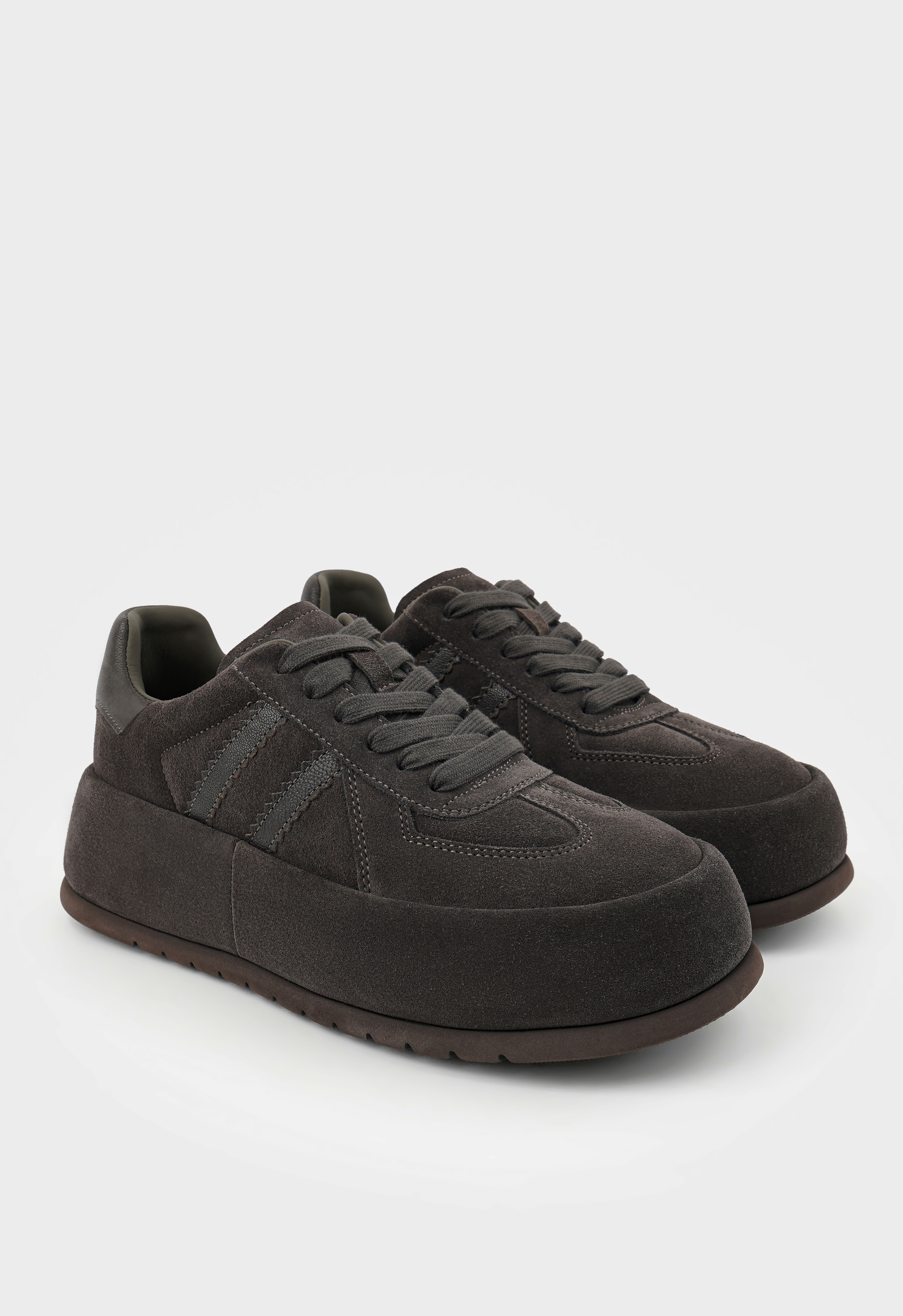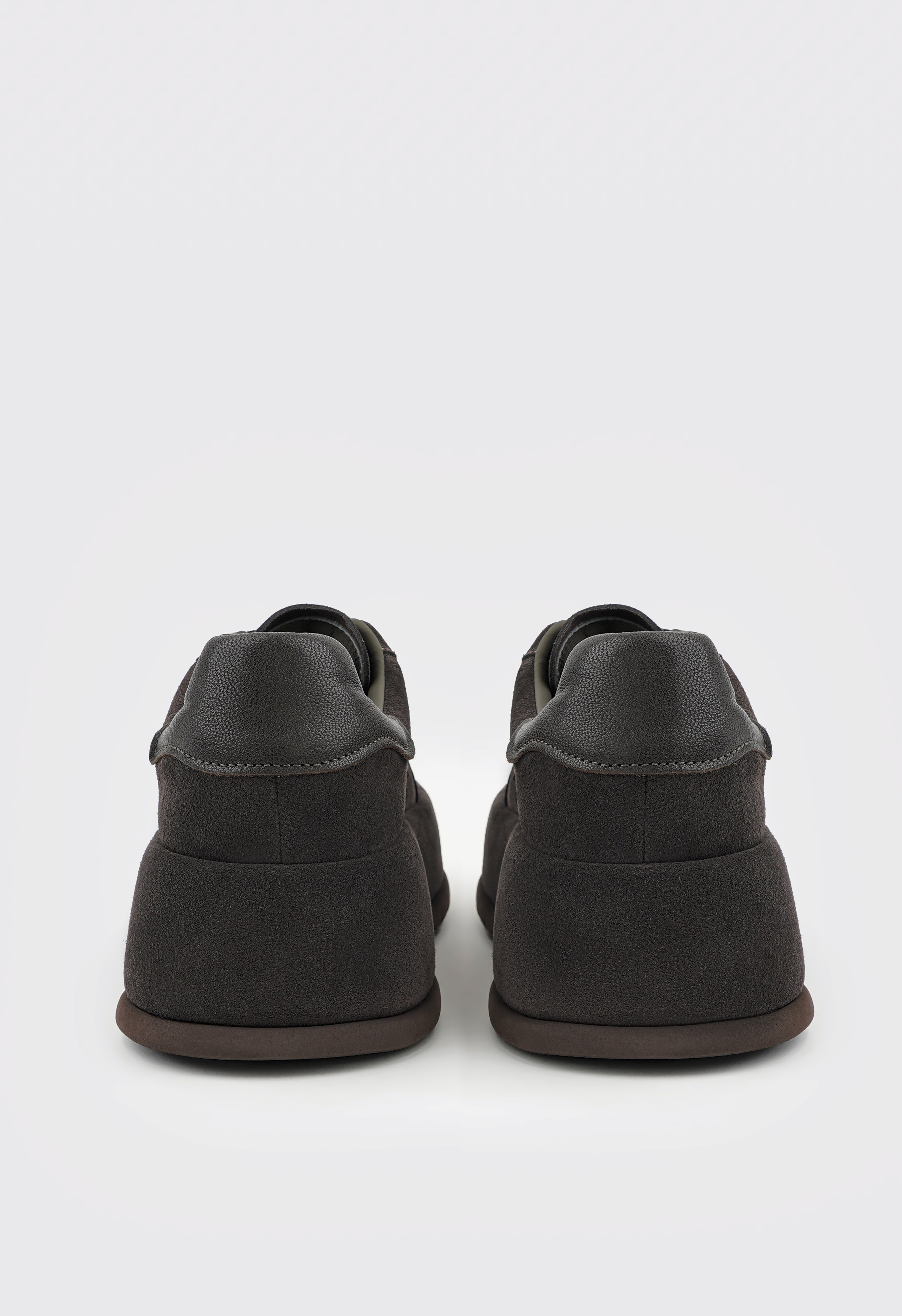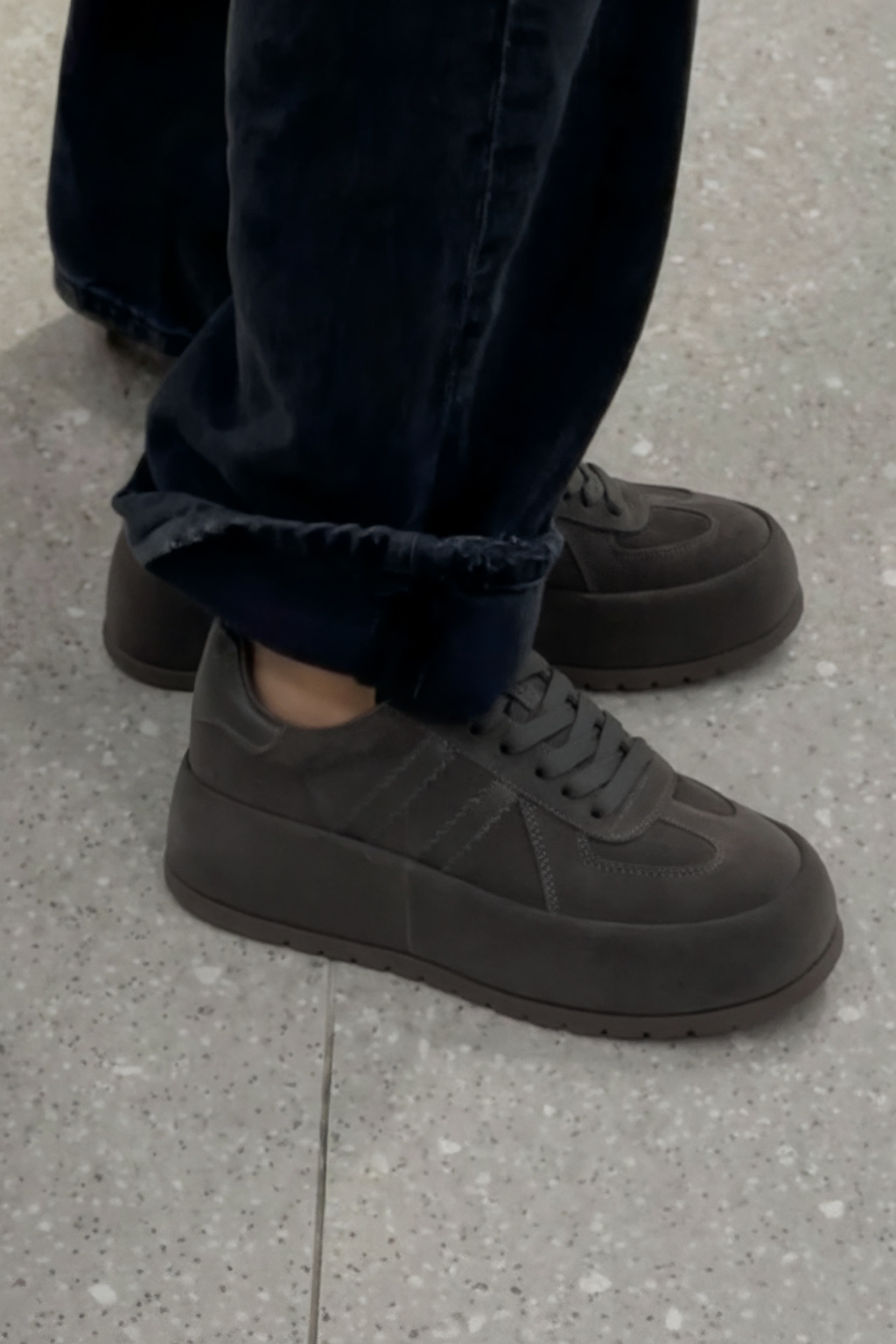Кеды из натуральной замши в насыщенном сером цвете – базовая пара на каждый день и под любой сезон. Жесткая подошва и комфортная платформа добавляют устойчивости и визуально вытягивают силуэт, а шнуровка позволяет легко подогнать посадку под ногу. Округлый мысок не стесняет движения, обеспечивая комфорт на весь день. Эти кеды органично впишутся в гардероб: от прогулок до рабочих будней.