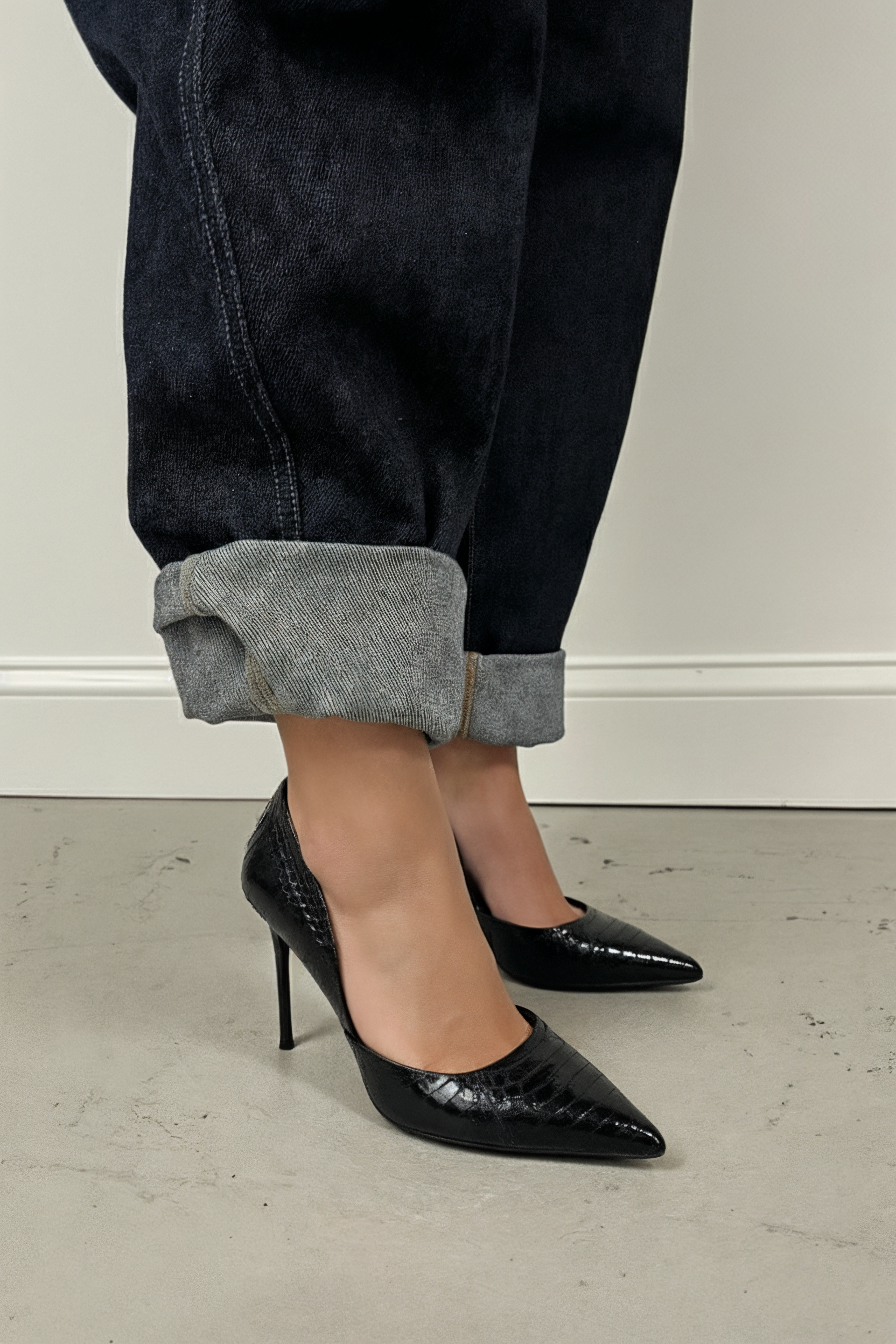 Насыщенные черные туфли из натуральной лаковой кожи – это идеальное сочетание элегантности и комфорта. Их заостренный мысок и изящная шпилька придают образу утонченность и женственность, а гибкая подошва делает каждый шаг легким и уверенным. Богатый черный оттенок добавляет яркий акцент к любому наряду, делая образ стильным и современным. Эти туфли удобно носить весь день – будь то деловая встреча, прогулка по городу или вечер с друзьями – они подчеркнут вашу индивидуальность и вкус в каждой ситуации.