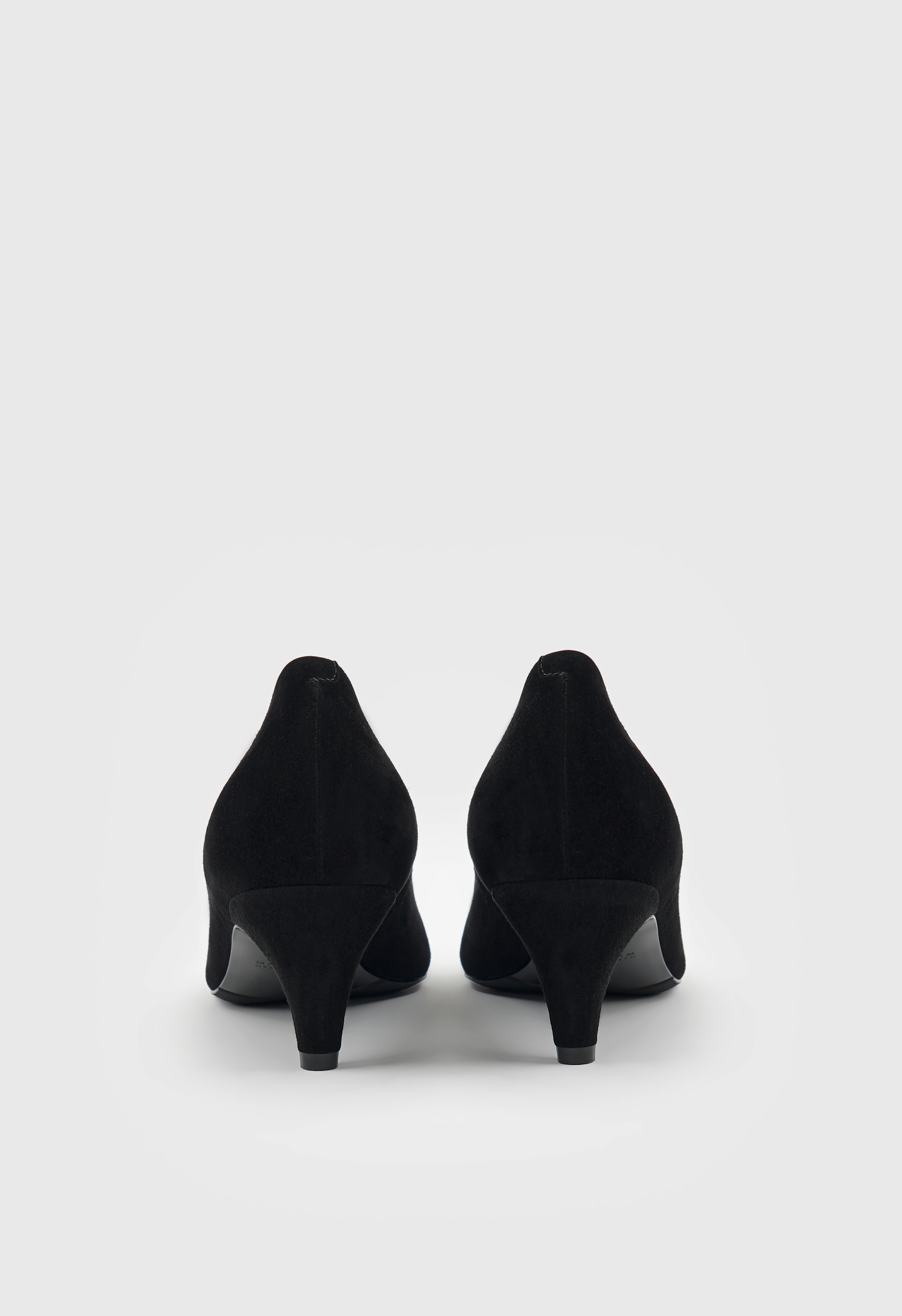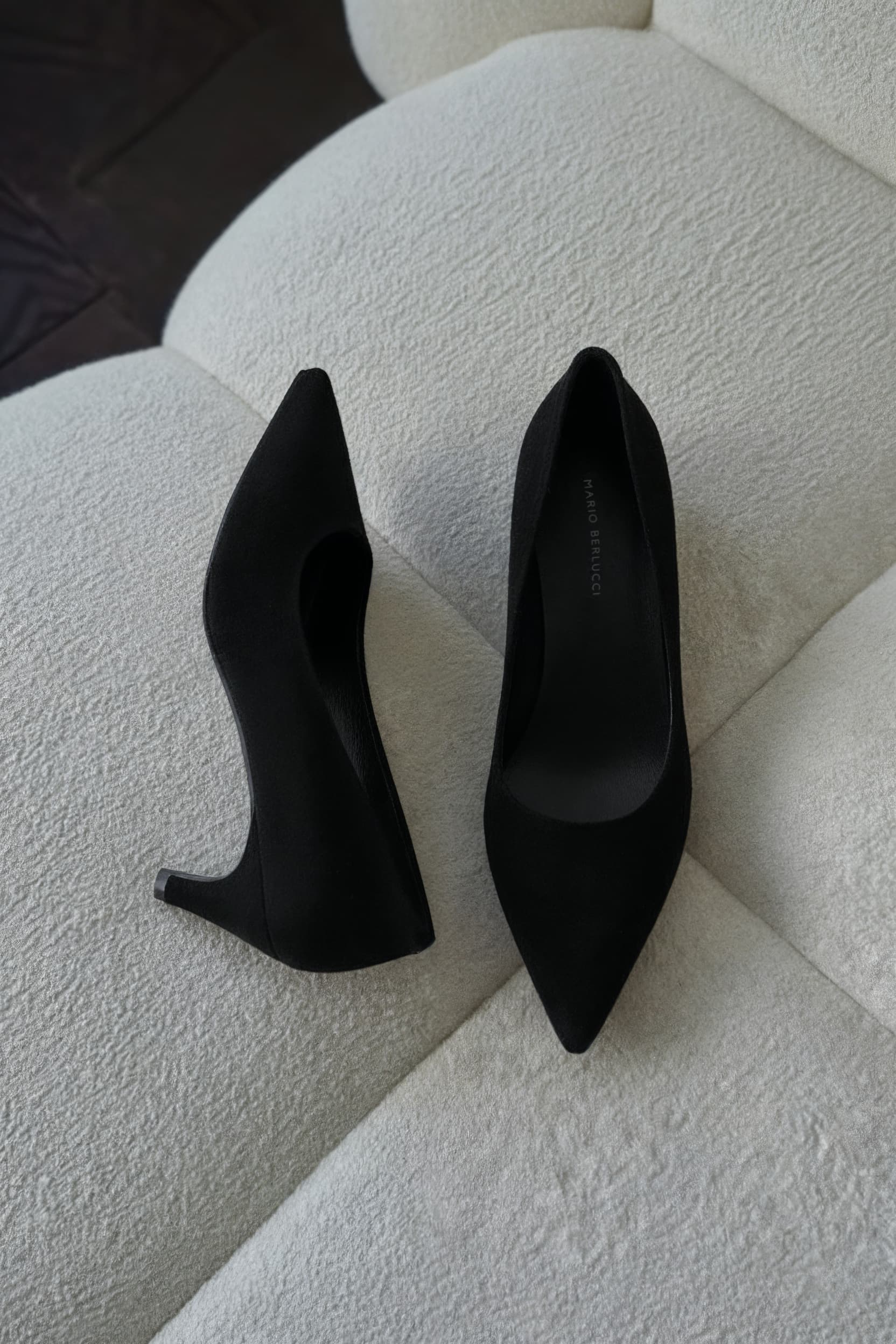 Черные туфли из натуральной замши – это гармония стиля и удобства, созданная для современных женщин. Заостренный мысок добавляет изящества и визуально вытягивает силуэт, а оригинальный каблук в форме запятой подчеркивает актуальность и современность дизайна. Благодаря гибкой подошве в них комфортно целый день – от офиса до вечерних встреч. Эта модель легко станет акцентом любого образа, придавая ему элегантность и уверенность в каждом шаге.