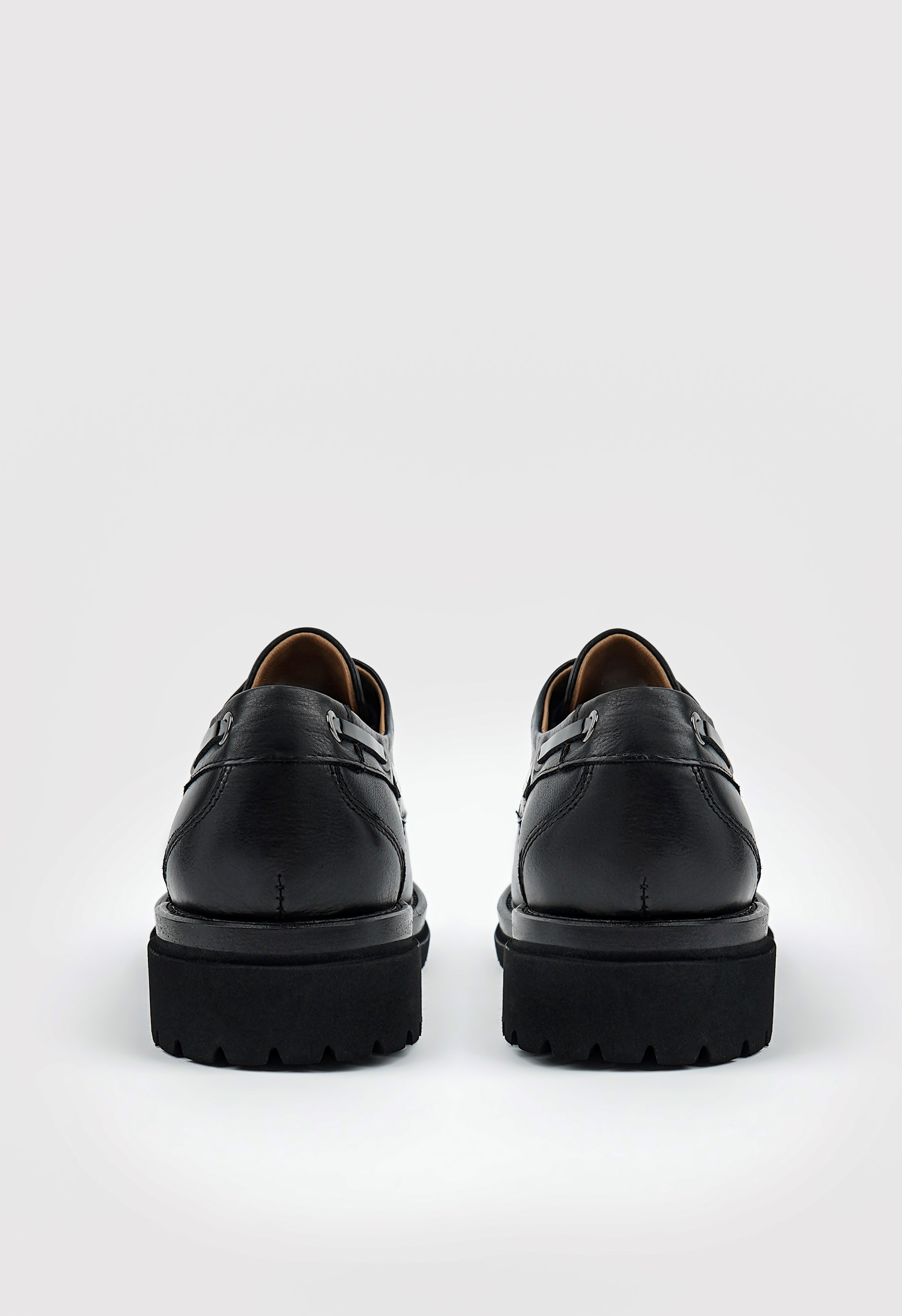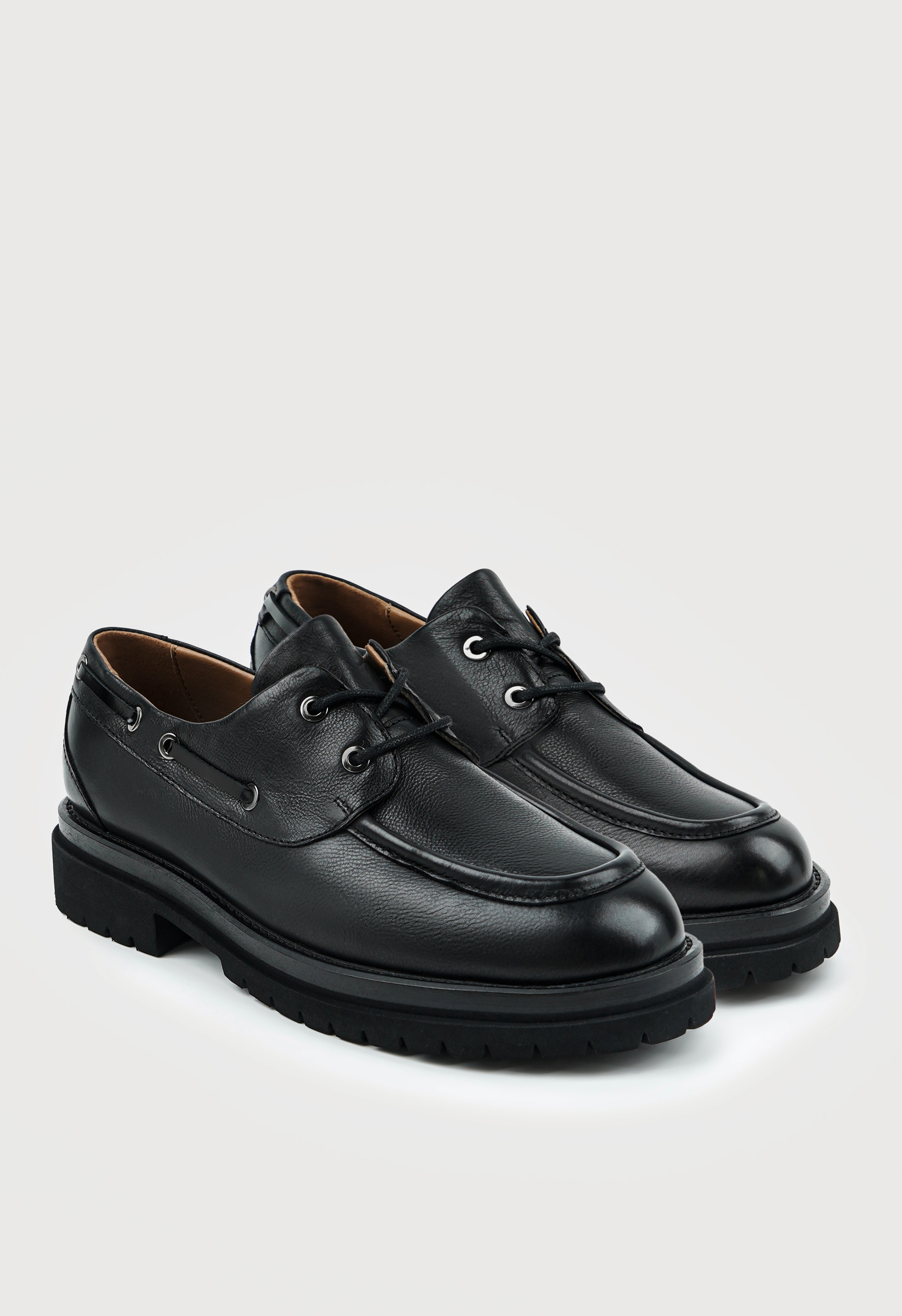 Топсайдеры черного цвета из натуральной кожи – это стильное и универсальное решение для тех, кто ценит комфорт и актуальный дизайн каждый день. Модель с аккуратным округлым мыском и широкой удобной подошвой отличается гибкостью и легкостью при ходьбе, позволяя чувствовать себя уверенно в любом ритме города. Шнуровка с металлической фурнитурой добавляет характерный акцент и обеспечивает отличную фиксацию. Модель легко сочетается с джинсами, брюками и шортами, подчеркивая ваш безупречный вкус и позволяя оставаться элегантной в любой повседневной ситуации.