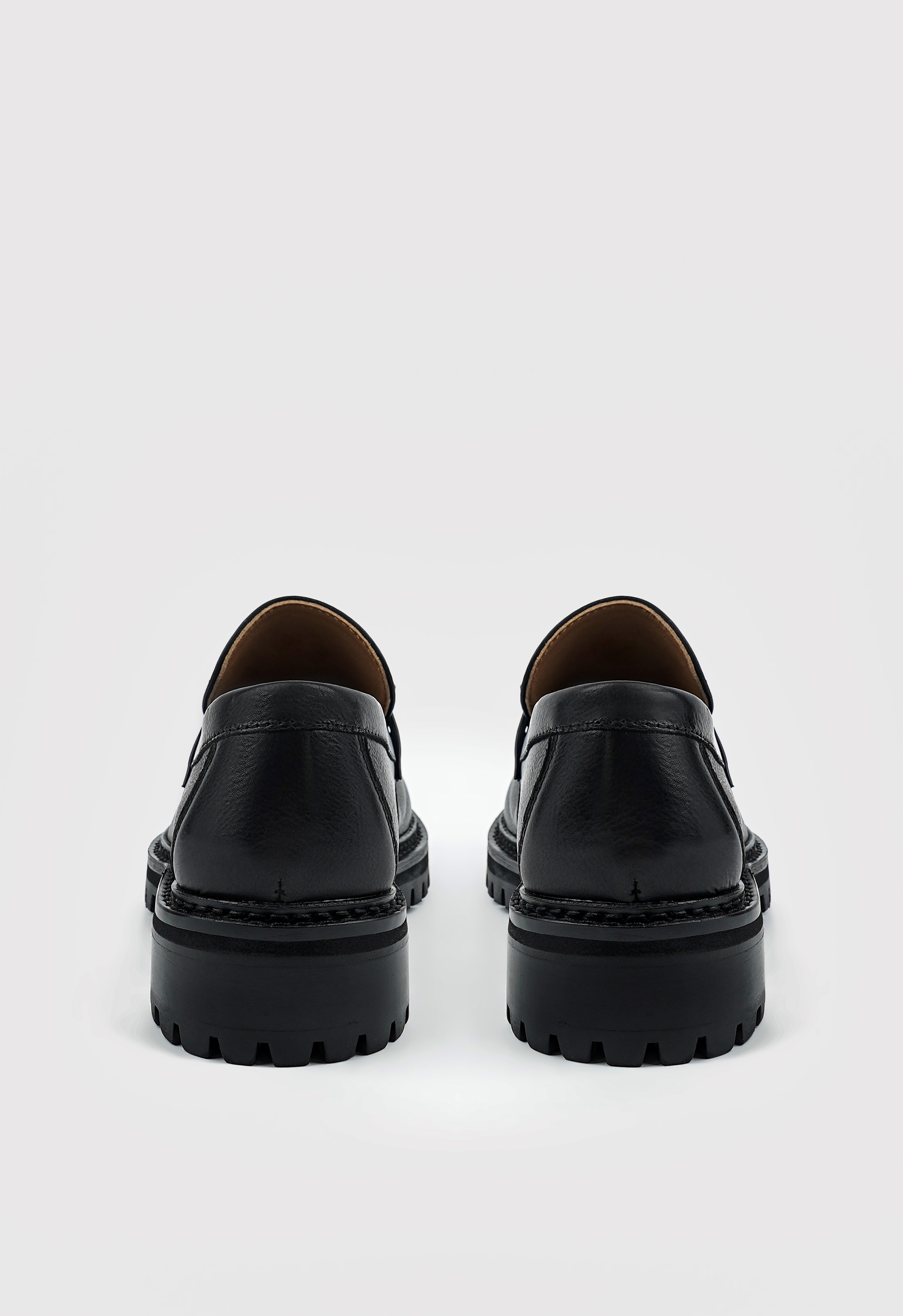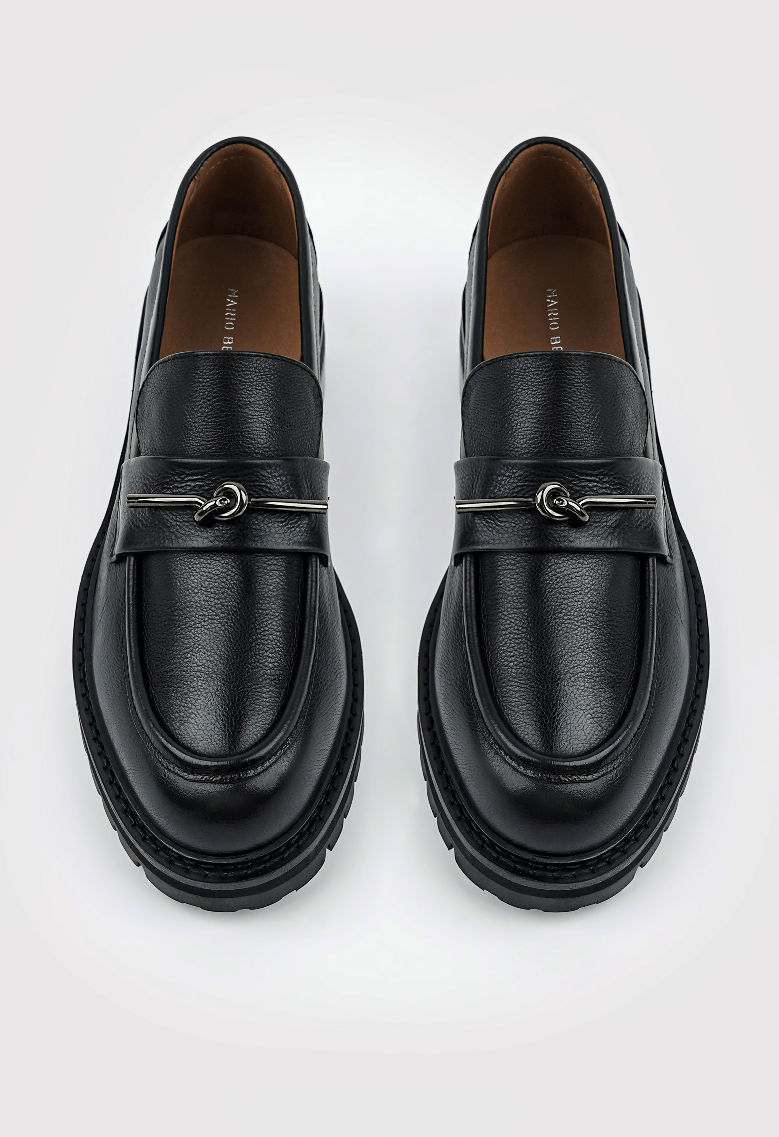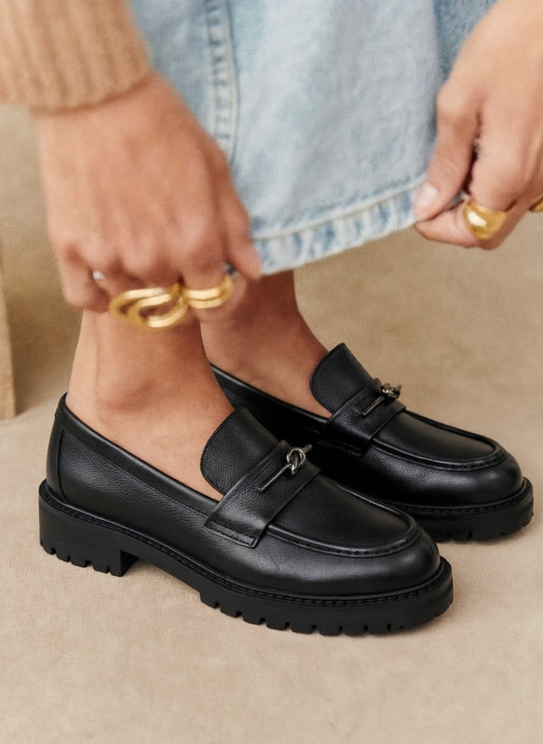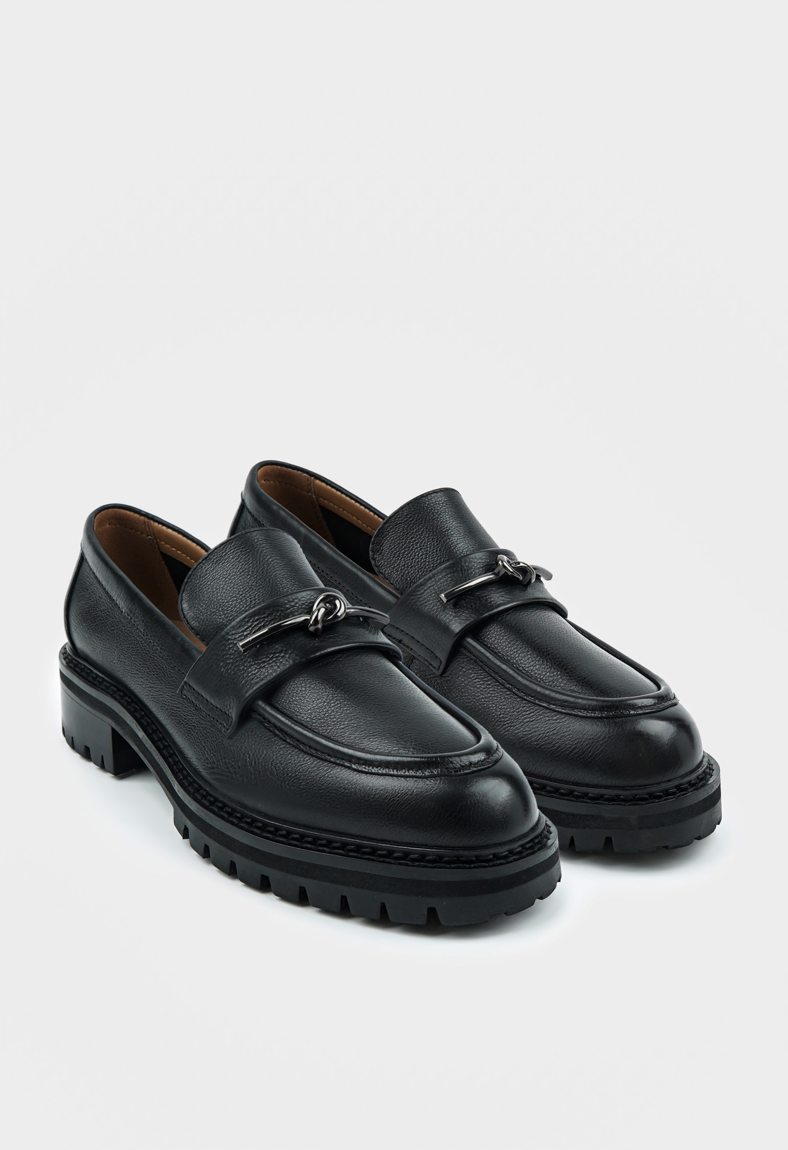 Черные лоферы из натуральной кожи – это воплощение классики и комфорта в одной стильной паре. Округлый мысок придает модели сдержанный и элегантный вид, а широкий каблук и жесткая подошва гарантируют устойчивость и удобство при ходьбе. Металлическая фурнитура добавляет современный акцент, подчеркивая внимание к деталям и качество исполнения. Лоферы легко впишутся в повседневный или деловой гардероб, отлично сочетаются с брюками, юбками и платьями, помогая создавать уверенные и актуальные образы на каждый день.