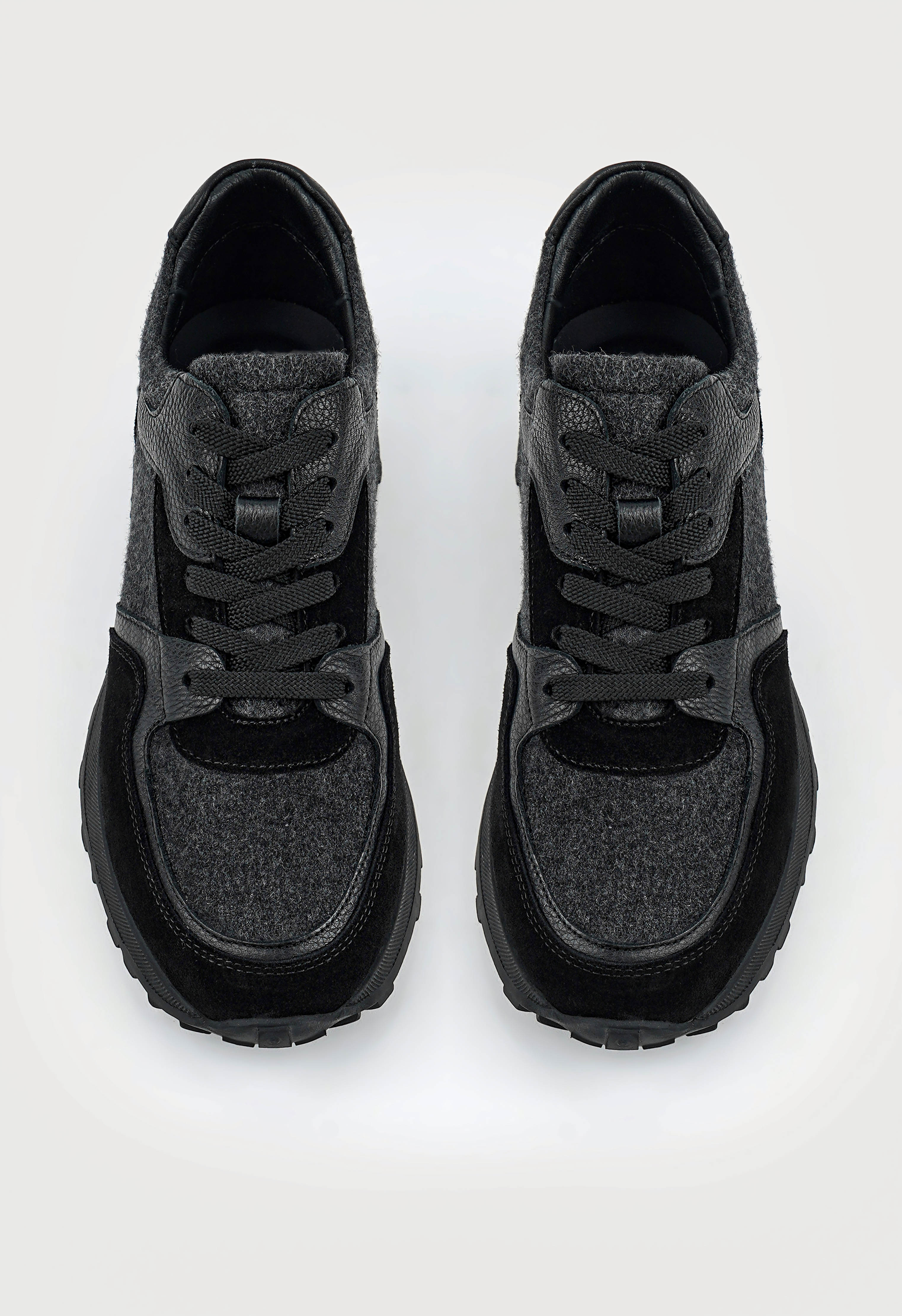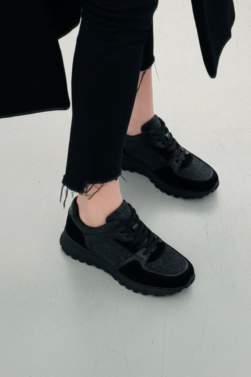 Актуальные черные кроссовки из натуральной замши с подкладкой из мягкой натуральной кожи – это идеальное сочетание стиля и комфорта для активных будней. Округлый мысок придает образу аккуратность и универсальность, а шнуровка обеспечивает удобную и точную посадку по ноге. Гибкая подошва с трендовой платформой дарит легкость движений и современный силуэт, подчеркивая вашу уверенность в каждом шаге. Фетровые акценты и войлочная фактура добавляют необычную текстурность и стильный контраст, делая модель ещё более выразительной. Эти кроссовки легко впишутся в гардероб, помогая создавать модные и удобные образы на каждый день.