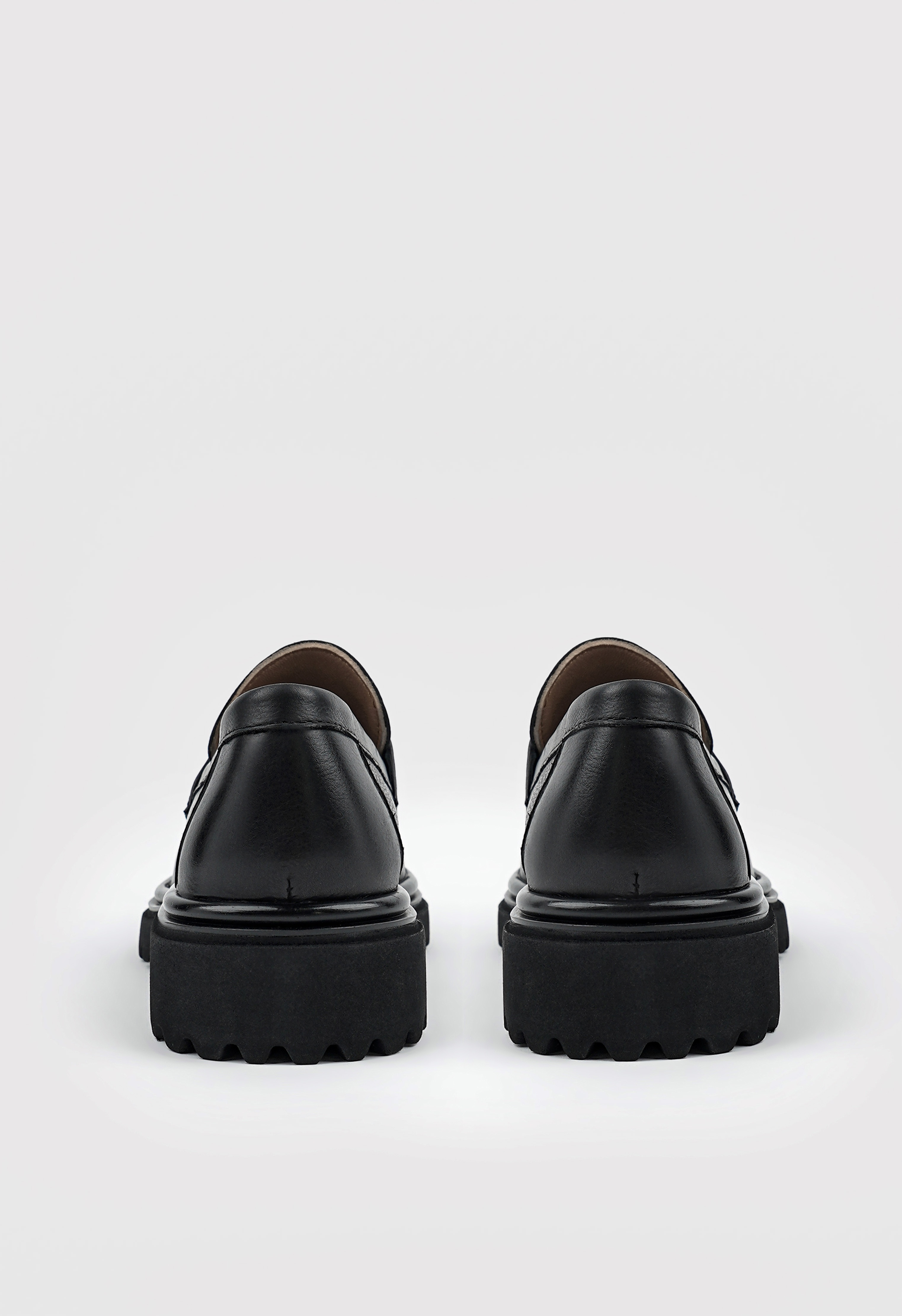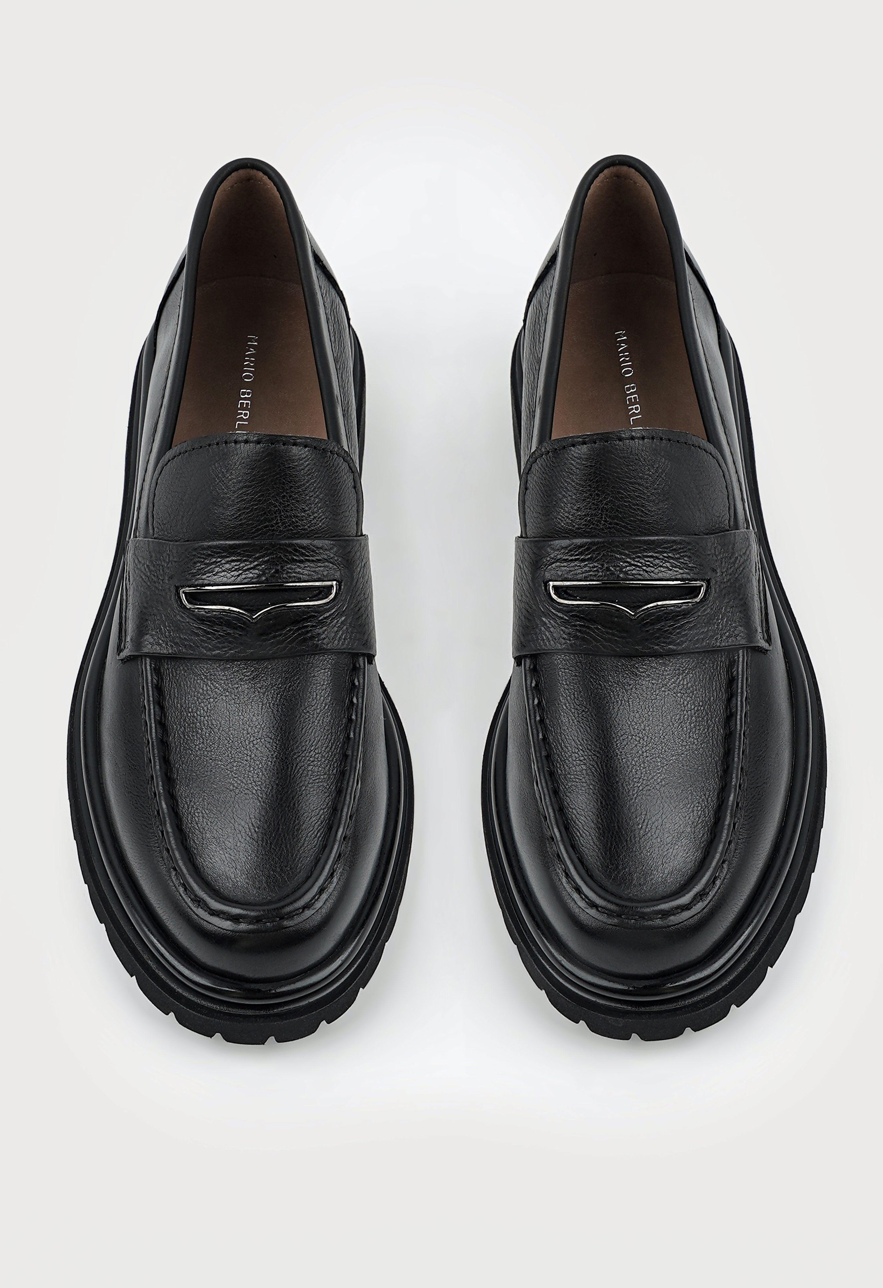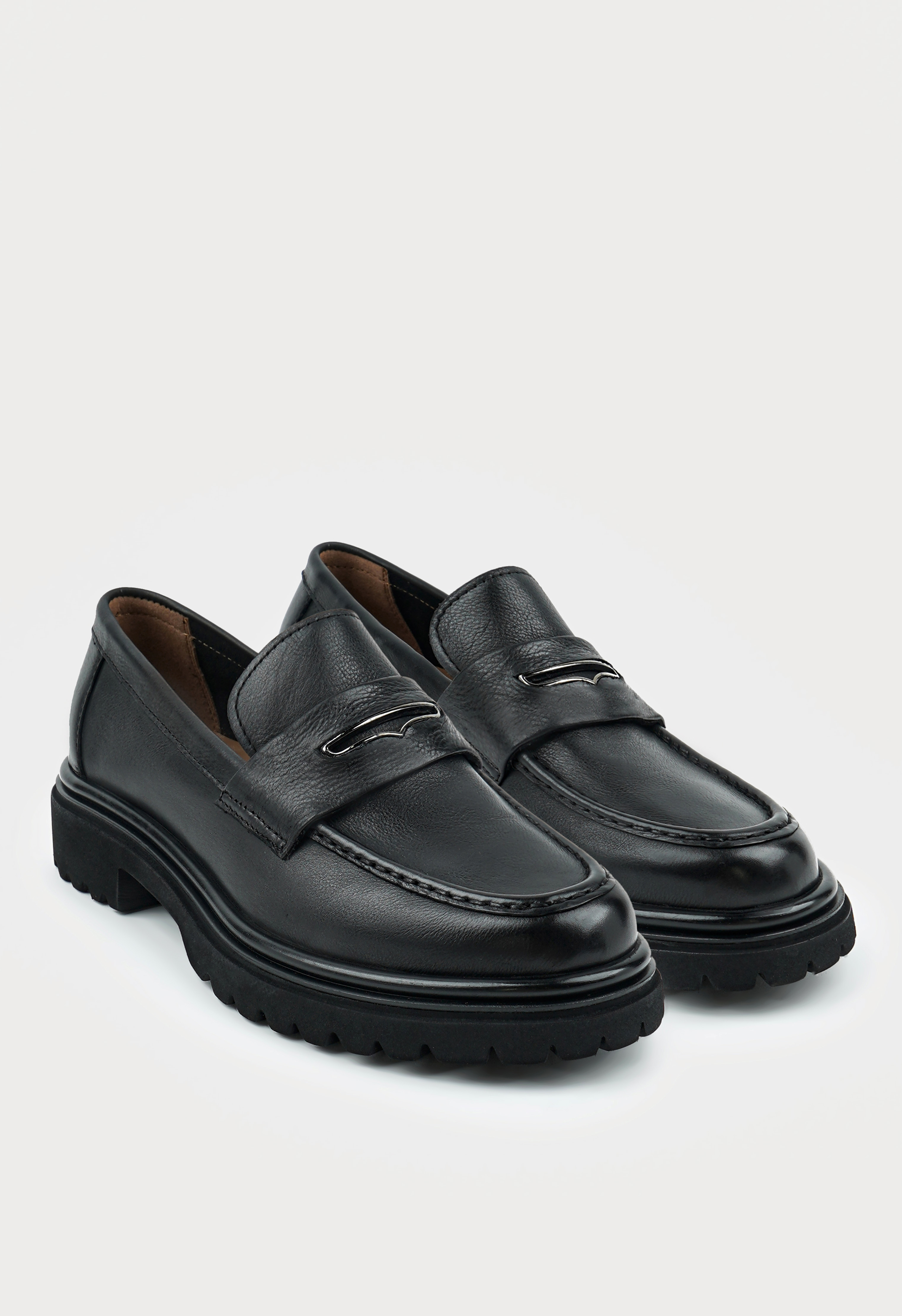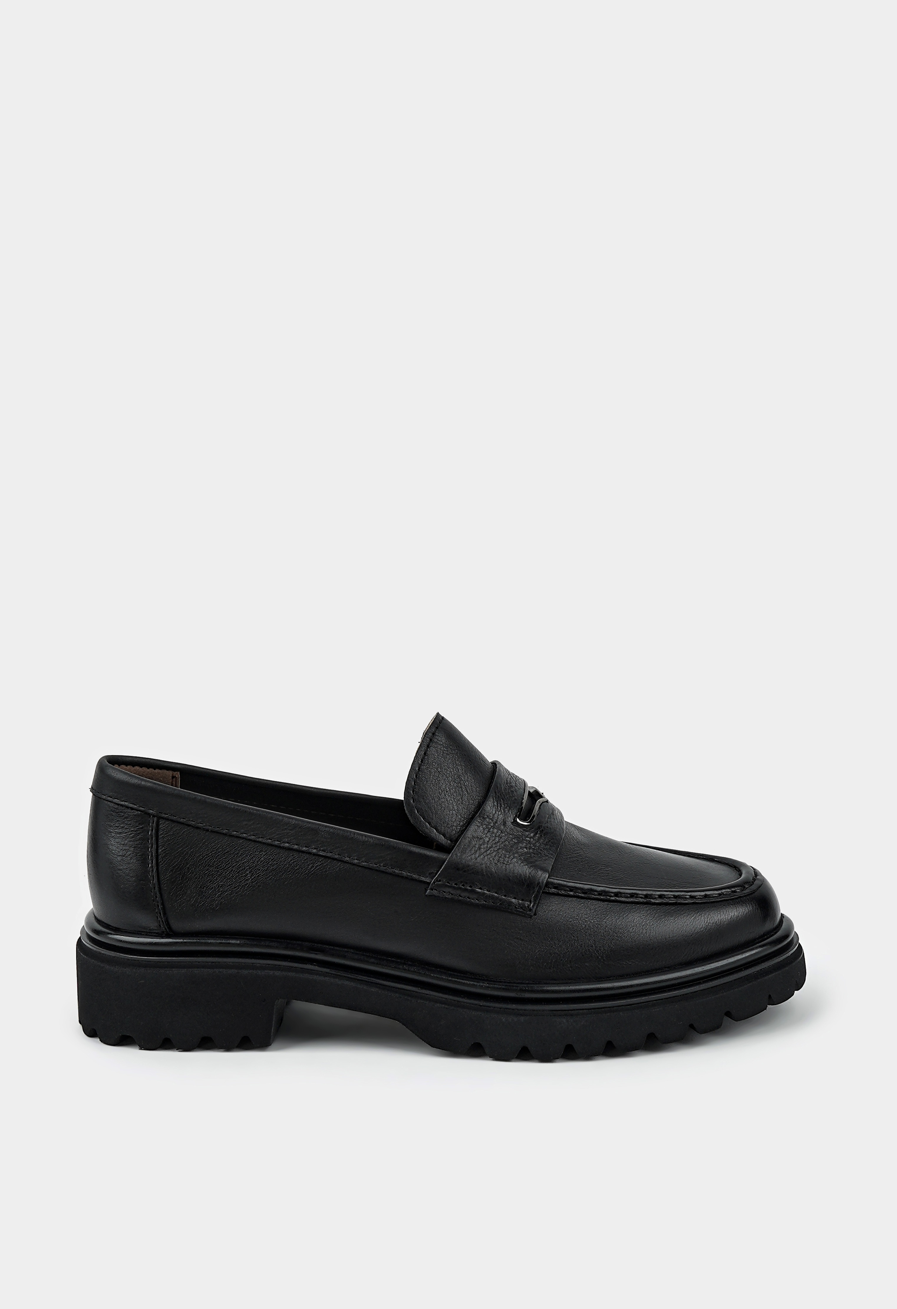 Актуальные черные лоферы из натуральной кожи – это стильная классика с современным акцентом, созданная для комфорта в повседневной жизни. Жесткая подошва и широкий каблук гарантируют надежную поддержку и уверенность в каждом шаге, а округлый мысок придает образу элегантность и универсальность. Металлическая фурнитура добавляет изысканный штрих, подчеркивая ваш вкус к деталям. Модель легко дополнят как офисный образ с брюками или юбкой, так и расслабленный вариант с джинсами, делая ваш стиль актуальным и безупречно собранным в любой ситуации.