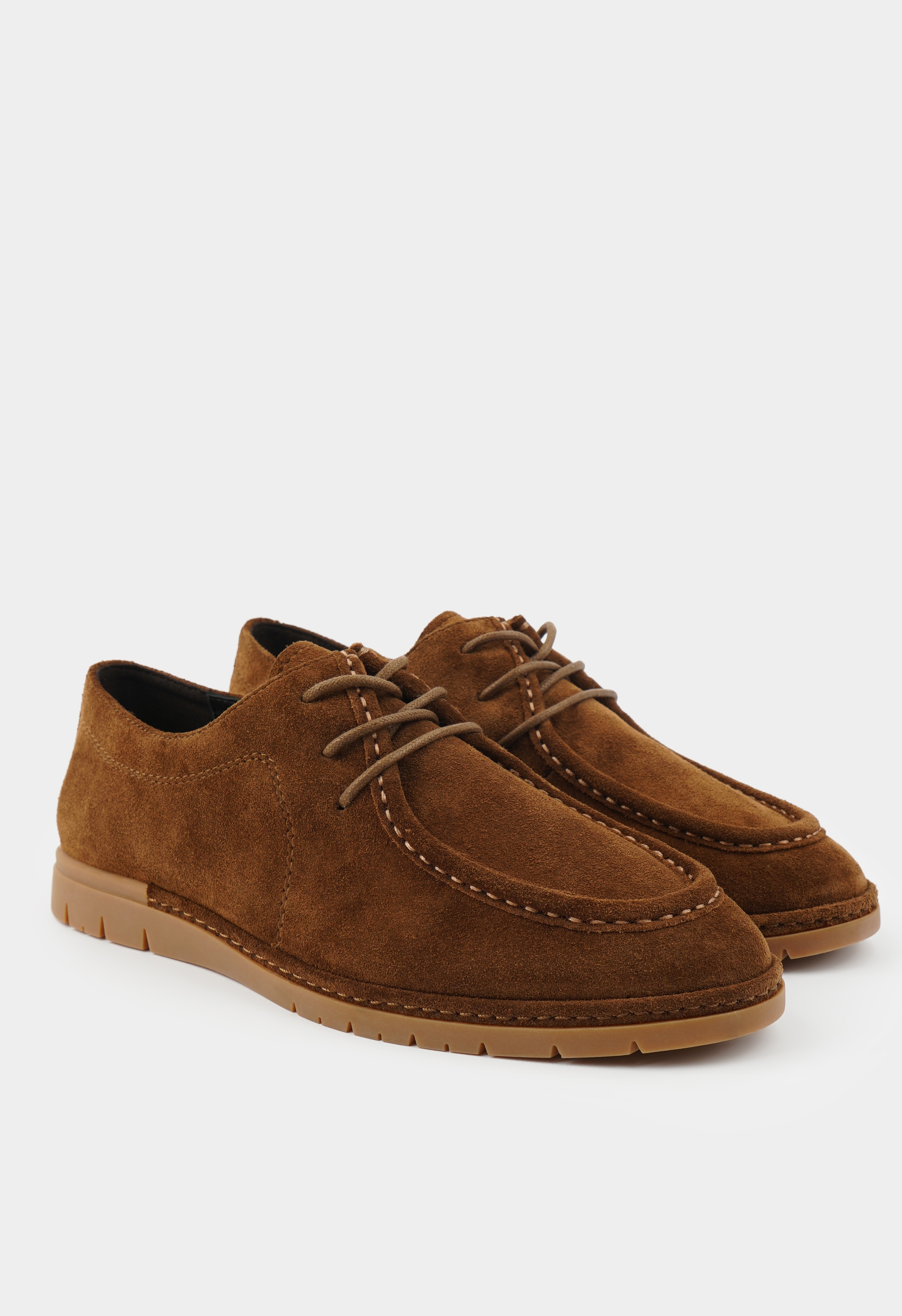 Полуботинки из натуральной замши в благородном коричневом цвете – универсальная обувь для тех, кто ценит стиль и комфорт каждый день. Мягкая замша создает ощущение уюта, а гибкая подошва и аккуратный округлый мысок дарят легкость и свободу движений. Классическая шнуровка подчеркивает аккуратный силуэт и позволяет идеально регулировать посадку. Эта модель легко вписывается в повседневный гардероб и становится гармоничным завершением как деловых, так и расслабленных образов.