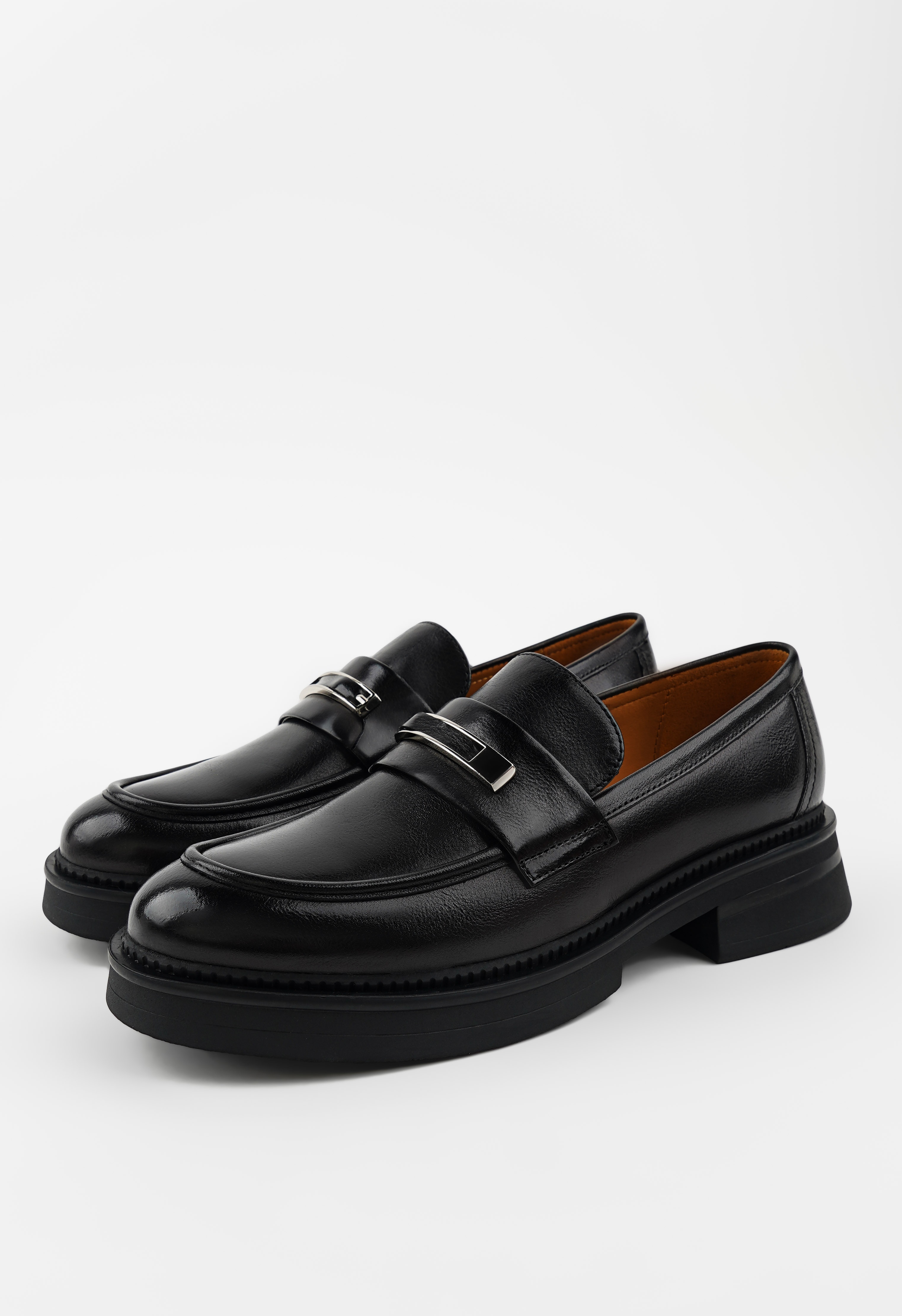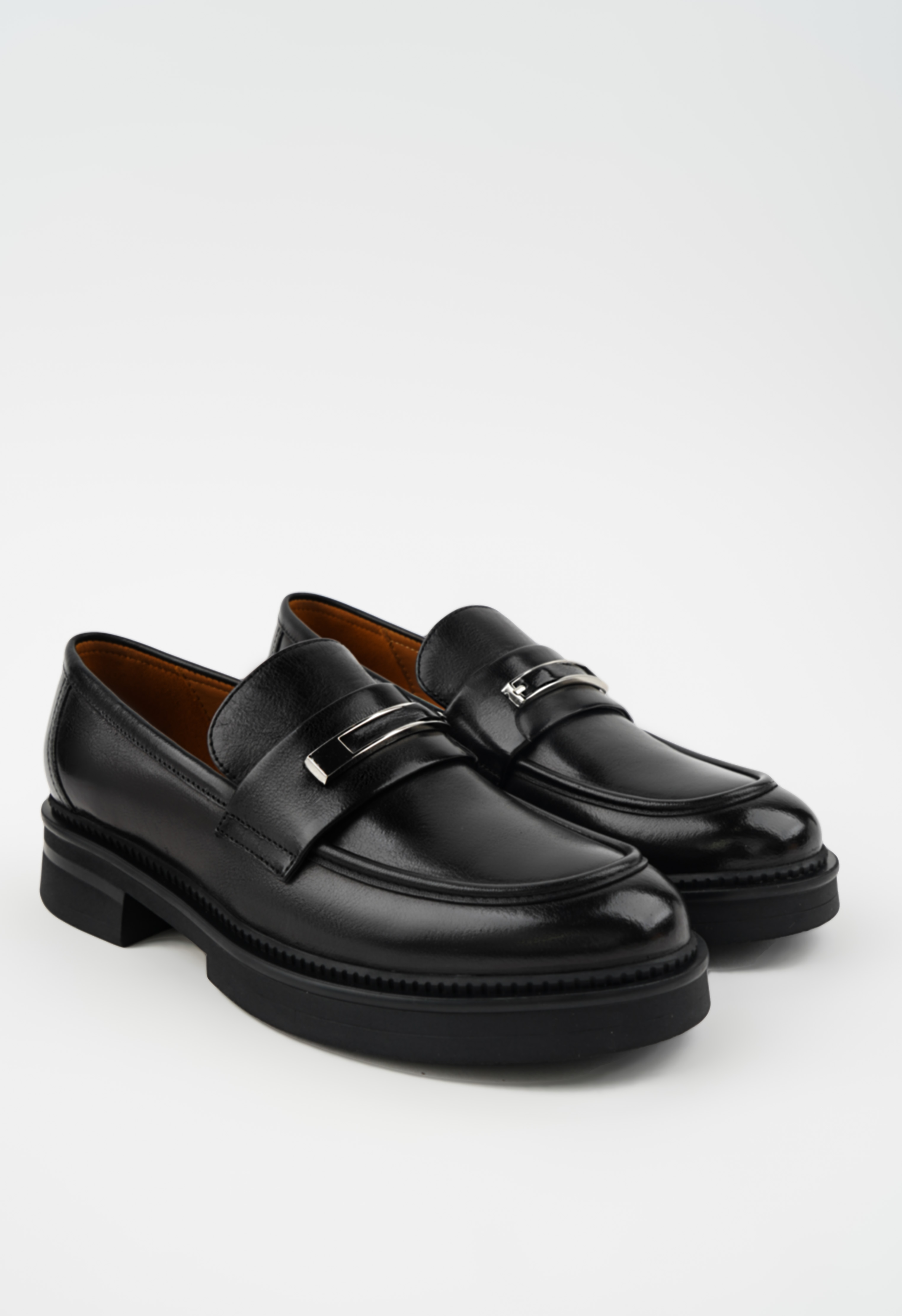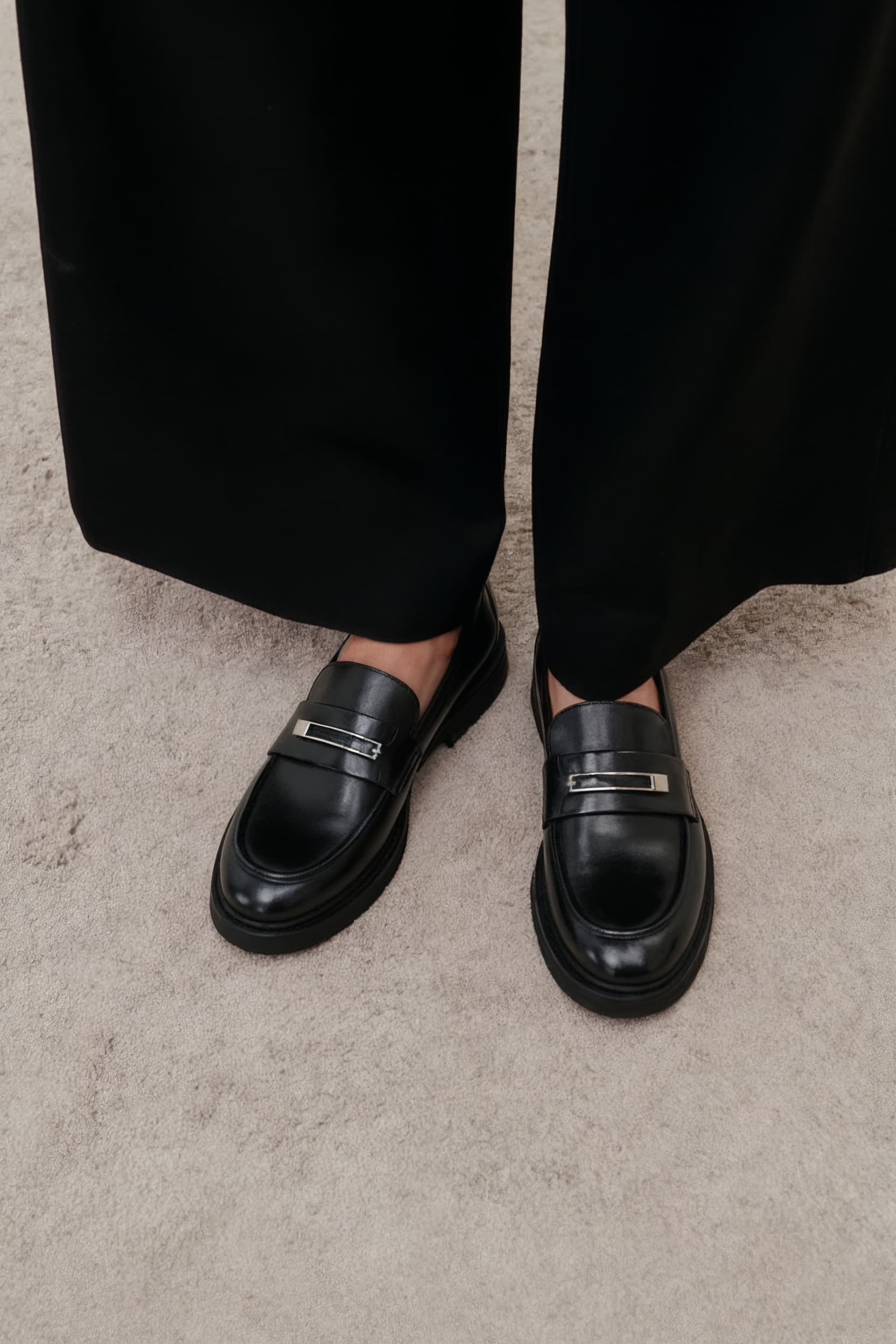 Эти лоферы из натуральной кожи – воплощение элегантности и практичности для любого дня. Жесткая подошва с широким каблуком обеспечивает уверенную и комфортную походку, в то время как округлый мысок добавляет мягкости и современности. Серебряная фурнитура делает модель стильной и выразительной, а черный цвет универсален и легко сочетается с любым образом. Эти лоферы идеально подходят для повседневной жизни: будь то работа, прогулка или встреча с друзьями, они подчеркнут ваш вкус, дарят комфорт на каждый шаг и придают уверенности в любой ситуации.
