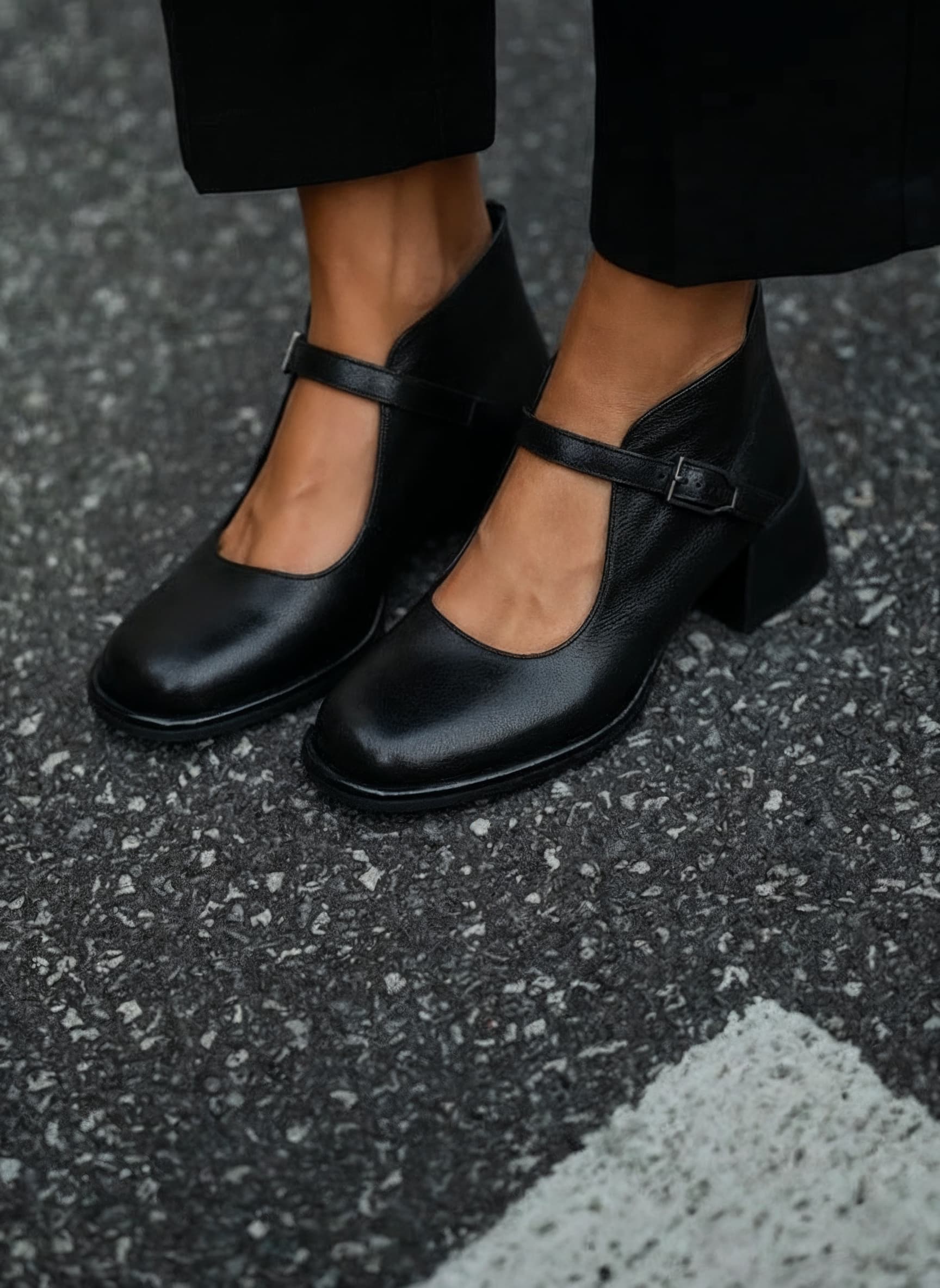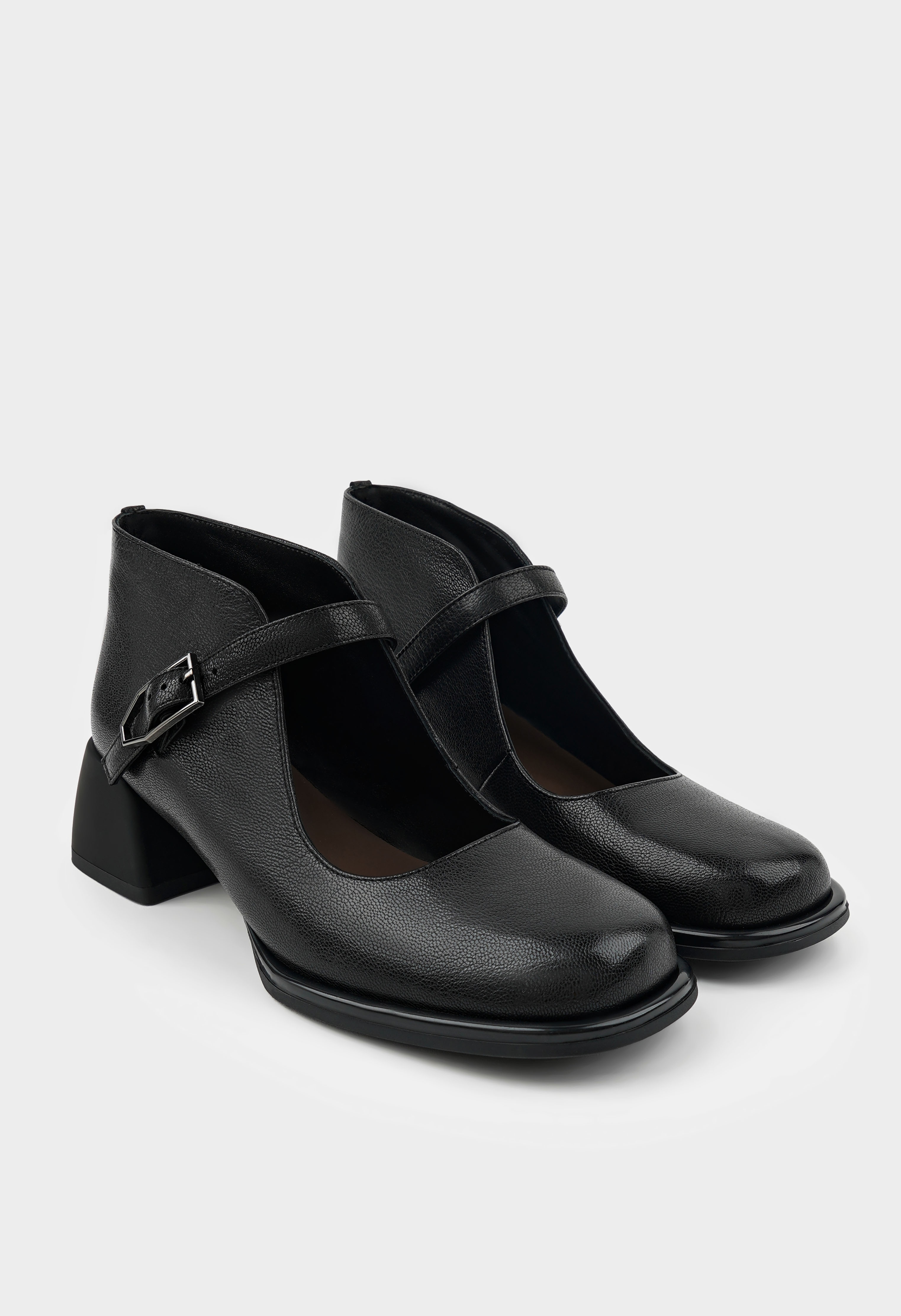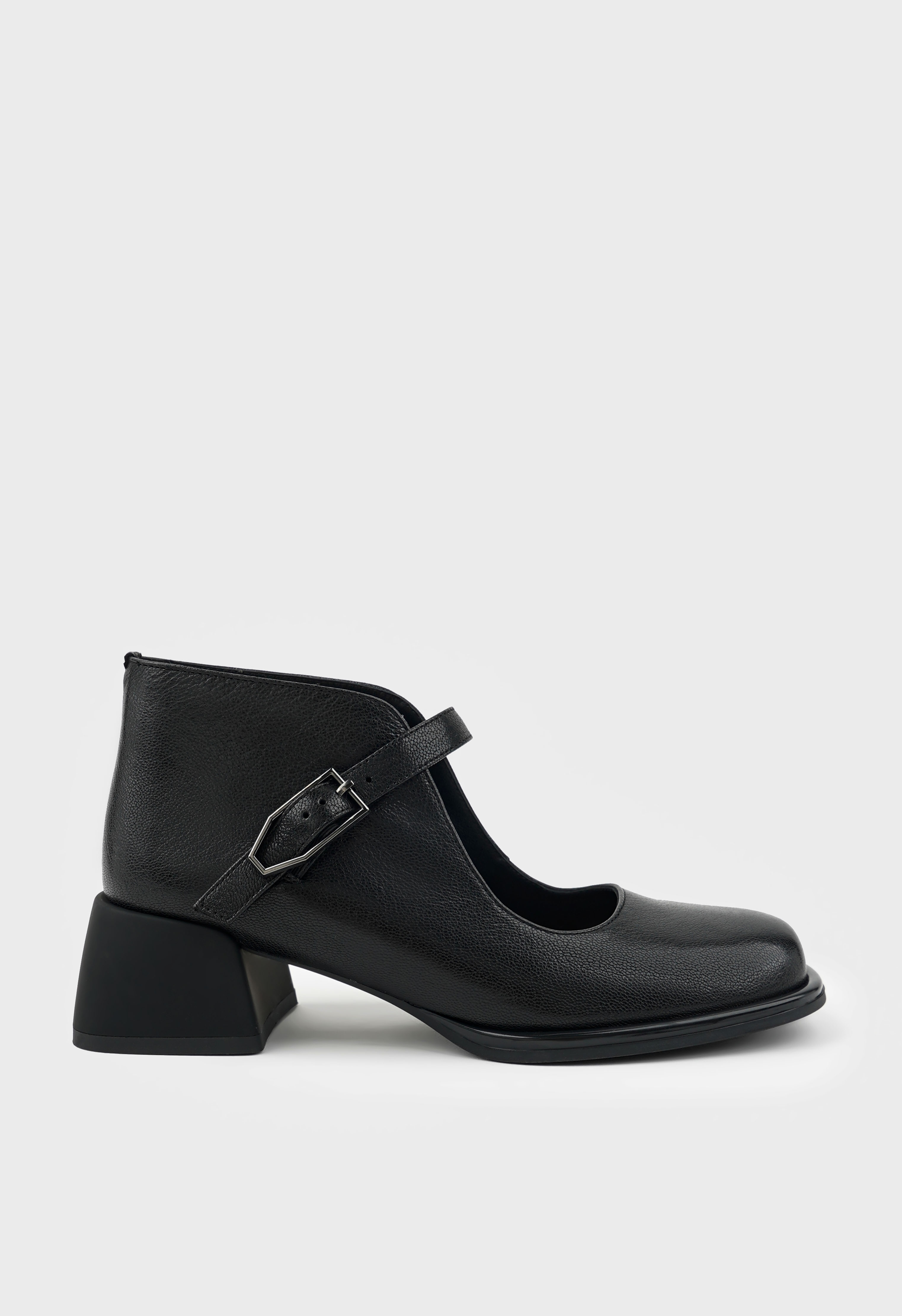 Туфли из натуральной кожи в классическом черном цвете – это универсальная пара на каждый день с акцентом на стиль и комфорт. Округлый мысок и трапециевидный каблук придают образу женственность и устойчивость, а гибкая подошва позволяет двигаться легко и уверенно. Элегантная пряжка в цвете металлик добавляет изюминку и визуальный акцент. Такая модель идеально впишется в повседневный гардероб, будь то офис, прогулка по городу или вечерняя встреча.