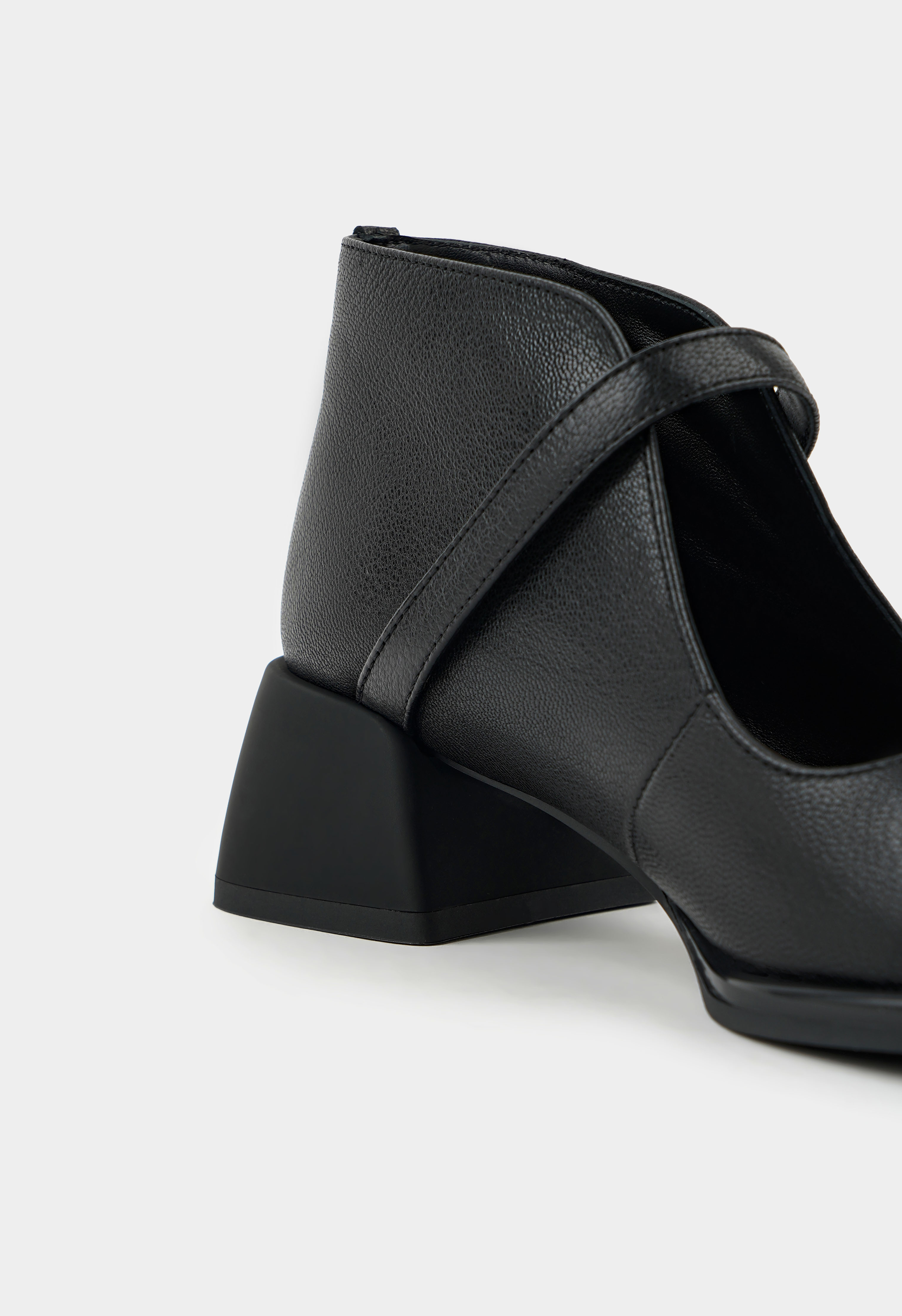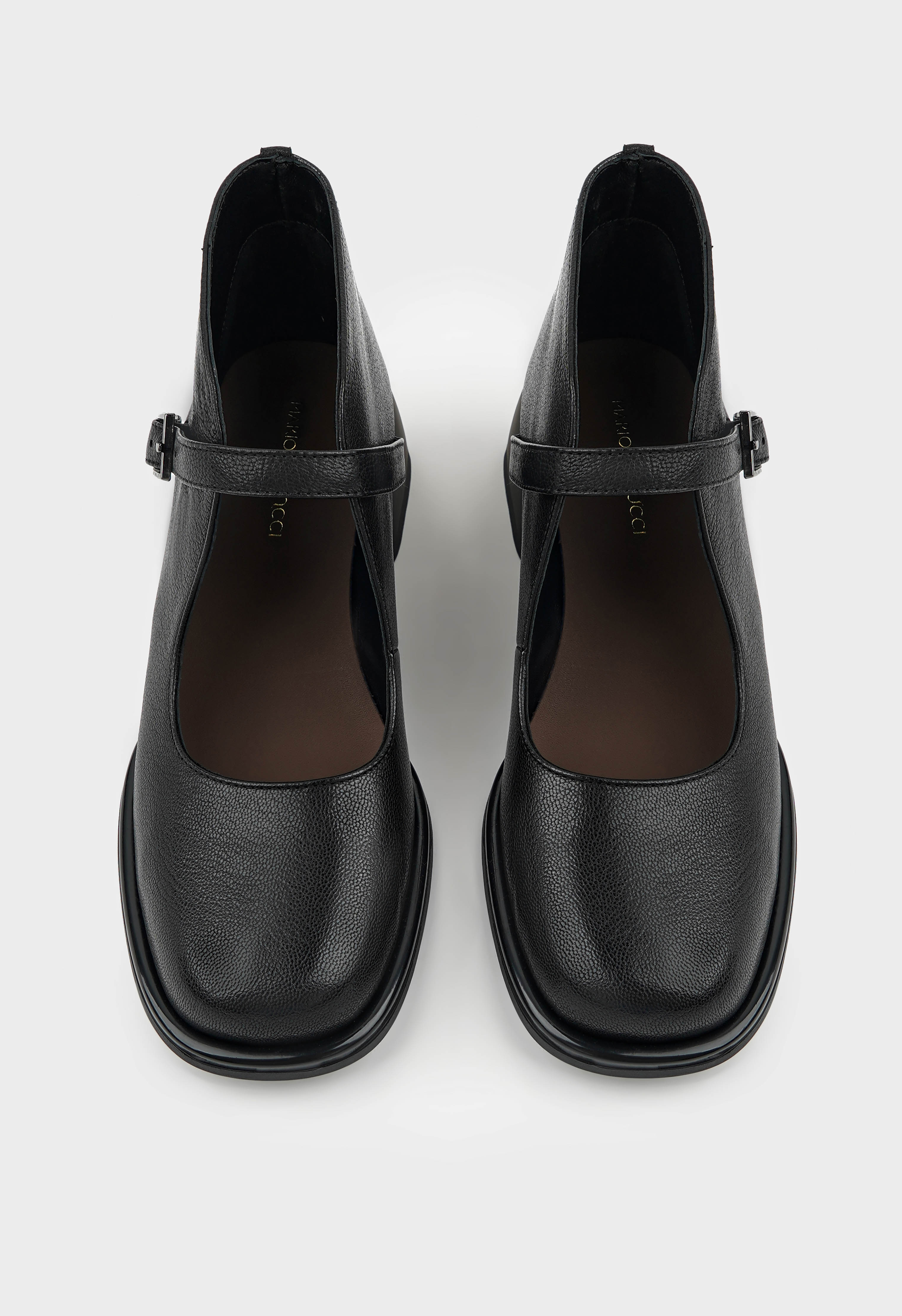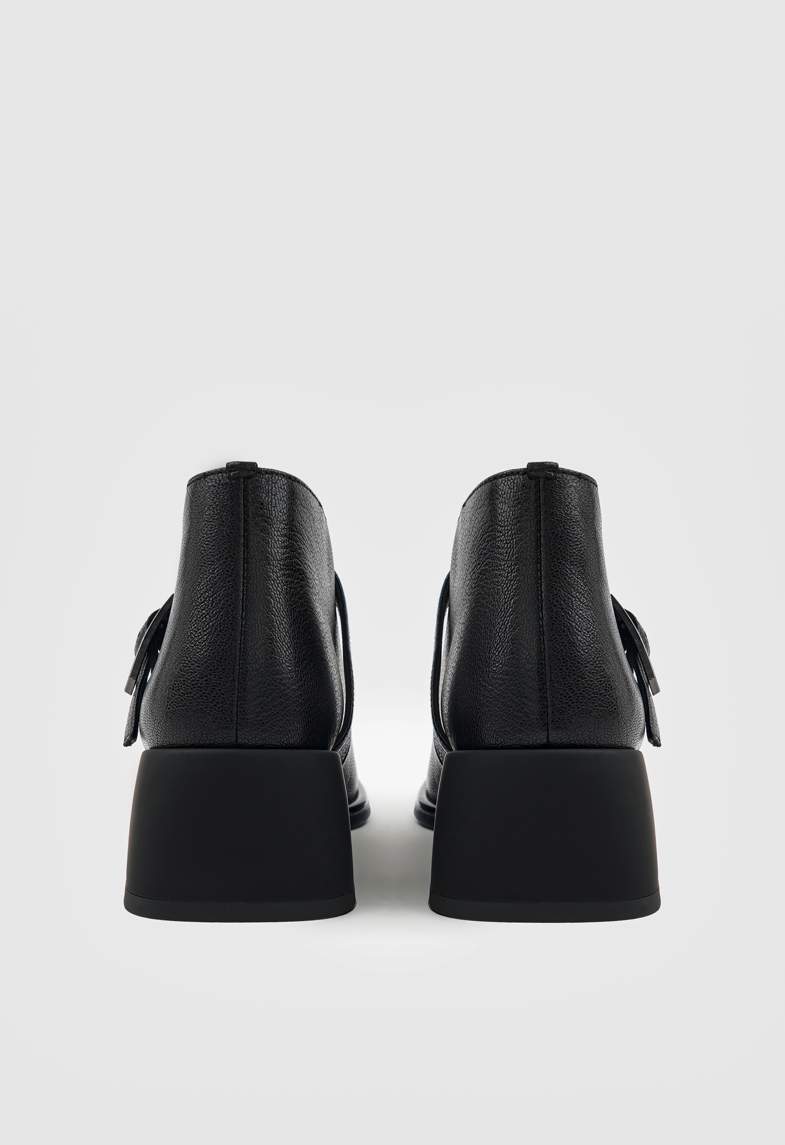 Туфли из натуральной кожи в классическом черном цвете – это универсальная пара на каждый день с акцентом на стиль и комфорт. Округлый мысок и трапециевидный каблук придают образу женственность и устойчивость, а гибкая подошва позволяет двигаться легко и уверенно. Элегантная пряжка в цвете металлик добавляет изюминку и визуальный акцент. Такая модель идеально впишется в повседневный гардероб, будь то офис, прогулка по городу или вечерняя встреча.