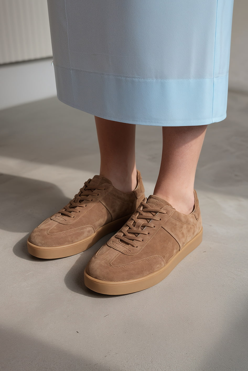 Стильные кеды из мягкой натуральной замши в актуальном бежевом оттенке станут вашим любимым выбором на каждый день. Гибкая подошва и удобная платформа обеспечивают комфорт даже при долгой ходьбе, а округлый мысок дает стопе свободу и лёгкость. Классическая шнуровка добавляет спортивной динамики, в то время как благородная замша делает образ более утонченным. Эти кеды одинаково гармонично смотрятся с джинсами, платьем или брючным костюмом, подчеркивая вашу индивидуальность и чувство стиля в любой ситуации.