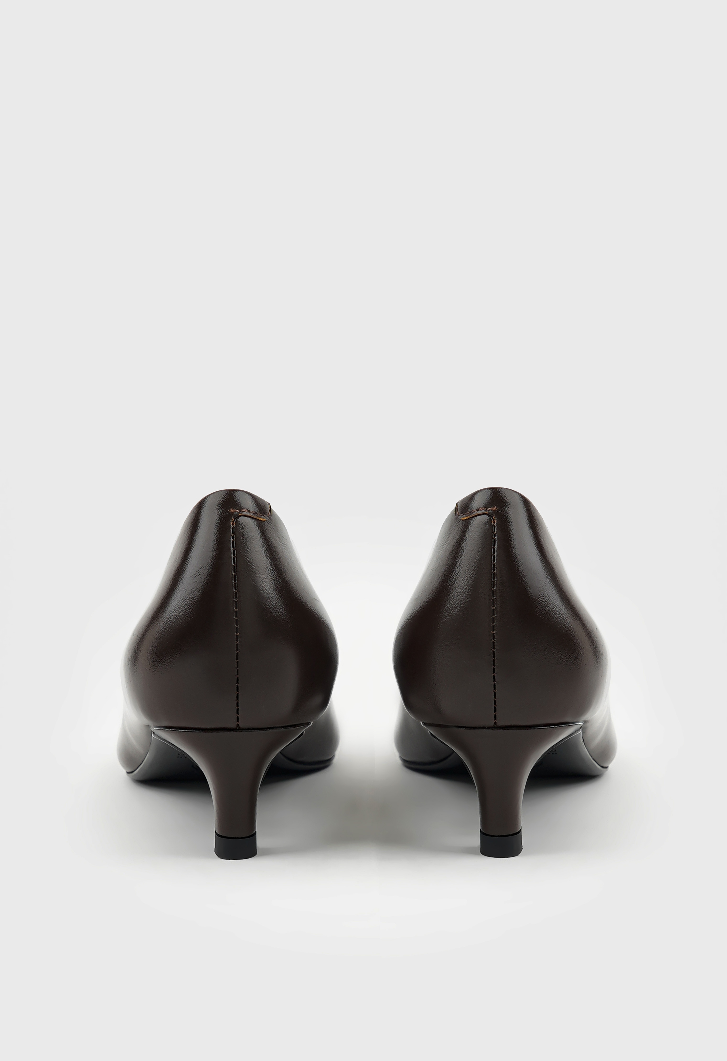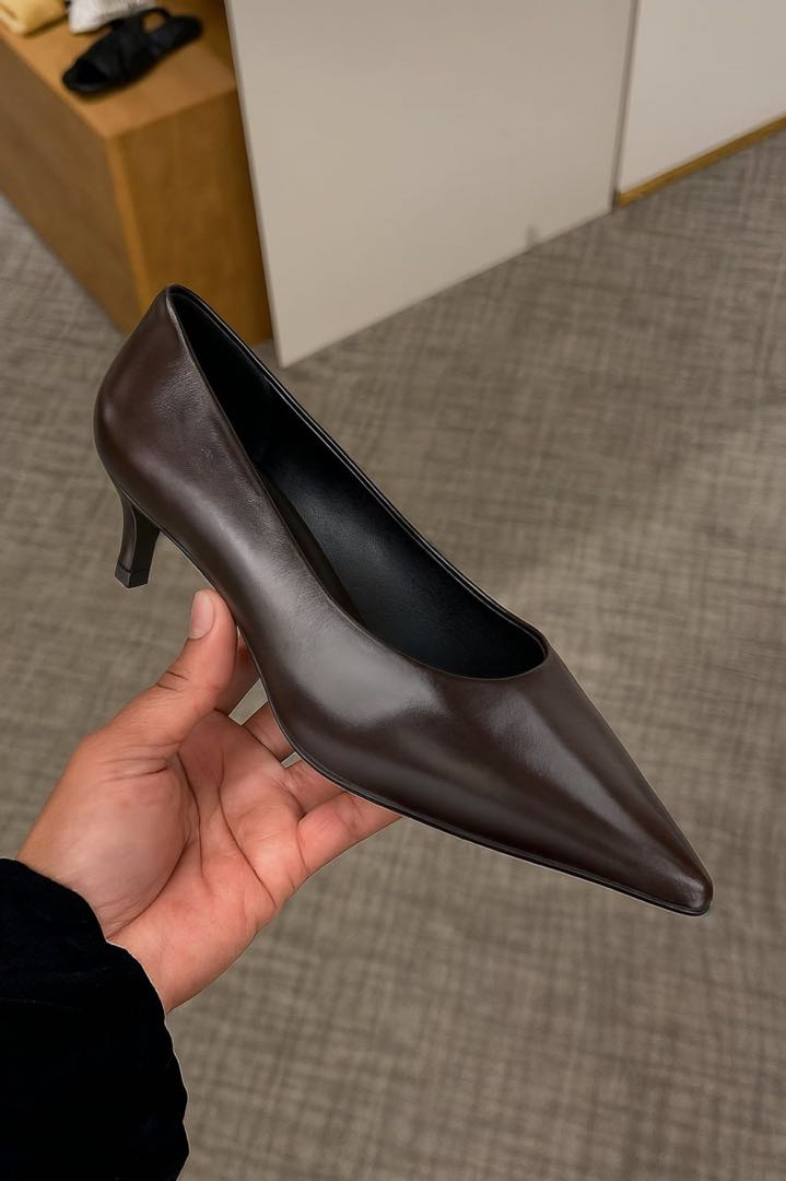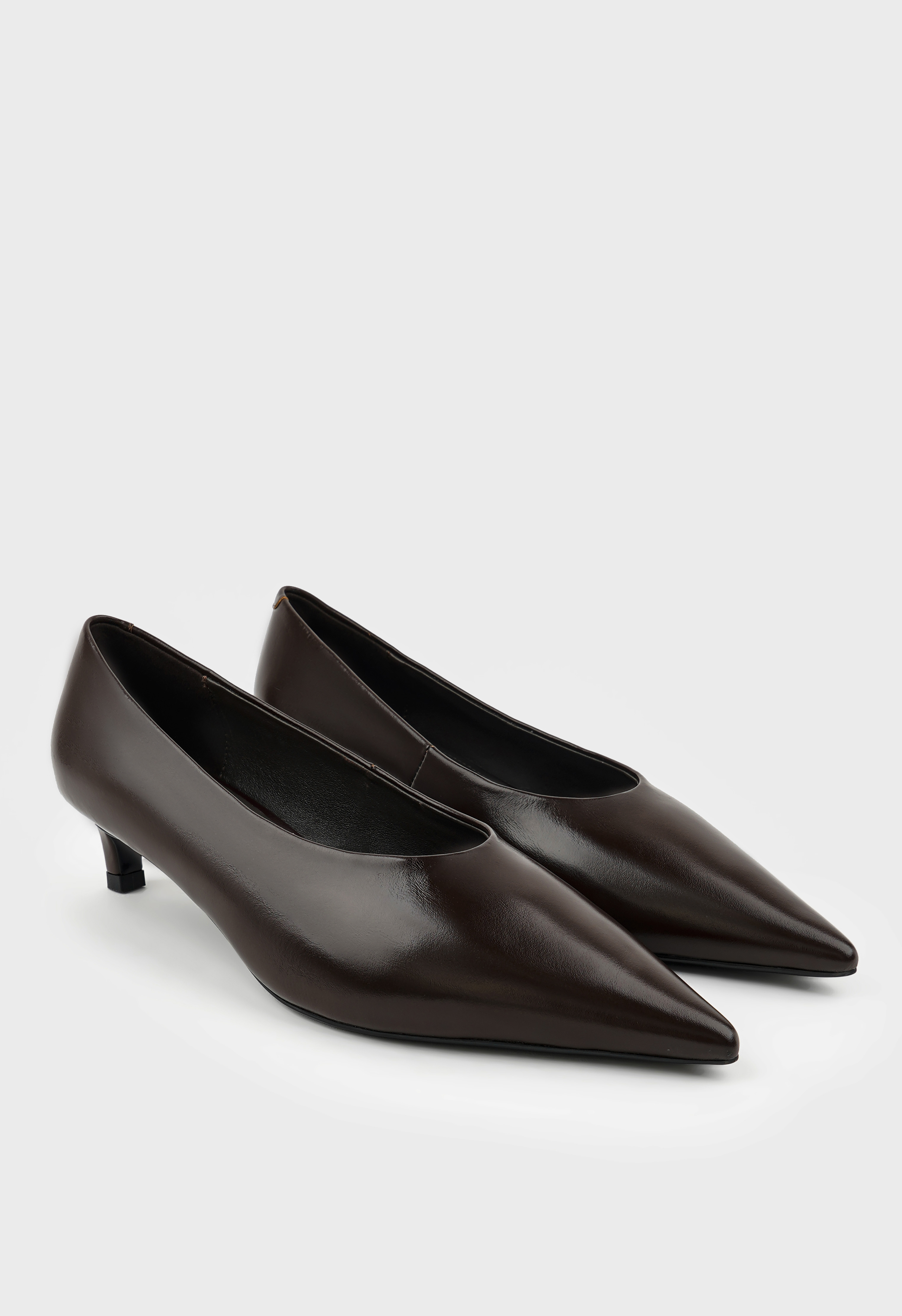 Коричневые туфли из натуральной кожи – классика, которая всегда в моде. Гибкая подошва дарит комфорт с утра до вечера, а аккуратный каблук kitten heel придает образу утонченности без жертв в удобстве. Заостренный мысок добавляет нотку строгости и визуально удлиняет ногу. Идеальный вариант для офиса, встреч и городских прогулок, когда хочется выглядеть элегантно, но чувствовать себя уверенно и свободно.