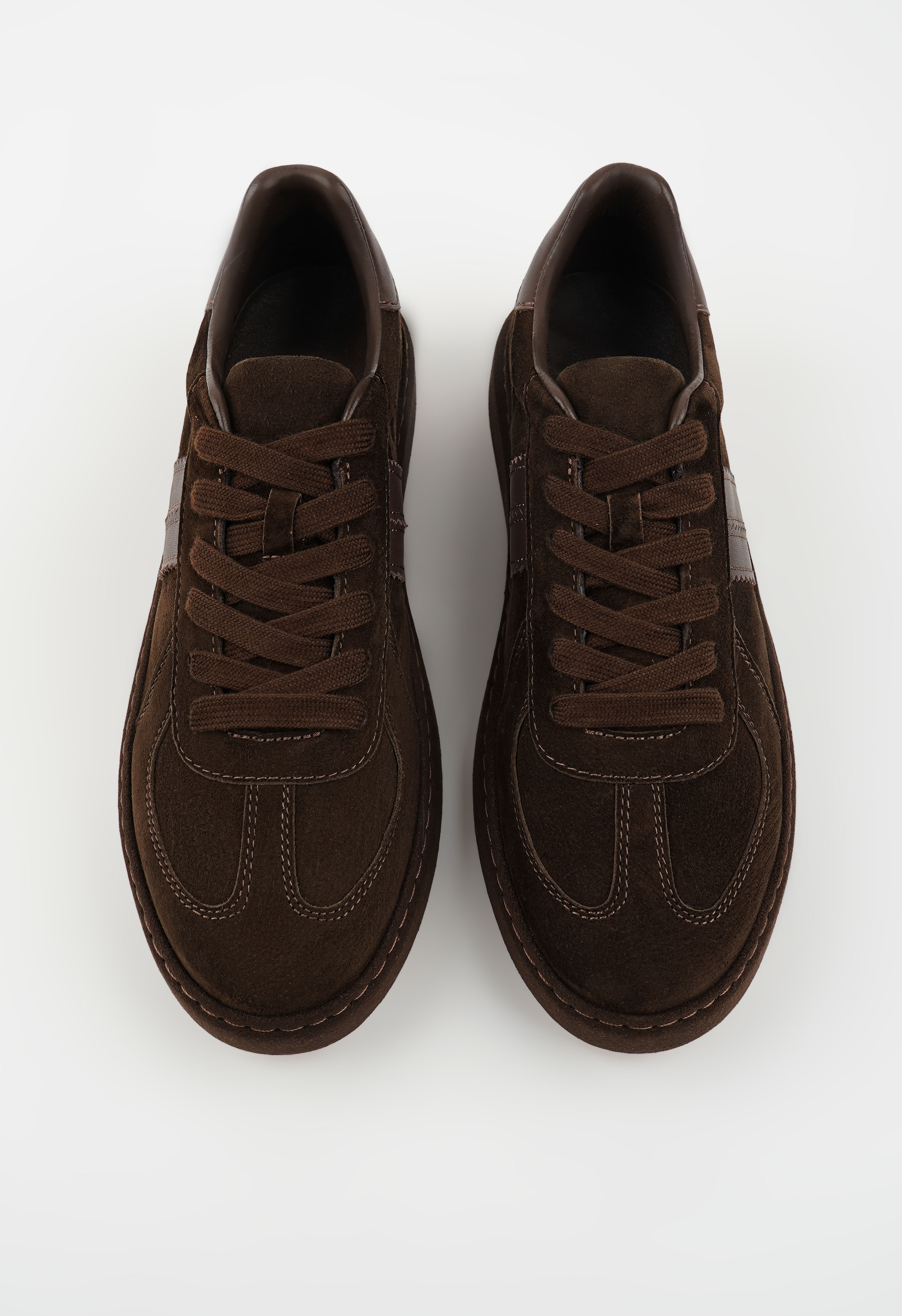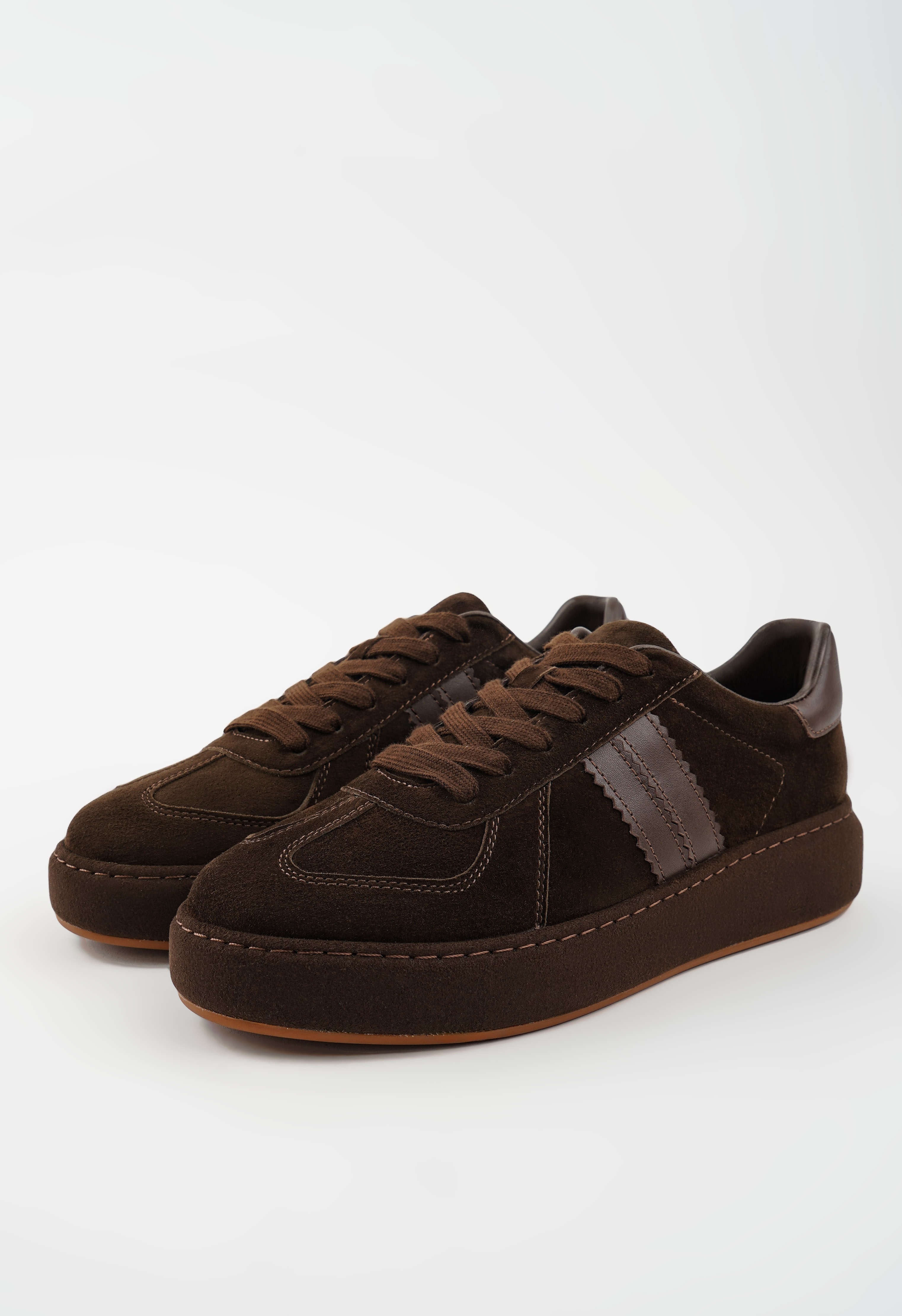 Кеды из натуральной замши в насыщенном коричневом оттенке – идеальный выбор для активного и стильного образа каждый день. Гибкая подошва с удобной платформой заботится о вашей легкости и комфорте при каждом шаге, в то время как округлый мысок и классическая шнуровка делают модель практичной и универсальной. Натуральная замша придает кедам премиальный вид и мягкость, а яркий рыжий цвет оживляет любой наряд, подчеркивая индивидуальность и современный стиль.