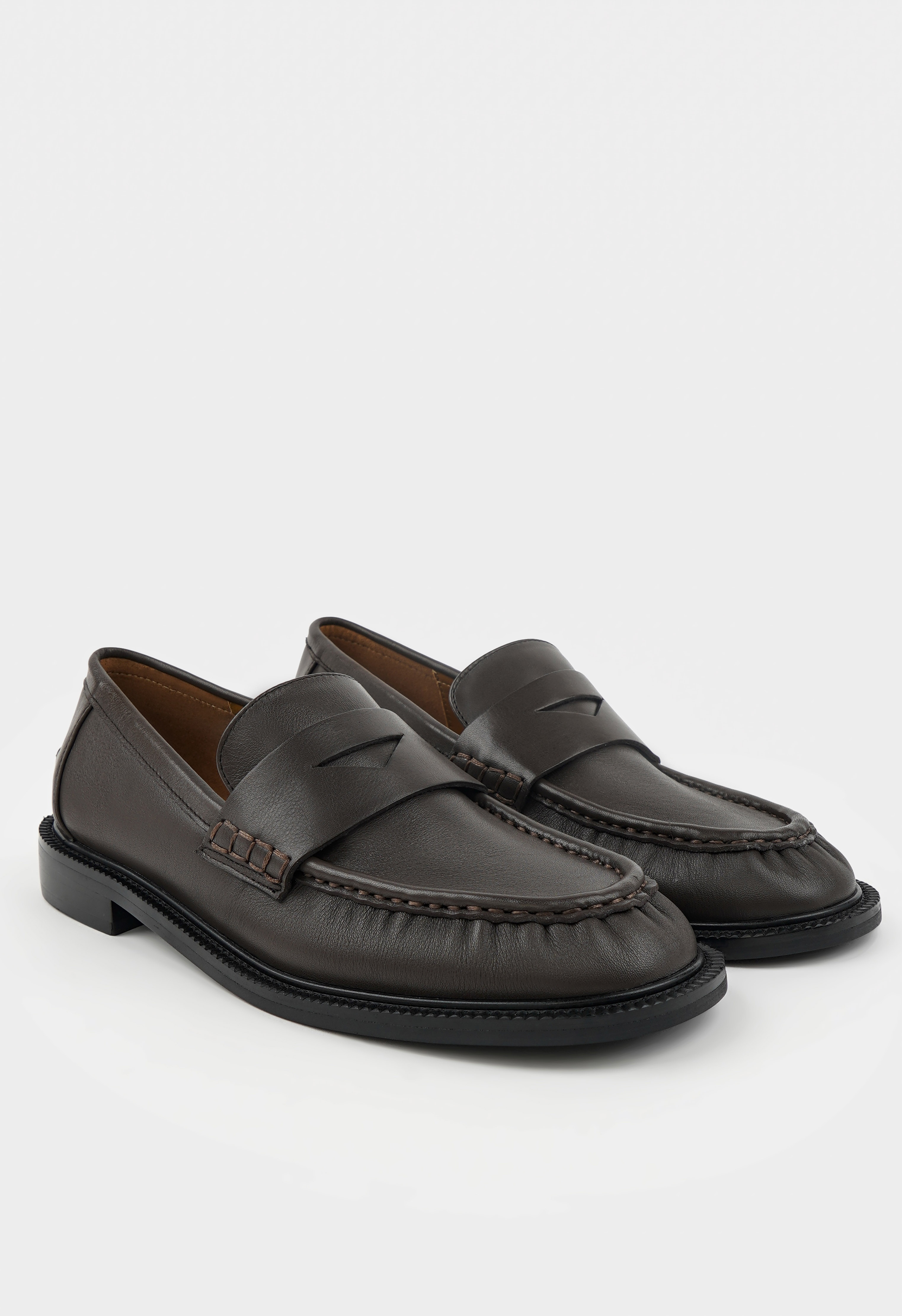 Эти лоферы из мягкой натуральной кожи – находка для тех, кто хочет выглядеть собранно, но чувствовать себя расслабленно. Коричневый цвет делает их базой для любого гардероба, а округлый мысок и широкий каблук дарят комфорт даже в самый насыщенный день. Гибкая подошва мягко подстраивается под шаг, чтобы вы не думали об обуви, а шли по своим делам с комфортом.