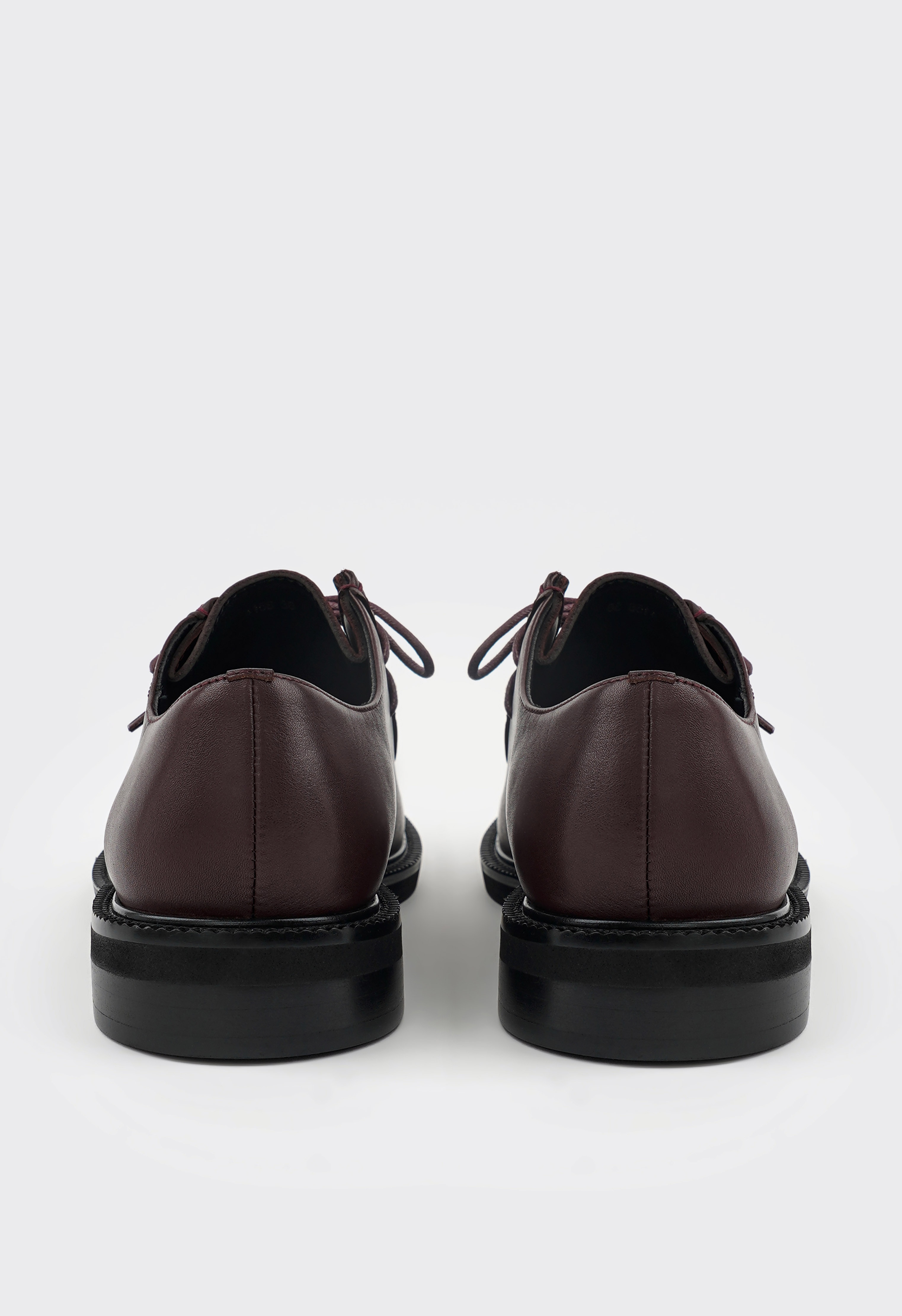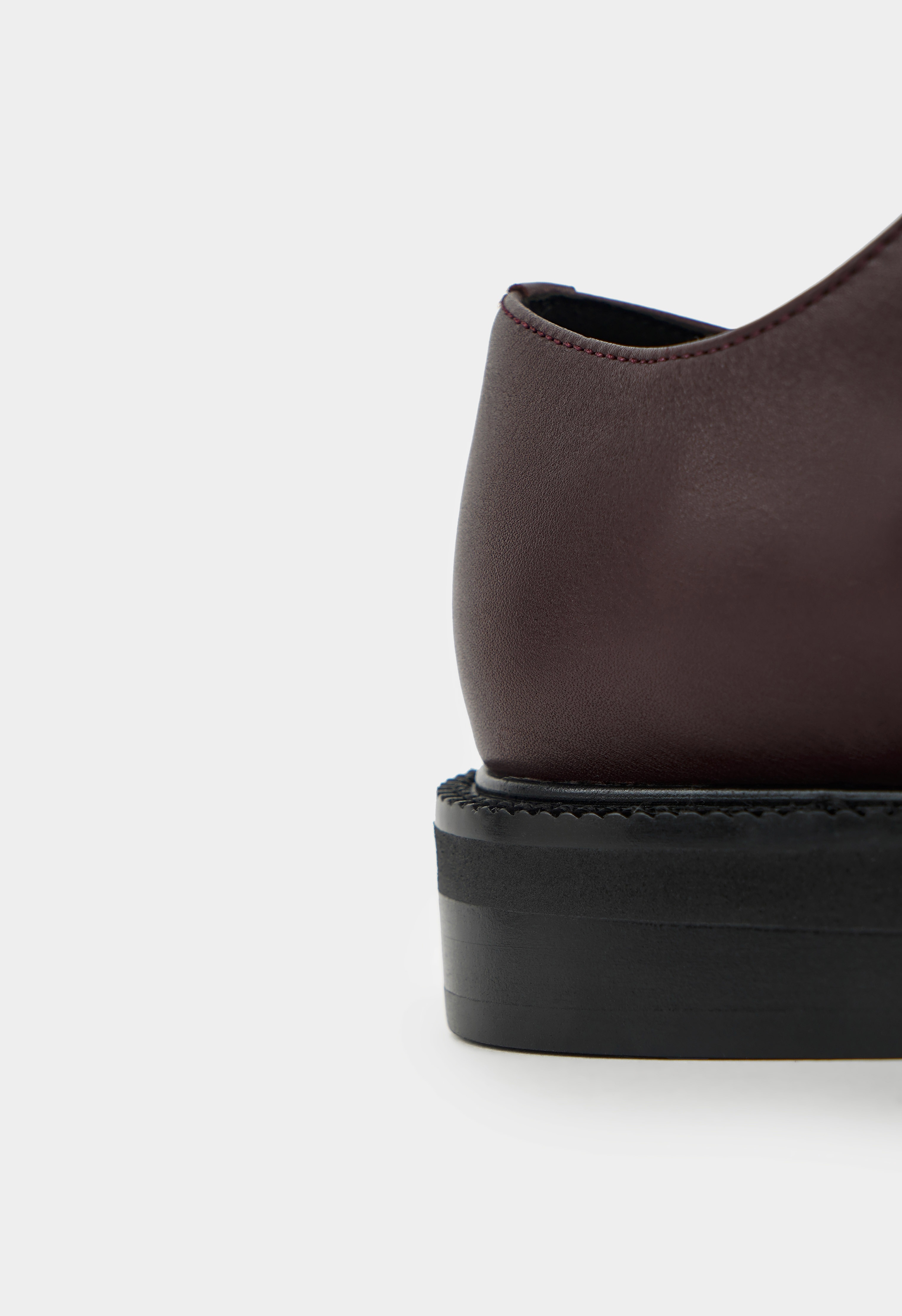 Полуботинки из натуральной кожи в привлекательном бордовом цвете – база, которая работает на вас. Мягкая, но износостойкая кожа, гибкая подошва и устойчивый широкий каблук делают эту пару идеальной для активных будней. Округлый мысок добавляет комфорта и визуального баланса, а лаконичный дизайн вписывается в любой гардероб – от строгого до расслабленного.