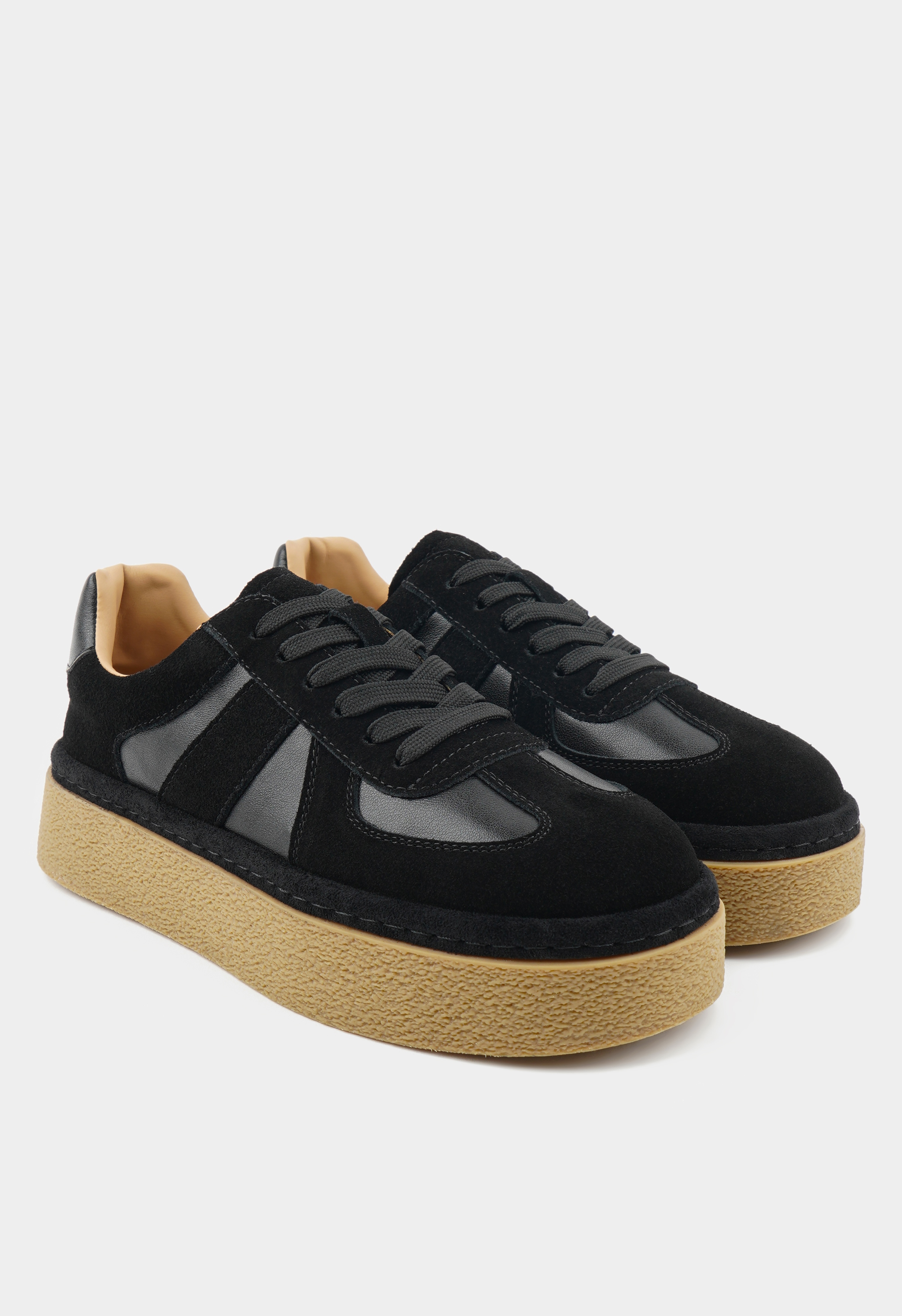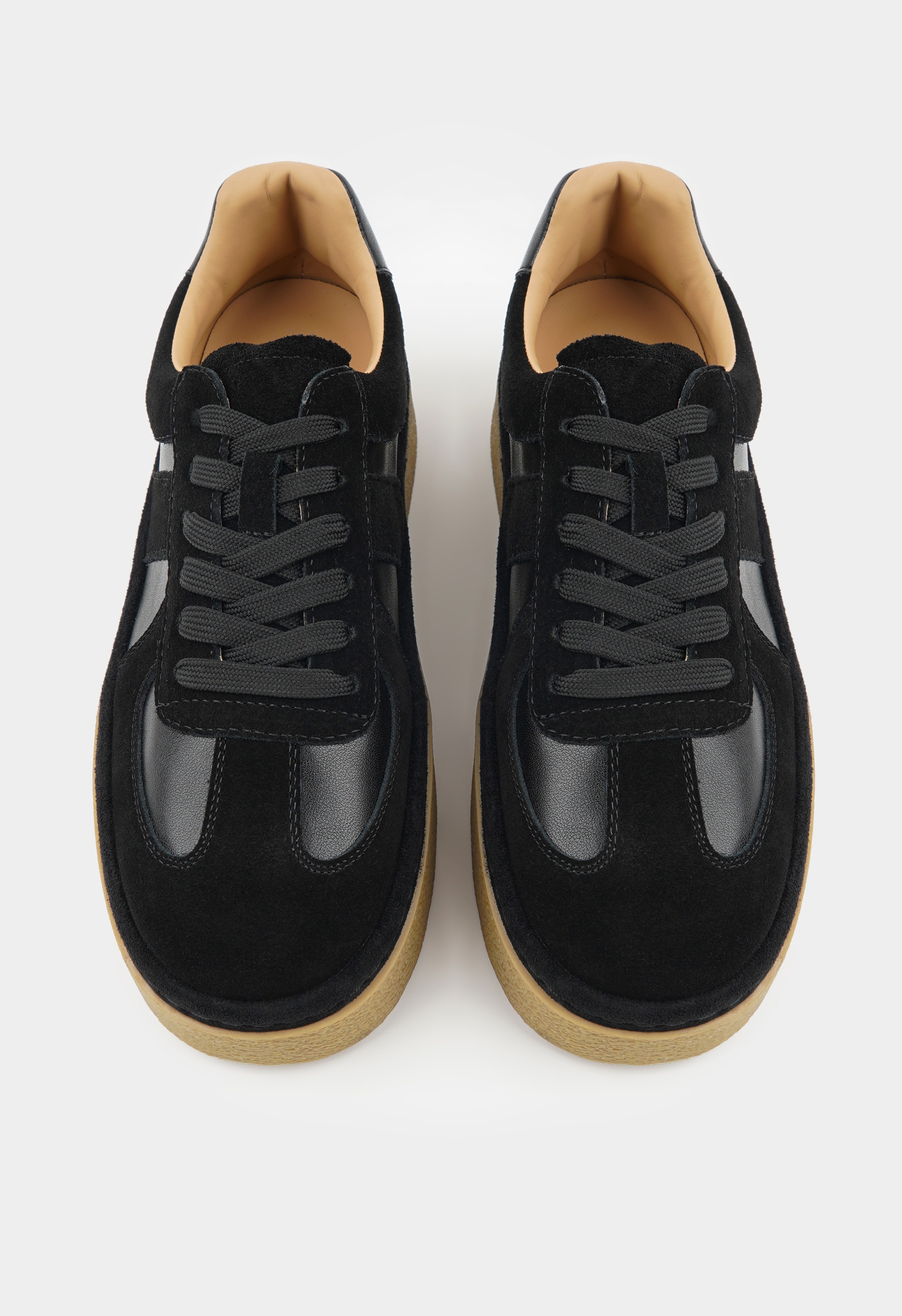 Кеды из натуральной замши в универсальном черном цвете – это стиль и уверенность в каждом шаге. Жесткая подошва с платформой дает отличную поддержку и устойчивость, а округлый мысок и шнуровка обеспечивают удобную посадку и комфорт на весь день. Матовая фактура замши добавляет образу глубины и элегантности, превращая спортивную классику в элемент современного городского стиля.