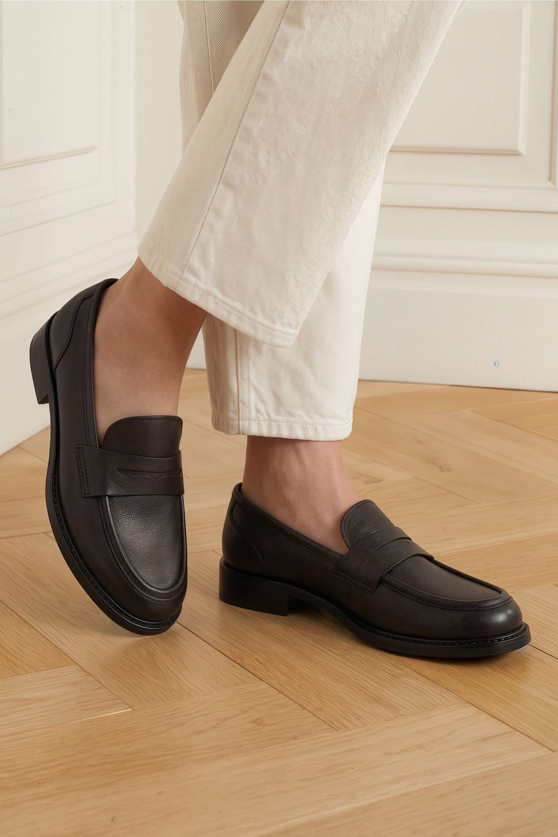 Коричневые лоферы из натуральной кожи – аккуратная классика, которая выручает, когда нужен собранный образ без лишних усилий. Гладкая кожа выглядит строго и опрятно, а округлый мысок обеспечивает комфортную посадку и мягкий силуэт. Невысокий каблук-кирпичик добавляет устойчивую высоту и делает пару удобной для активного дня. Гибкая подошва легко сгибается при шаге и поддерживает комфорт.