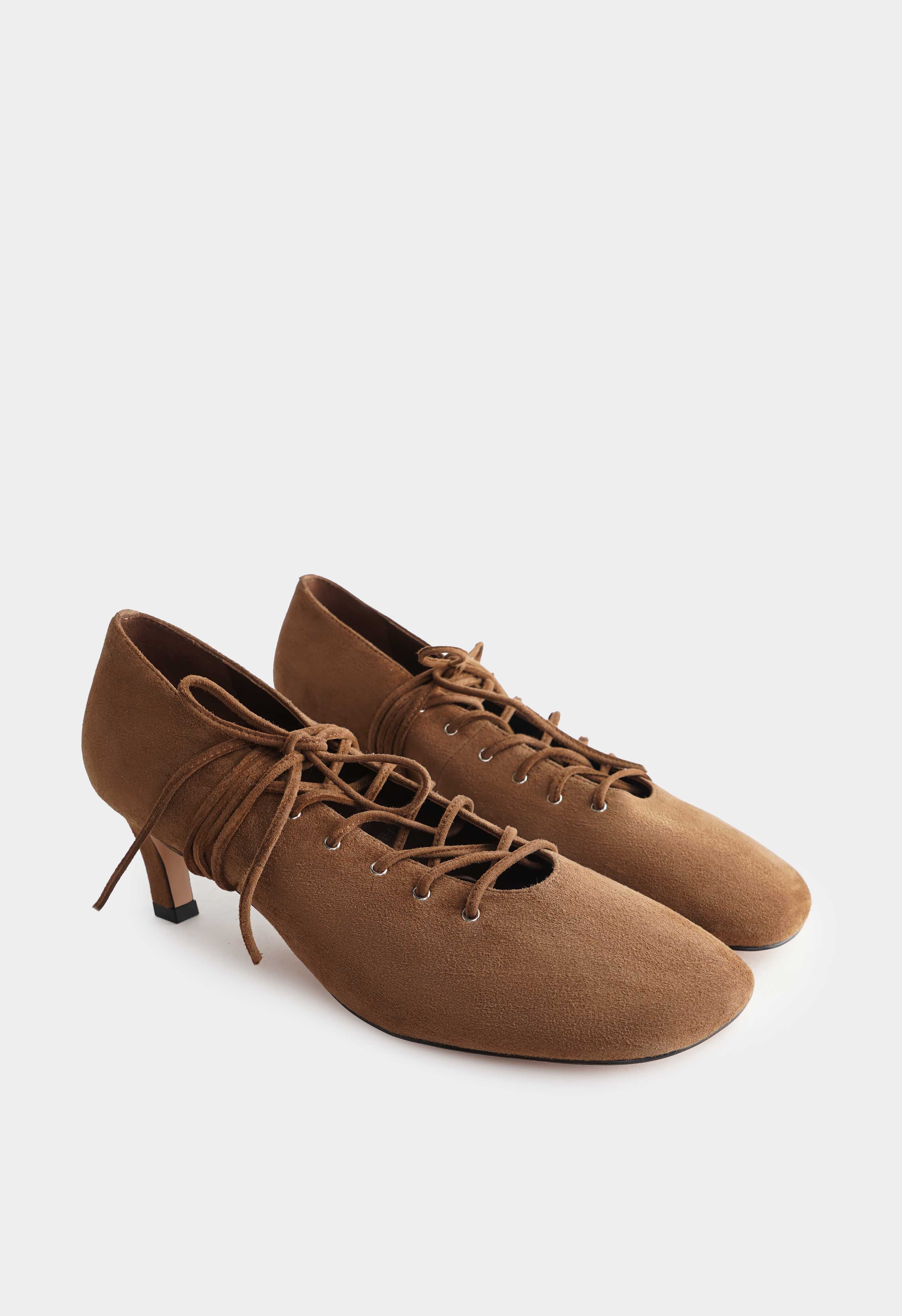 Эти изысканные туфли из натуральной замши в теплом коричневом оттенке сочетают утонченность и практичность для любого стильного образа. Квадратный мысок создает современный силуэт, каблук-рюмка дарит устойчивость, а шнуровка с серебряной фурнитурой добавляет элегантный акцент и надежную посадку. Гибкая подошва обеспечивает комфортную амортизацию и свободу движений на весь день.