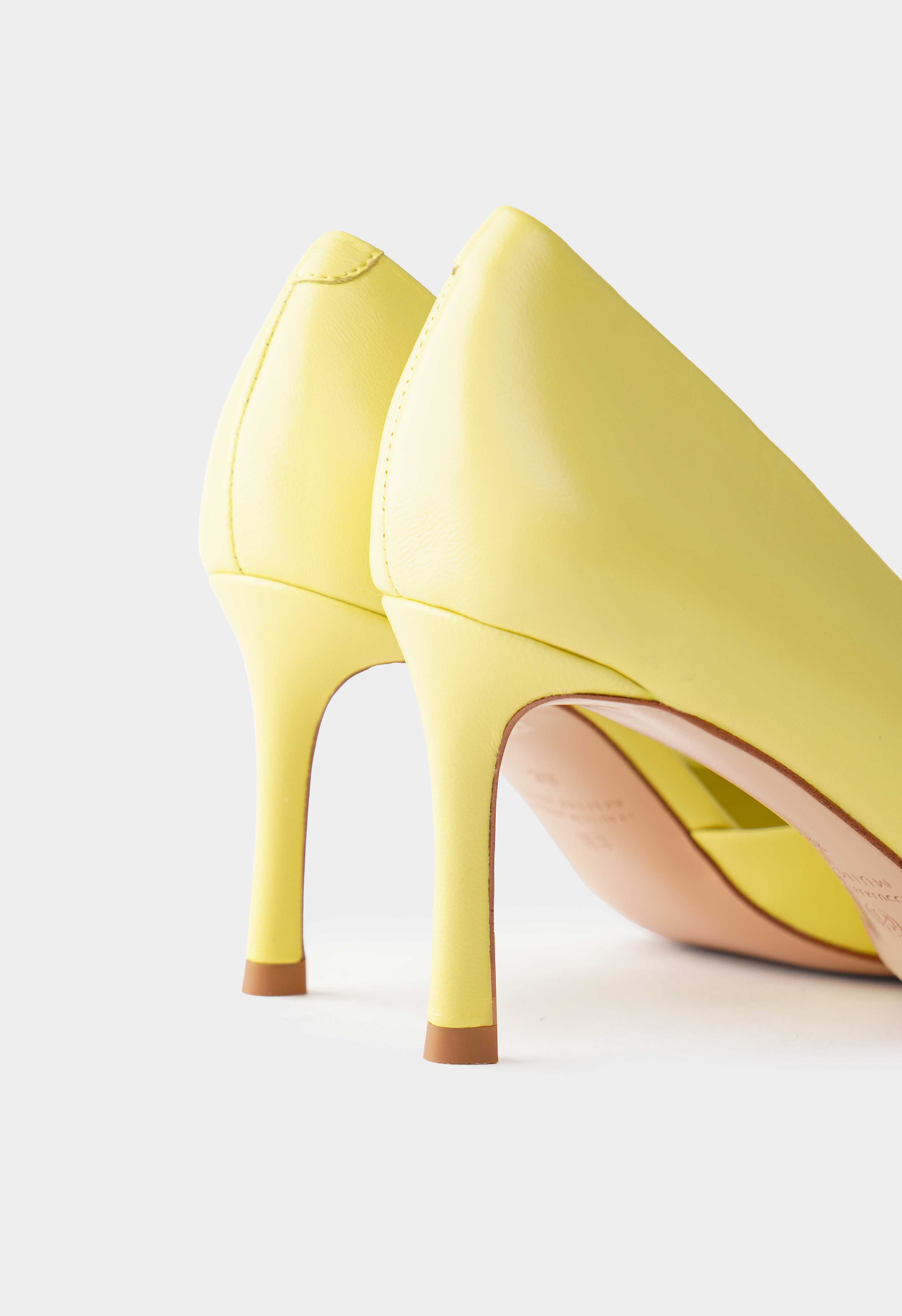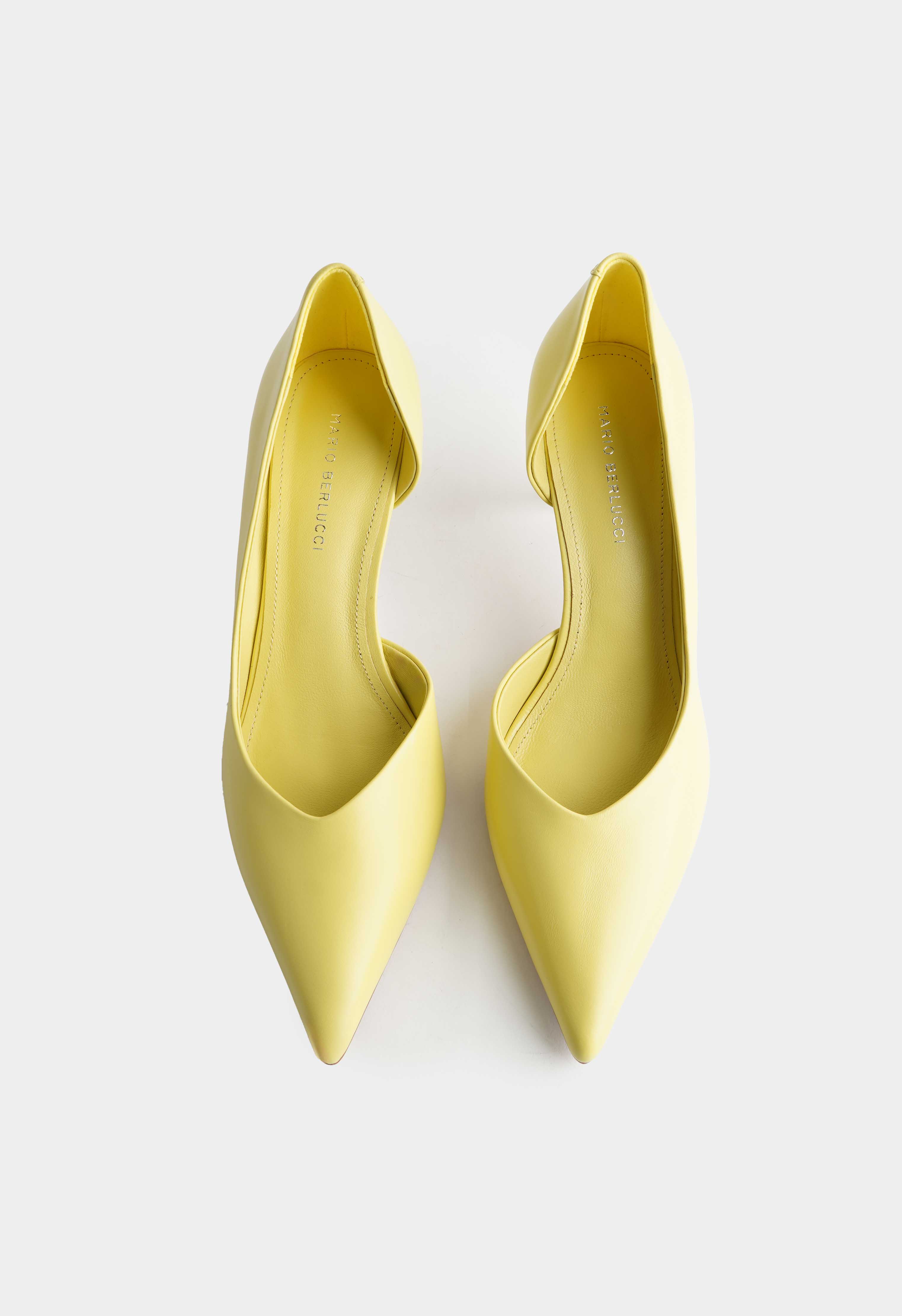 Солнечные желтые туфли из натуральной кожи – яркий штрих, который мгновенно освежает образ и добавляет ему настроения. Заостренный мысок делает силуэт более изящным и визуально вытягивает ногу, а клиновидный каблук обеспечивает выразительную высоту и уверенную посадку. Гладкая кожа смотрится аккуратно и дорого, отлично сочетается с белым, денимом, бежевым и черным. Гибкая подошва поддерживает комфортный шаг, поэтому туфли подходят и для рабочего дня, и для вечерних планов.