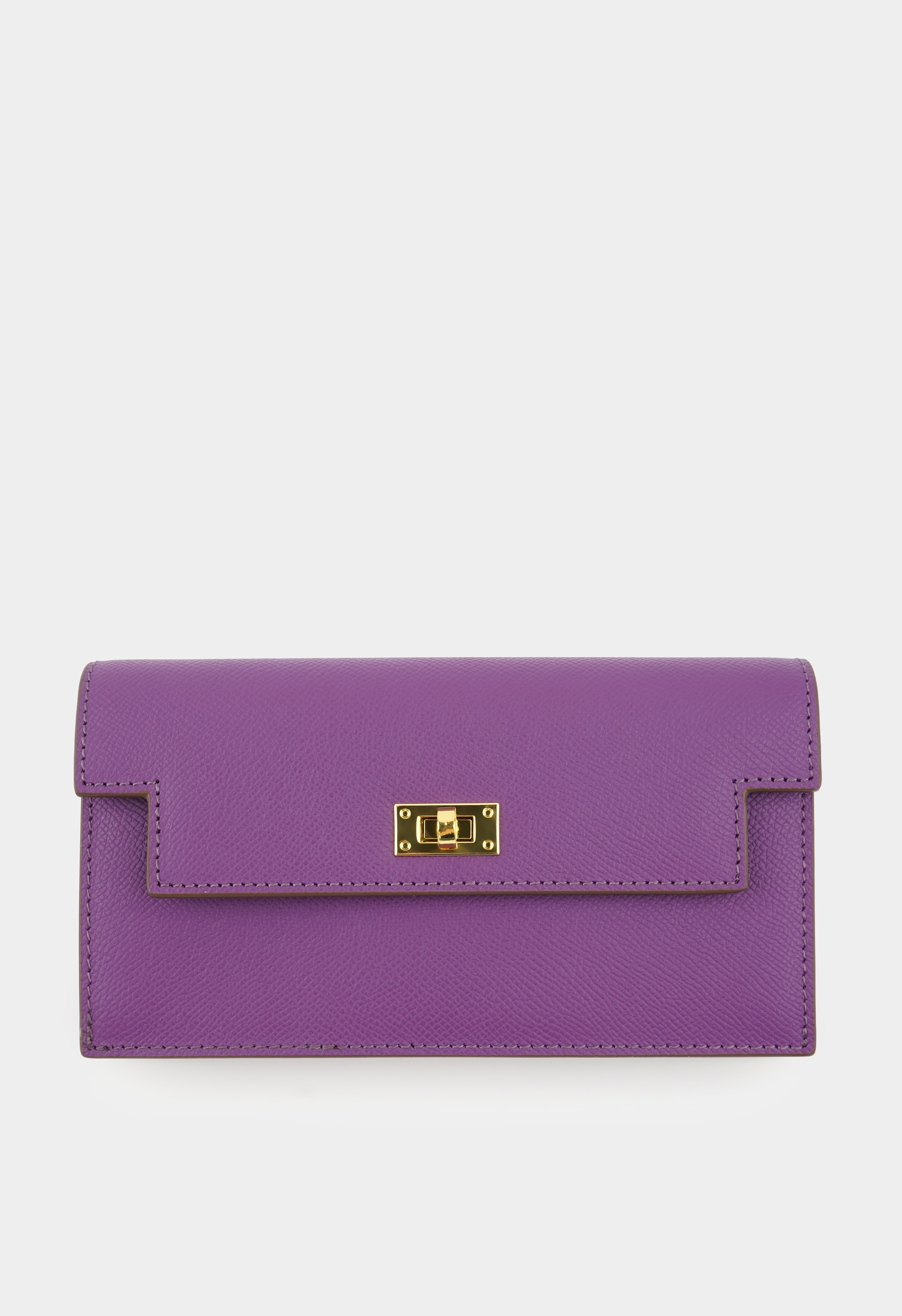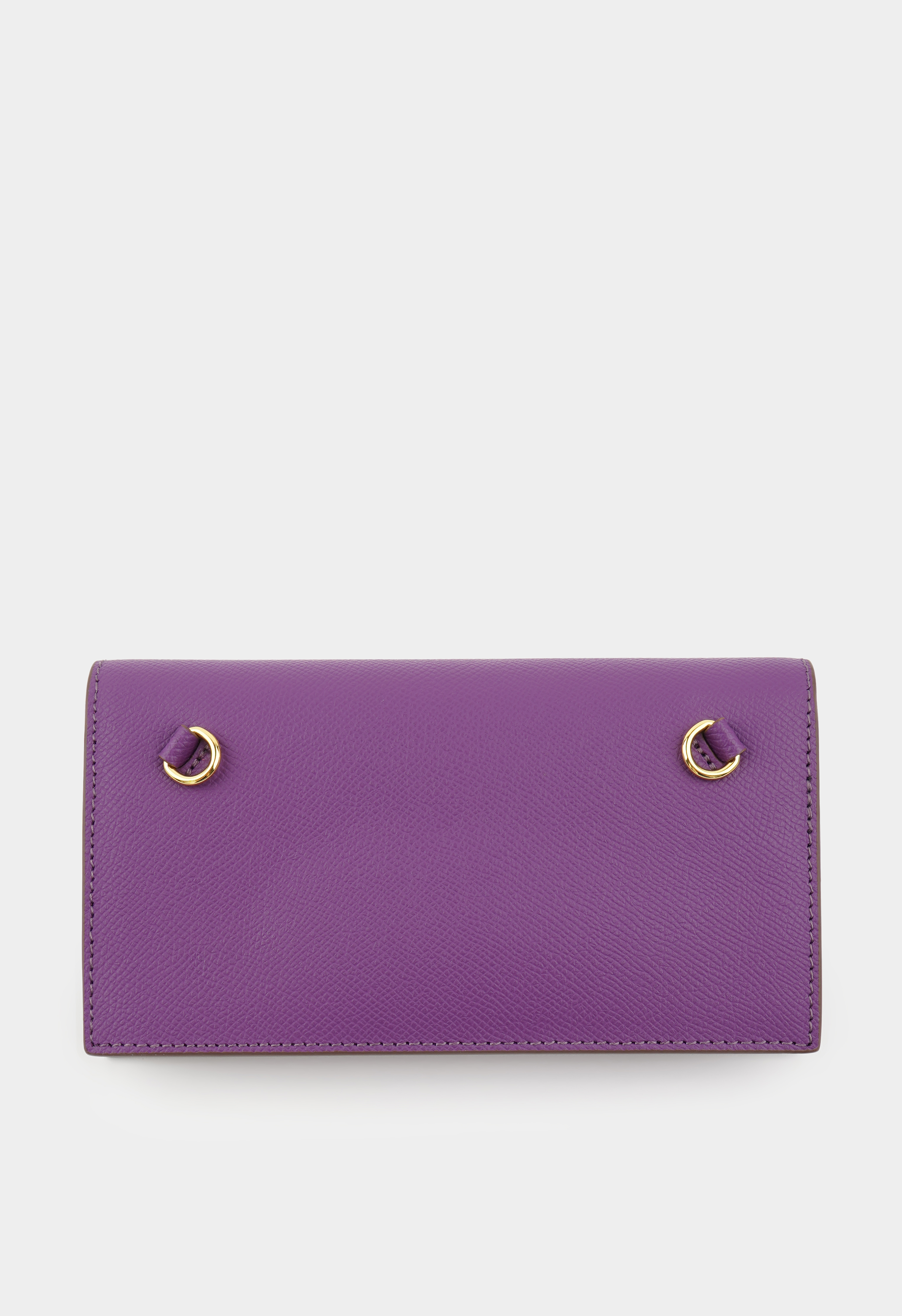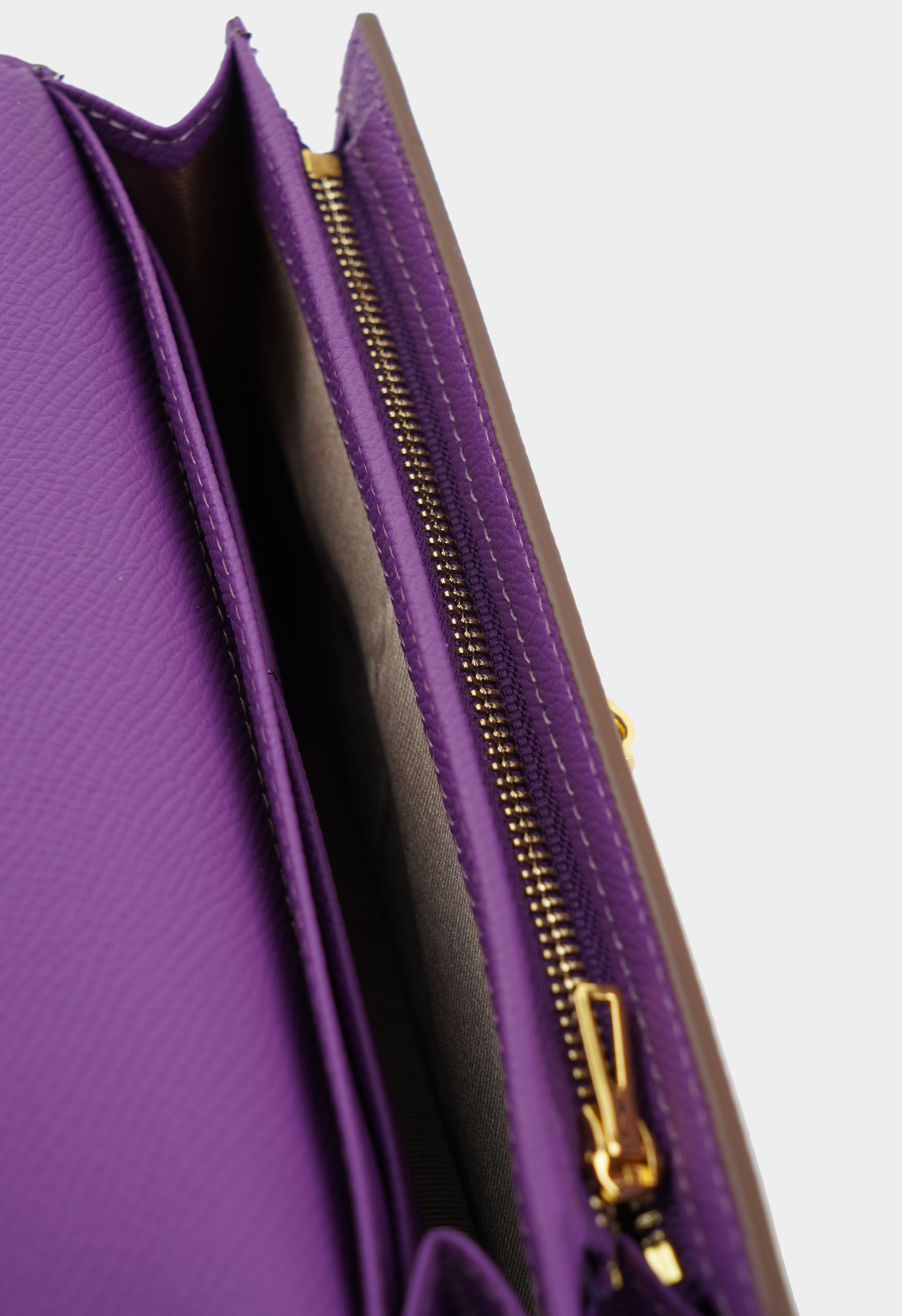 Фиолетовая сумка 2в1 – клатч и кошелек из натуральной кожи – станет вашим универсальным аксессуаром на каждый день и для особых случаев. Компактный размер удобно вмещает все необходимое, внутри предусмотрены два кармана и шесть отделений для визиток. Элегантный цвет, стильная пряжка и золотая фурнитура создают современный образ, который легко сочетается с любым стилем. Плечевой ремень-цепочка и съемная ручка-ремешок с карабином позволяют носить сумку так, как удобно именно вам, превращая ее в идеальное решение для активной и стильной жизни.