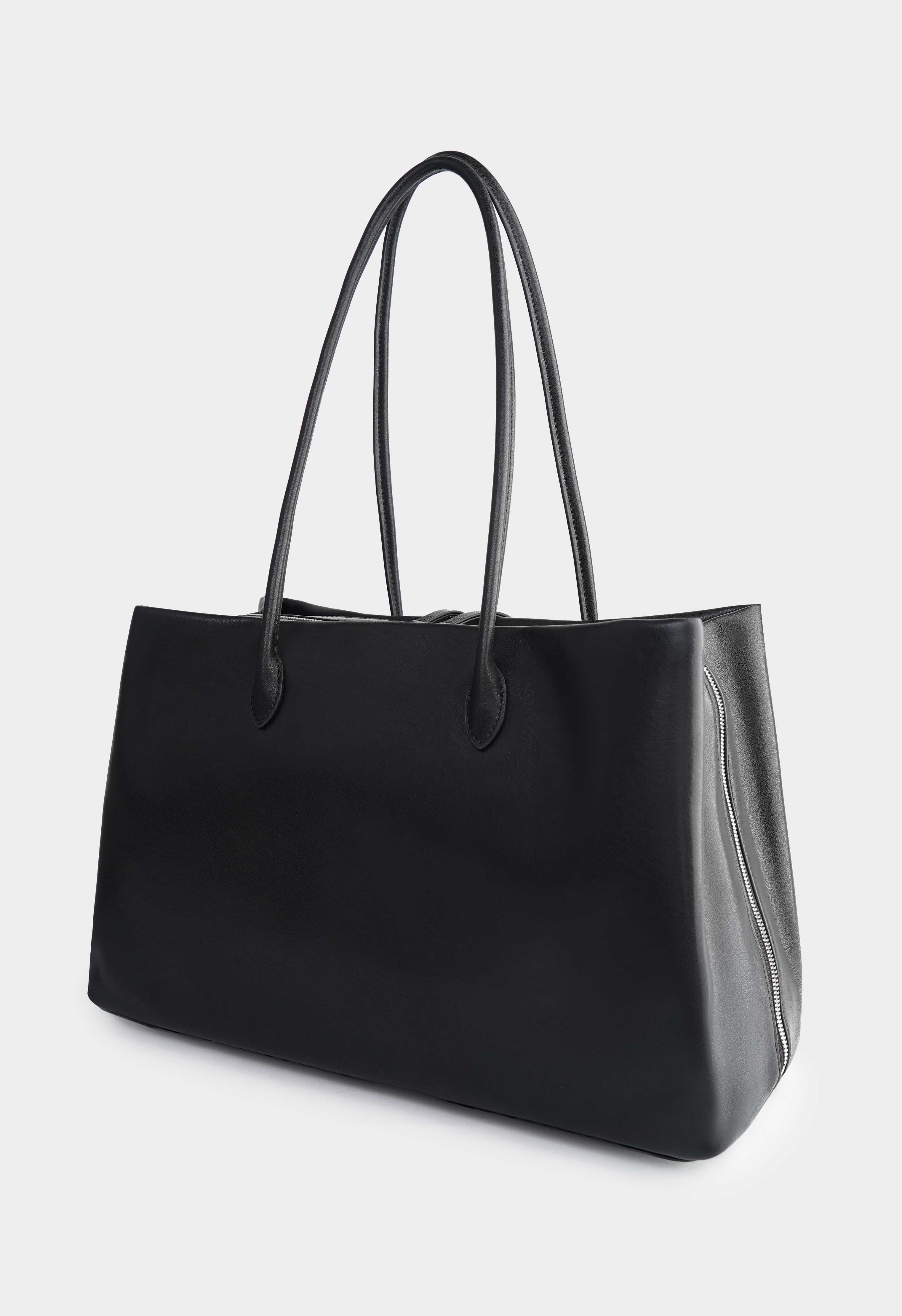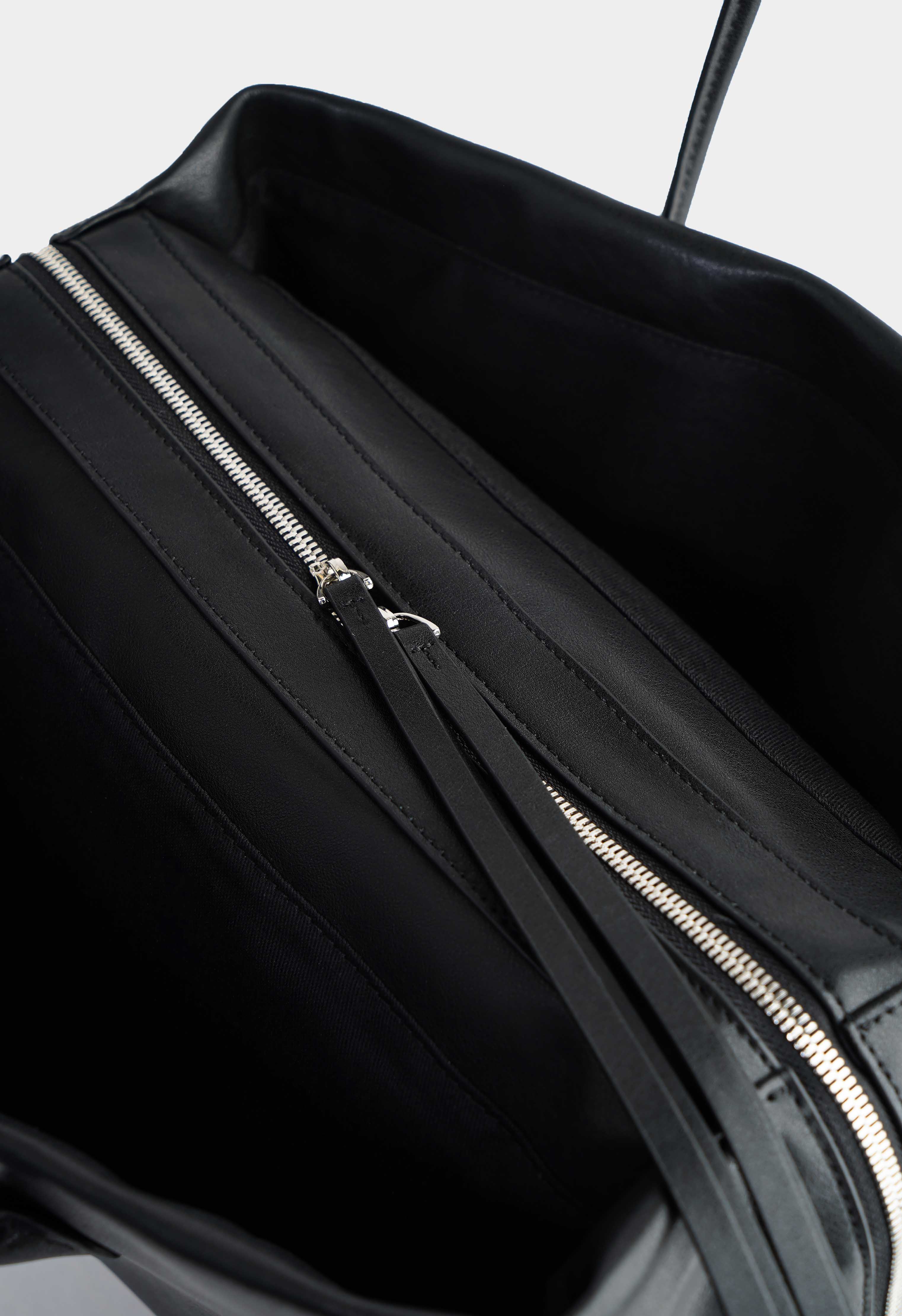 Черная сумка из натуральной кожи – удобная модель на каждый день с продуманной организацией: два внешних кармана помогут держать под рукой телефон и мелочи, а внутри еще два кармана – для аккуратного порядка. Серебряная фурнитура добавляет современный акцент, в то время как надежная система закрытия на молнию и магнит защищает содержимое и позволяет быстро открывать сумку, когда это нужно.