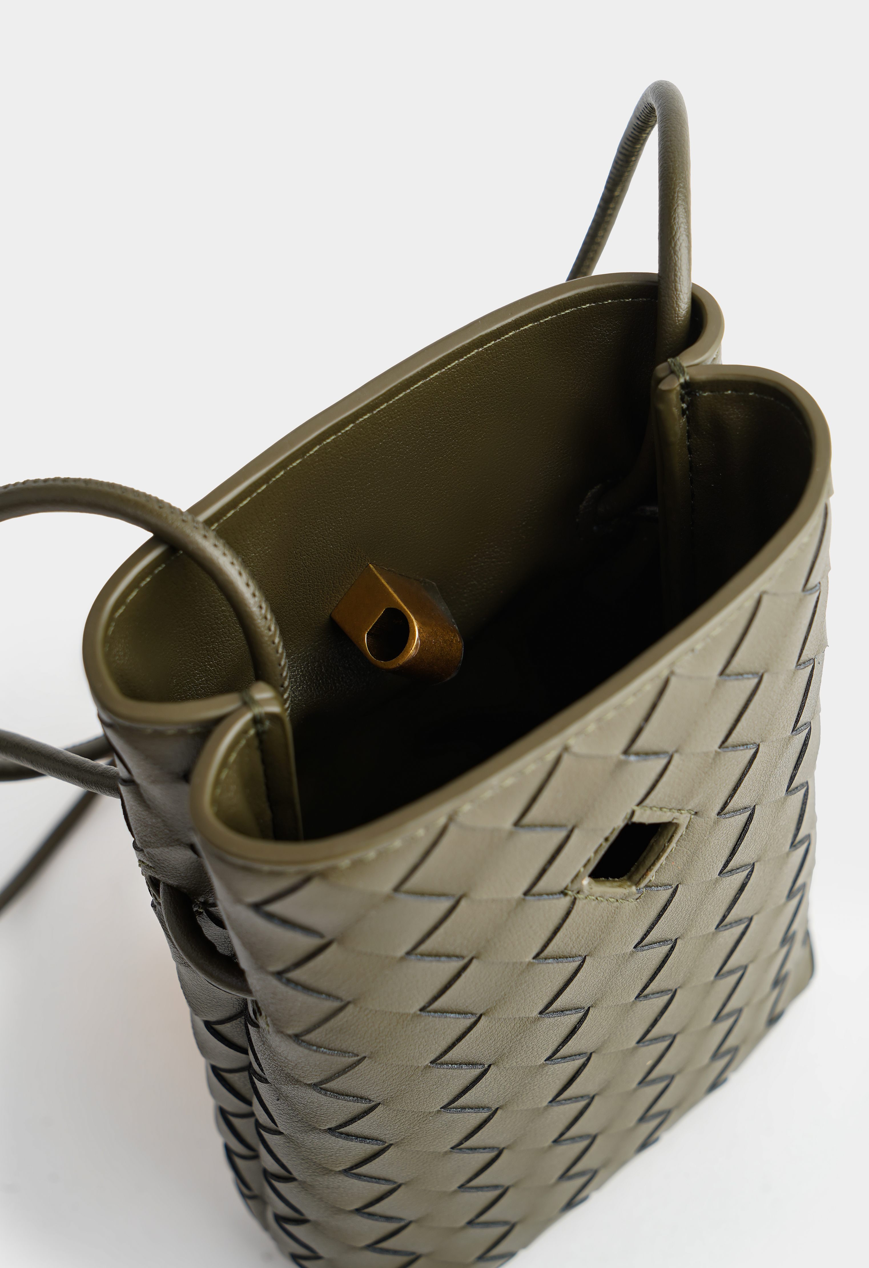 Сумка в цвете хаки из натуральной кожи с эффектной плетеной фактурой выглядит стильно и дорого, добавляя образу современный акцент. Компактный вытянутый силуэт смотрится аккуратно и идеально подходит для самых нужных вещей. Выразительная пряжка и золотая фурнитура создают яркий контраст и подчеркивают премиальный характер модели. Регулируемая ручка позволяет настроить посадку под удобную длину и носить сумку так, как хочется.